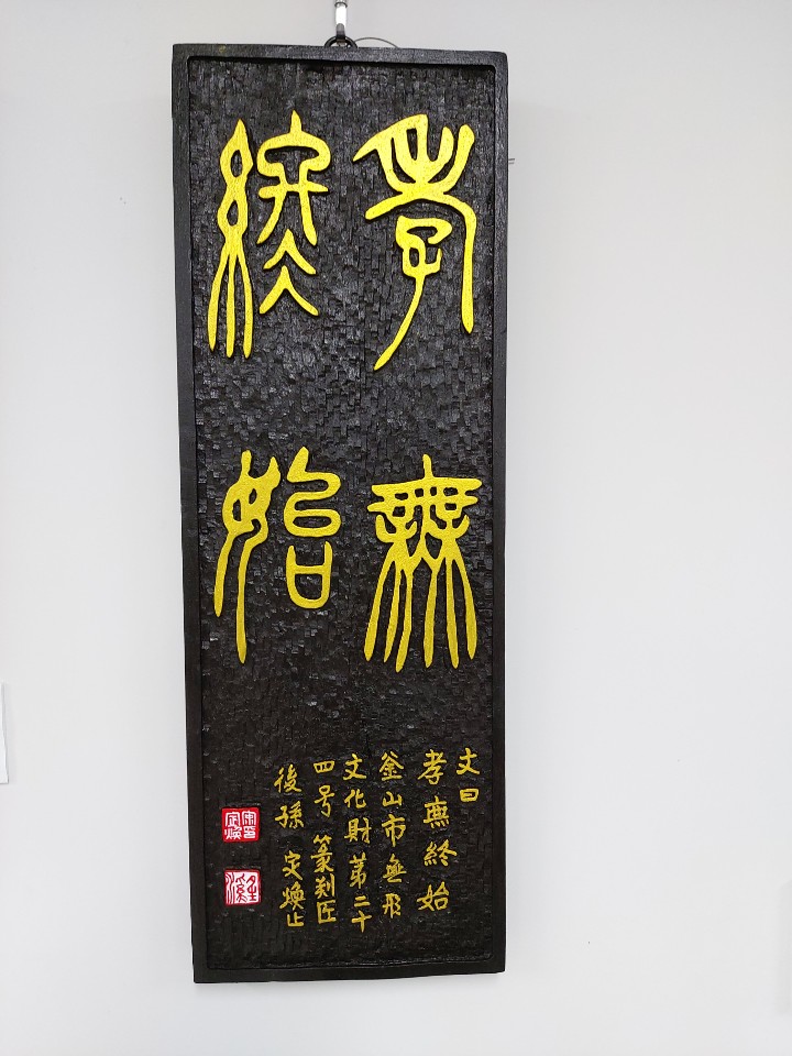 文曰 孝無終始 釜山市無形文化財 第二十四號 篆刻匠 後孫 定煥 作