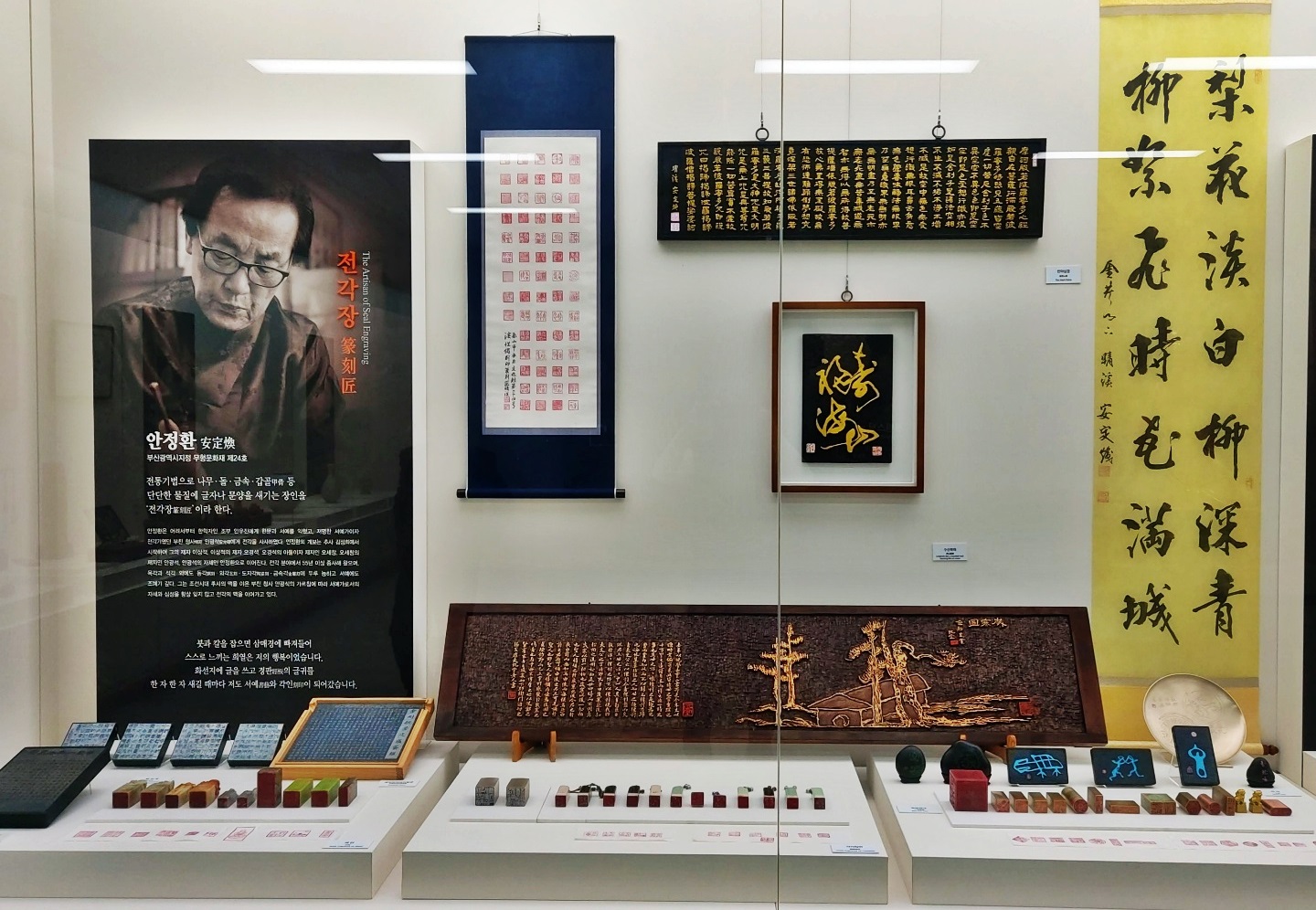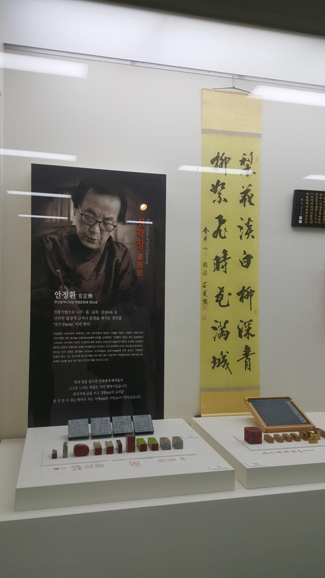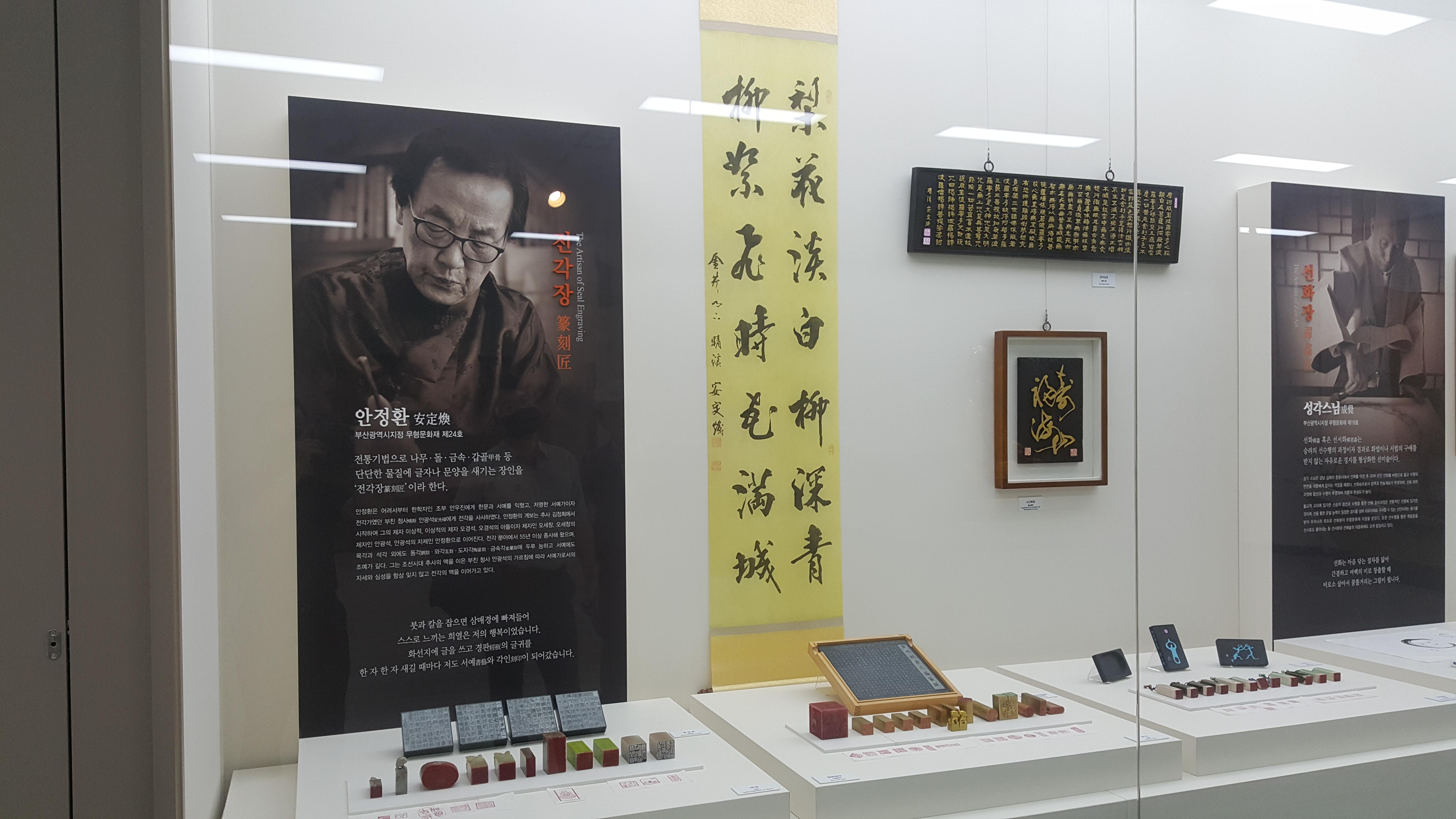 부산광역시 무형문화재 제24호이신 전각장(篆刻匠) 청계(晴溪) 안정환(安定煥) 선생의 작품을 비롯하여 무형문화재 작품들이 전시되고 있다.
