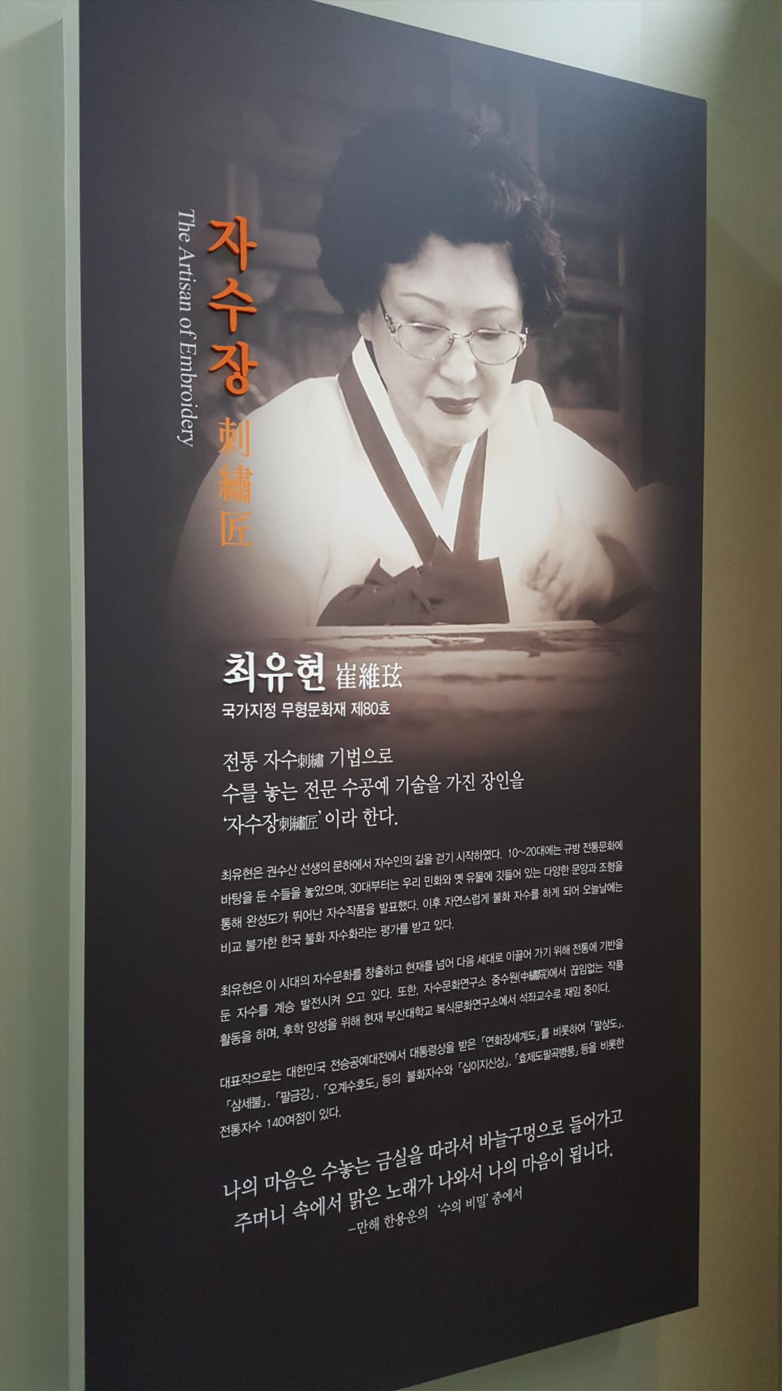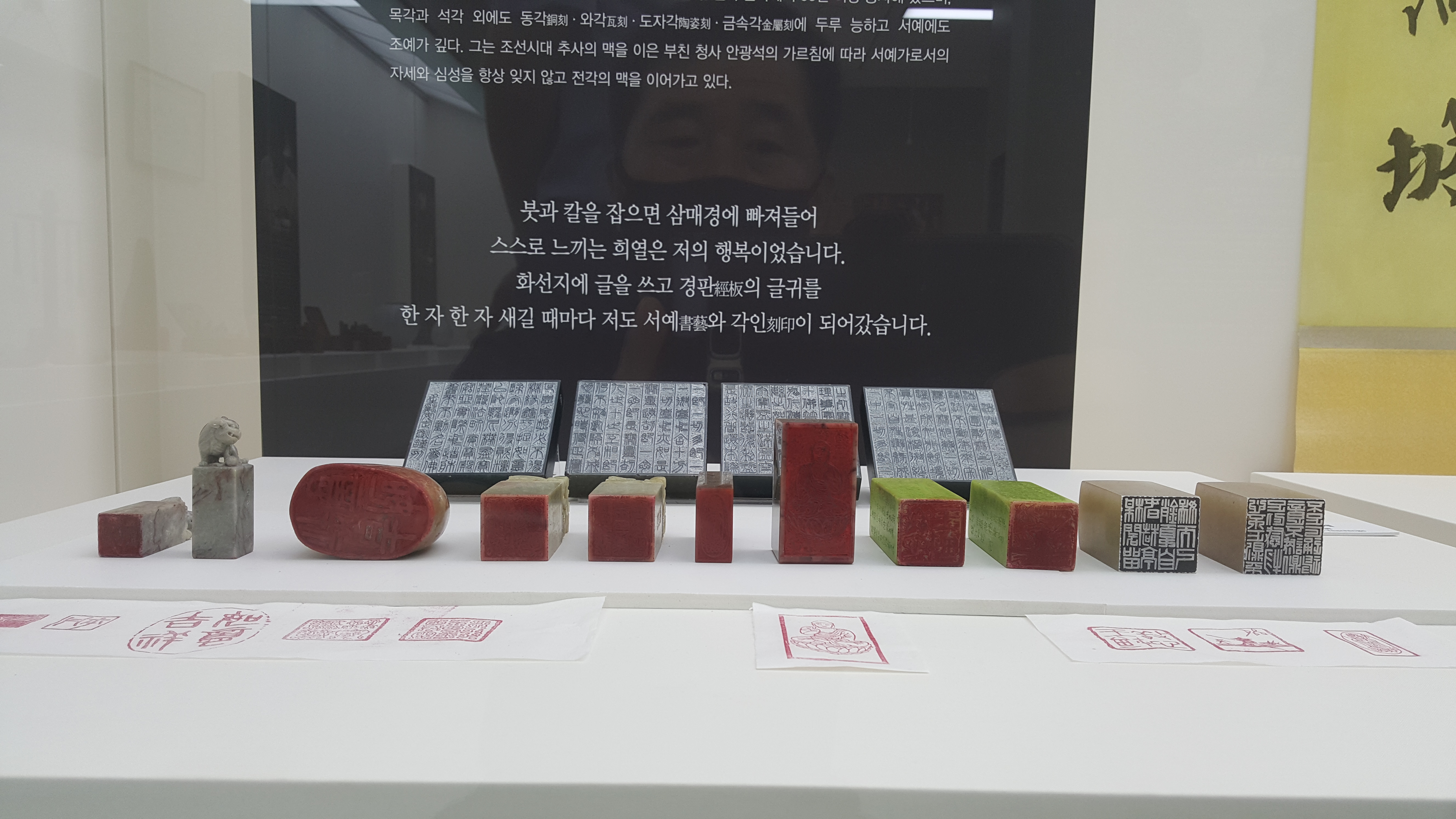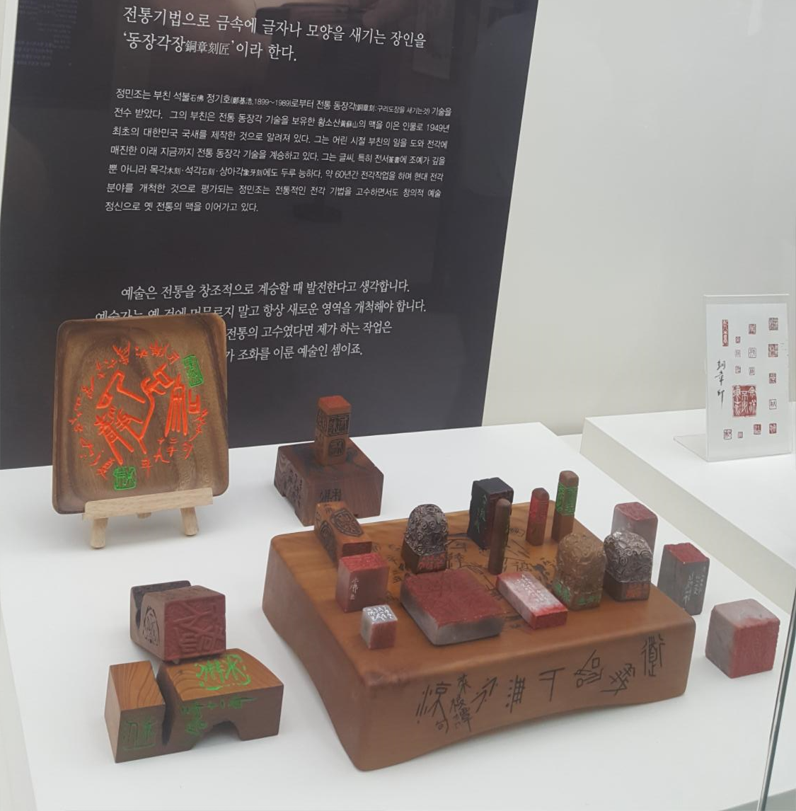 부산광역시 무형문화재 제24호이신 전각장(篆刻匠) 청계(晴溪) 안정환(安定煥) 선생의 작품을 비롯하여 무형문화재 작품들이 전시되고 있다.