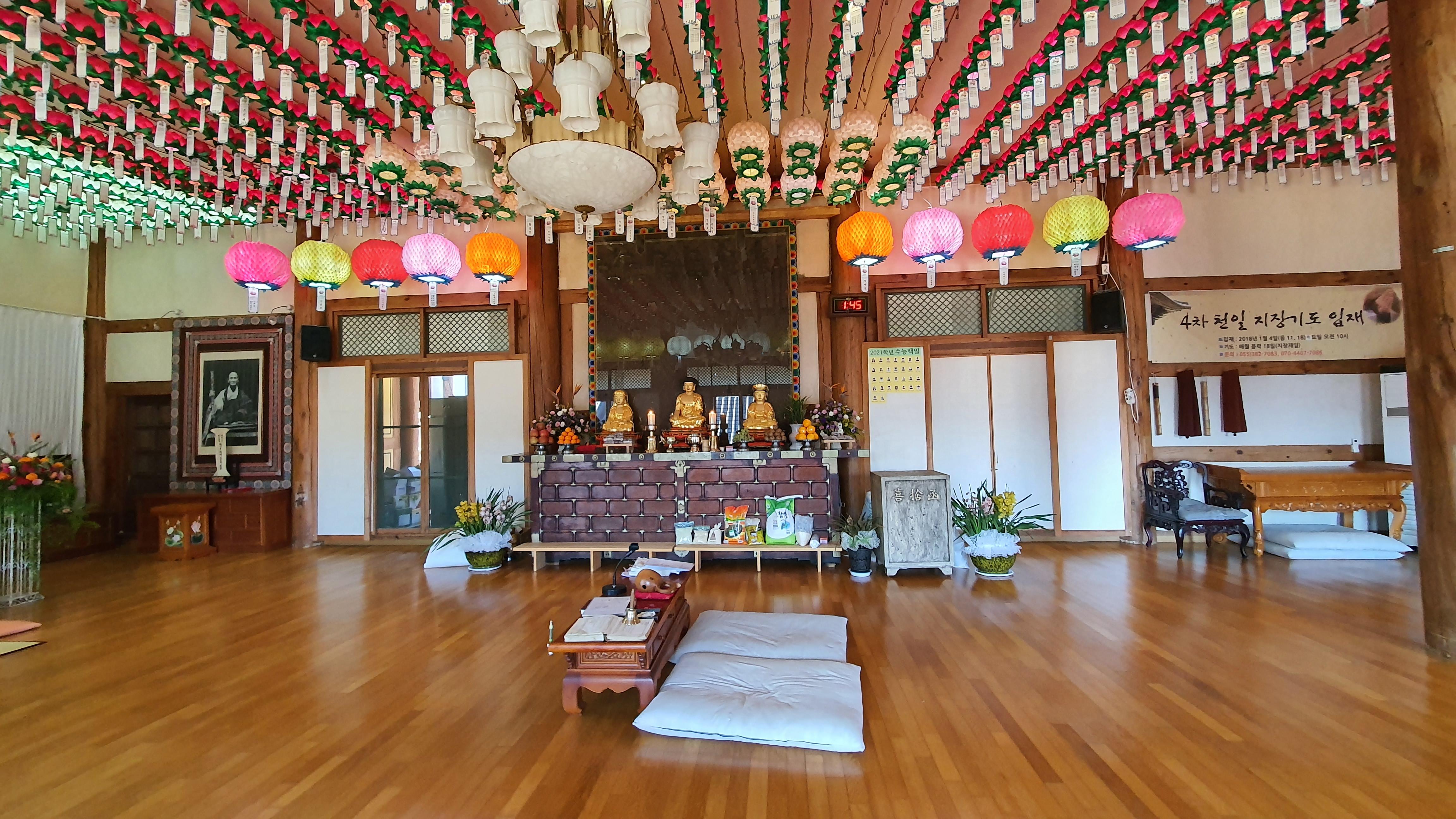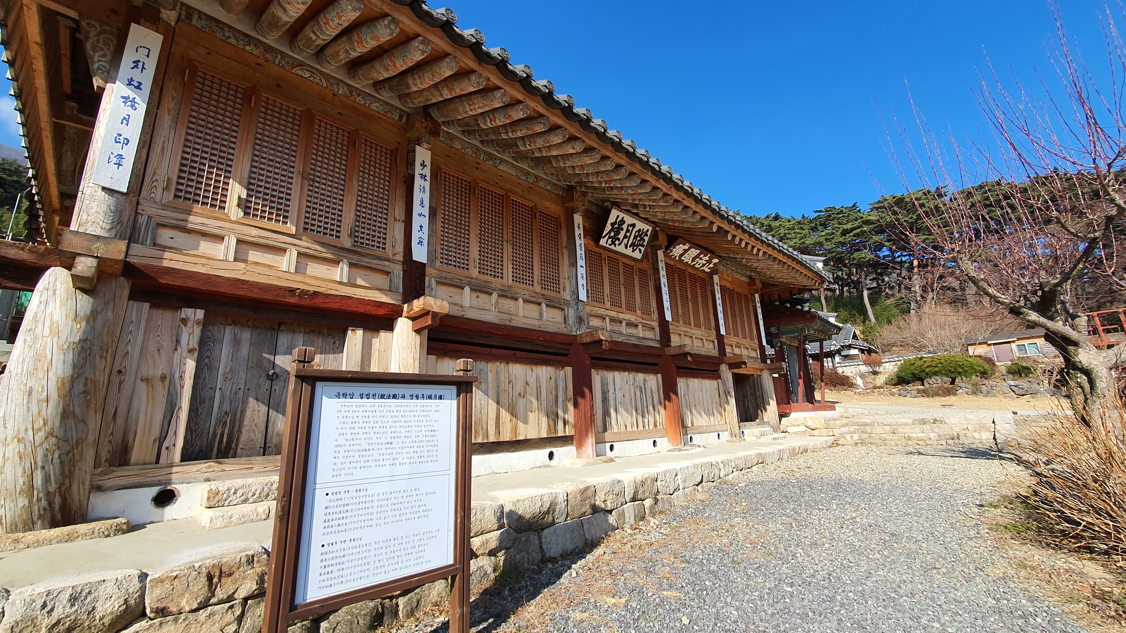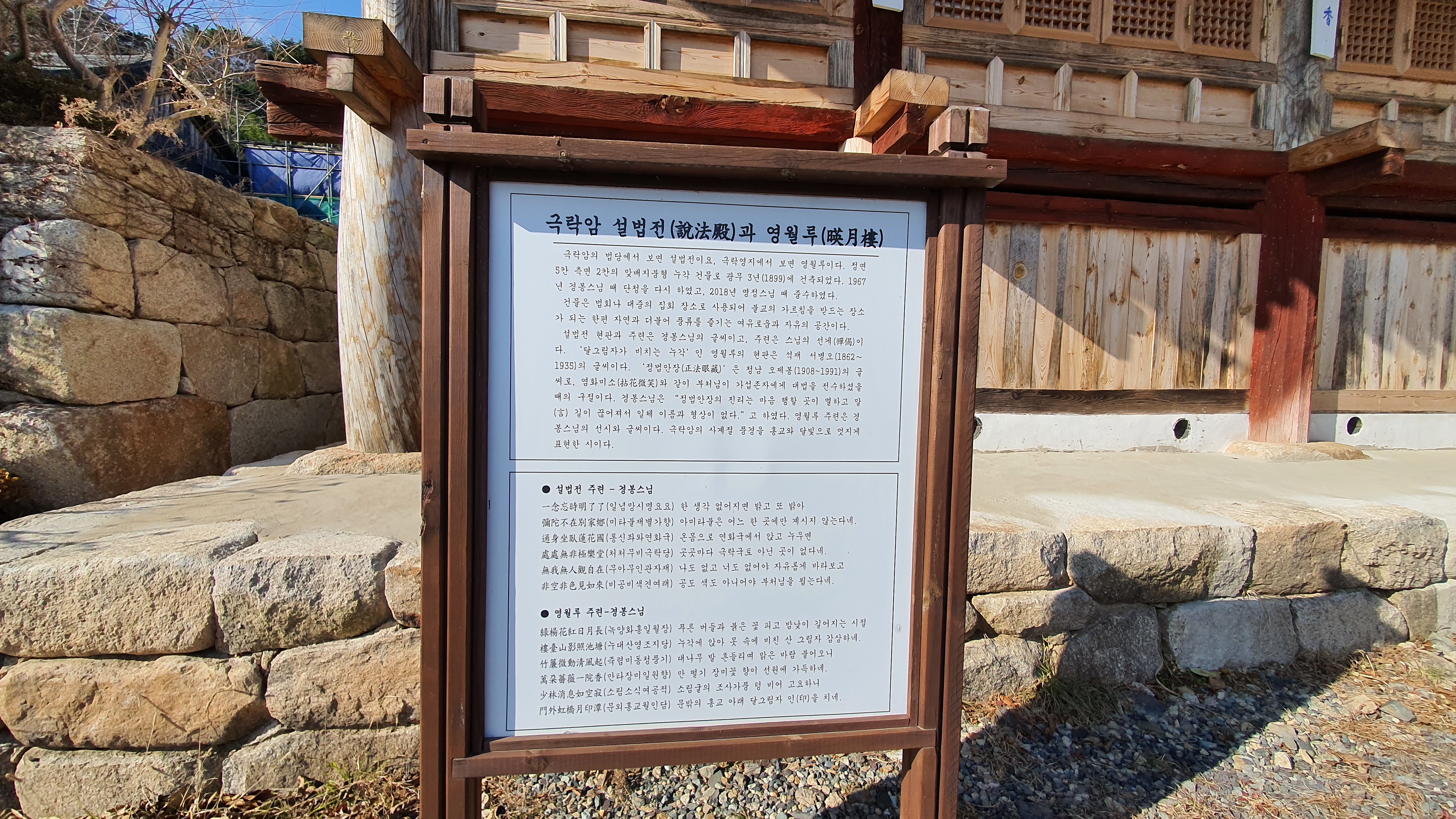 설법전 현판과 주련은 경봉스님 글씨