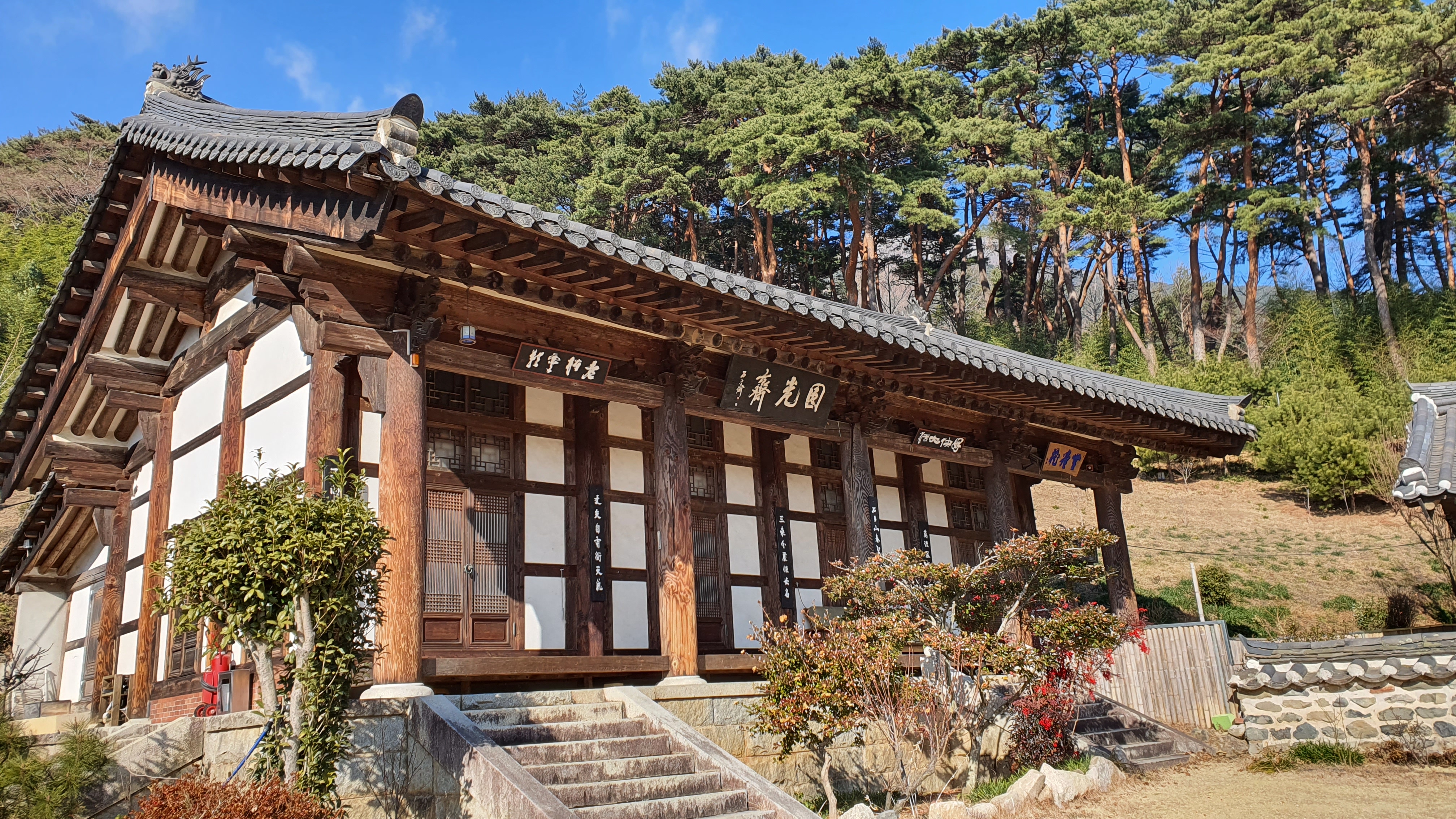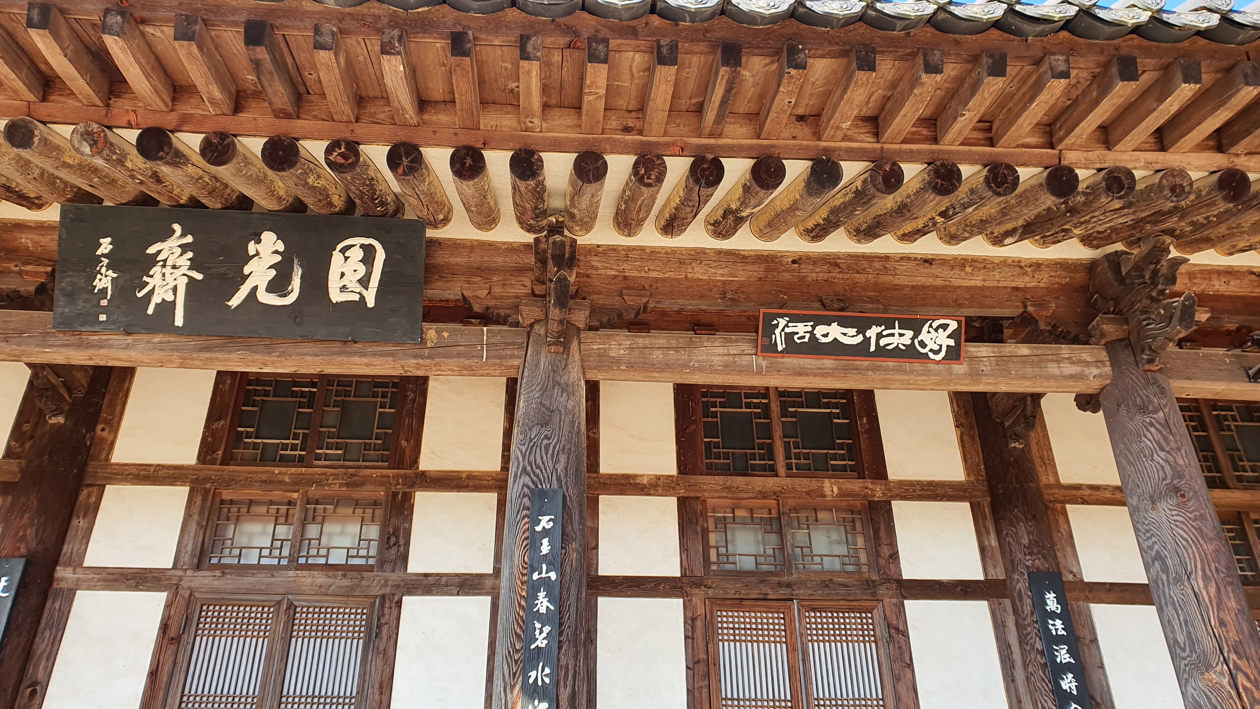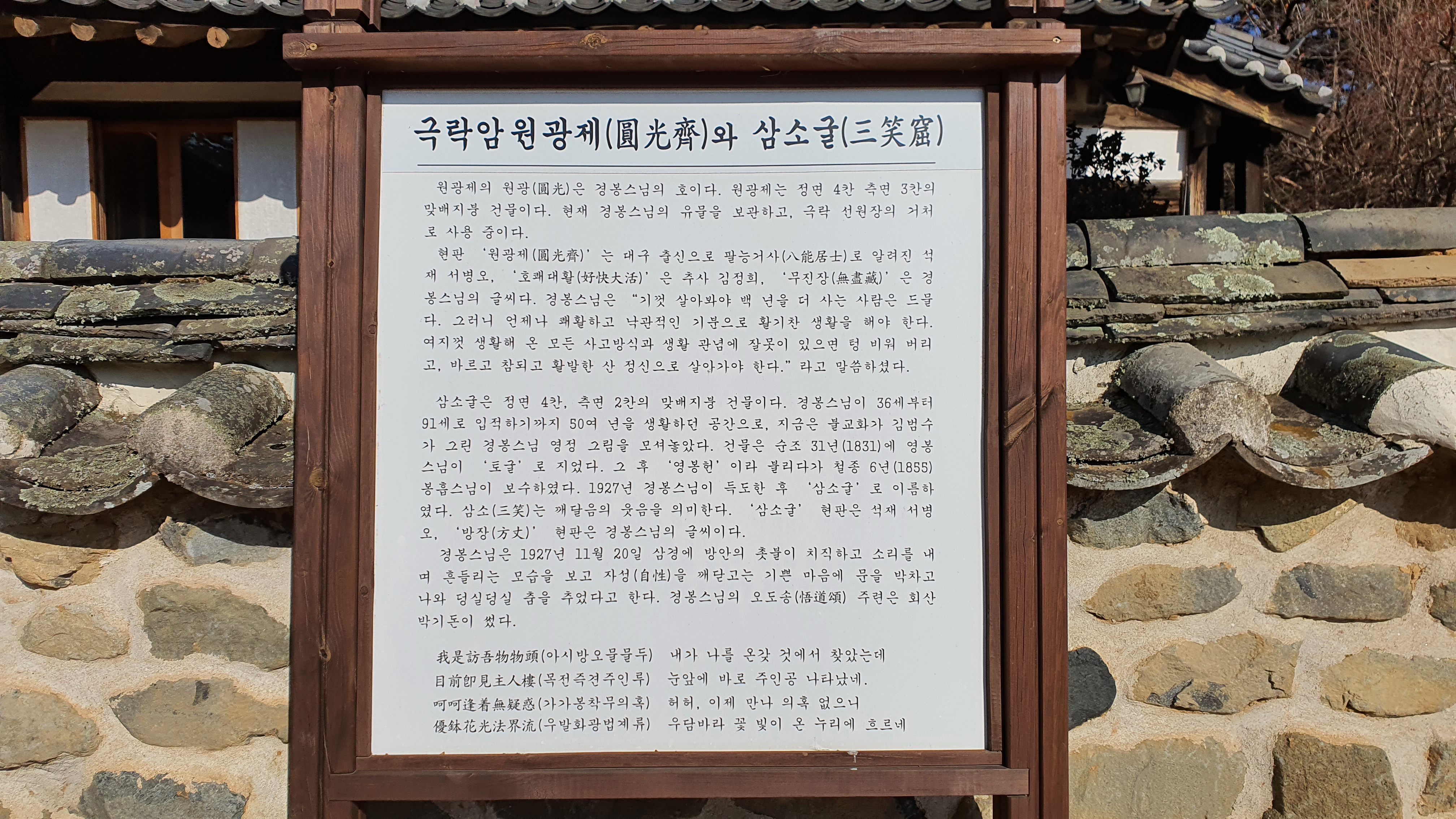 원광제 좌우에 걸려있는 "호쾌대활(好快大活)” “노송운영(老松雲影)”은 추사 김정희 글씨이다.