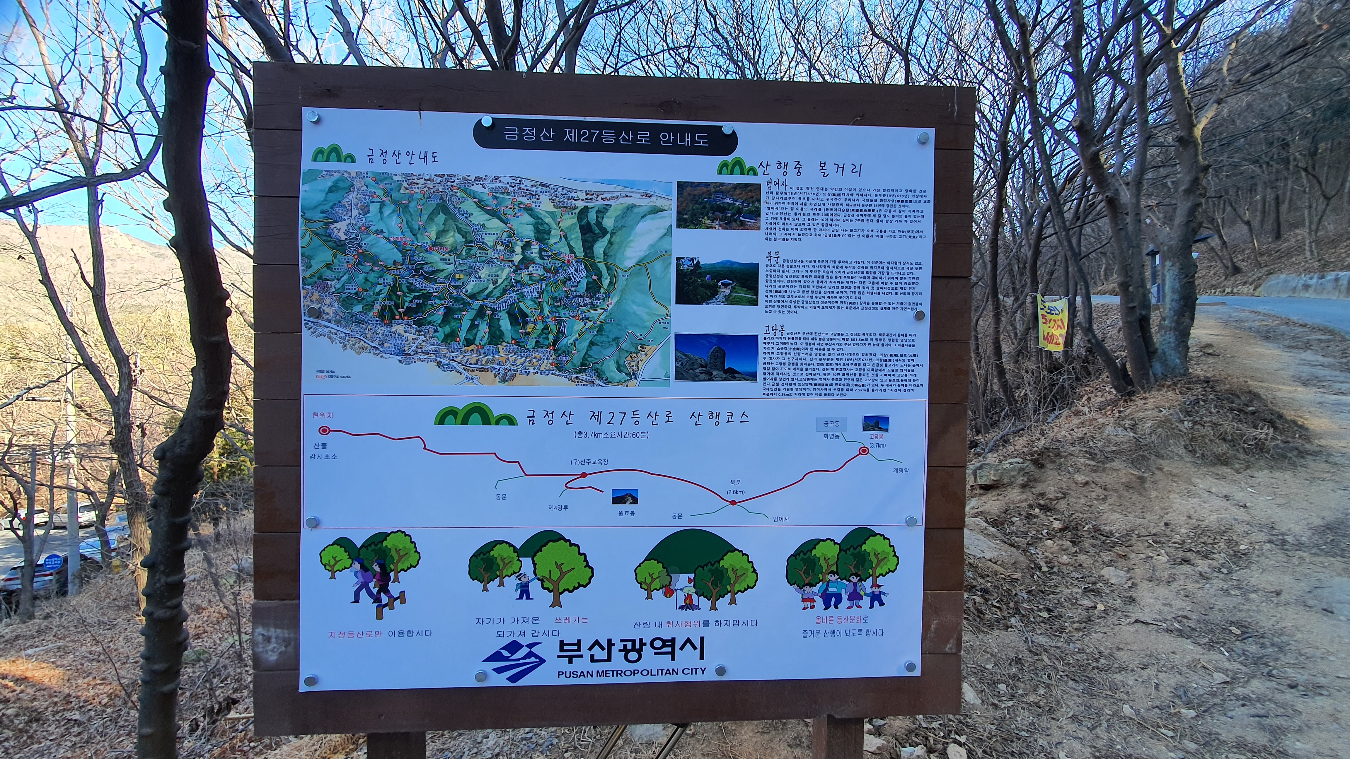 다른 코스는 금정산 범어사를 통과하여 북문을 거쳐 미륵사로 가는 길을 이용해도 된다.