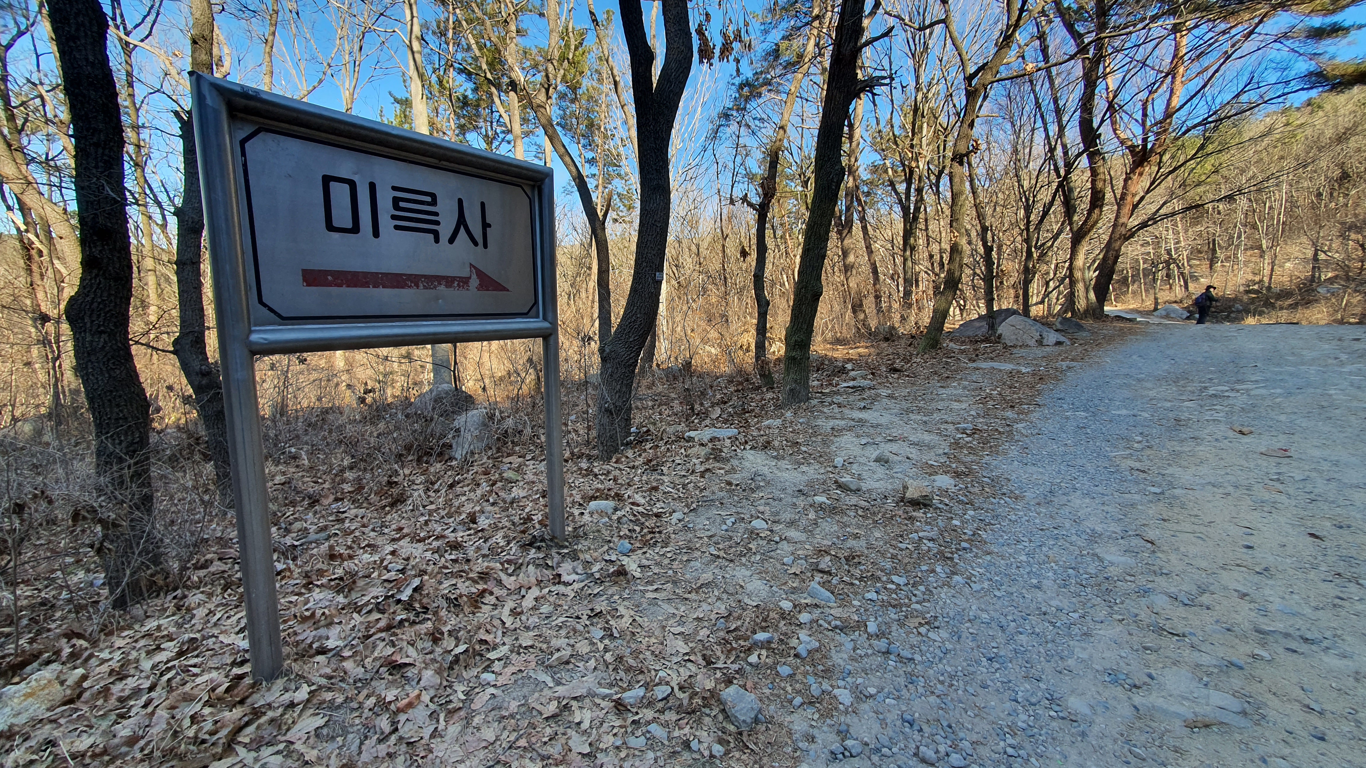 근처 도로가에 주차를 하고 산행을 시작하는 지점이다. 네비에 미륵사를 입력하면 이길로 안내를 한다.