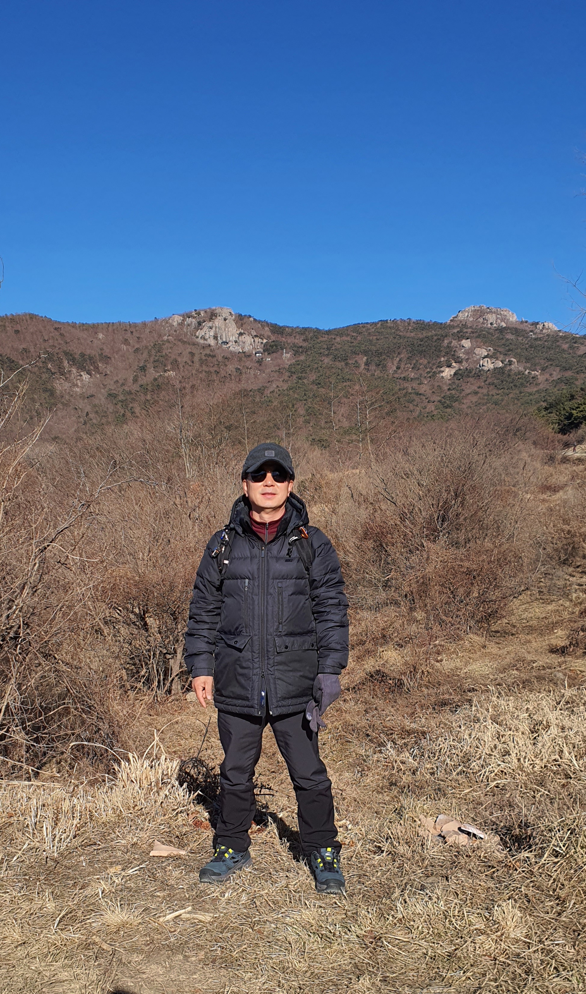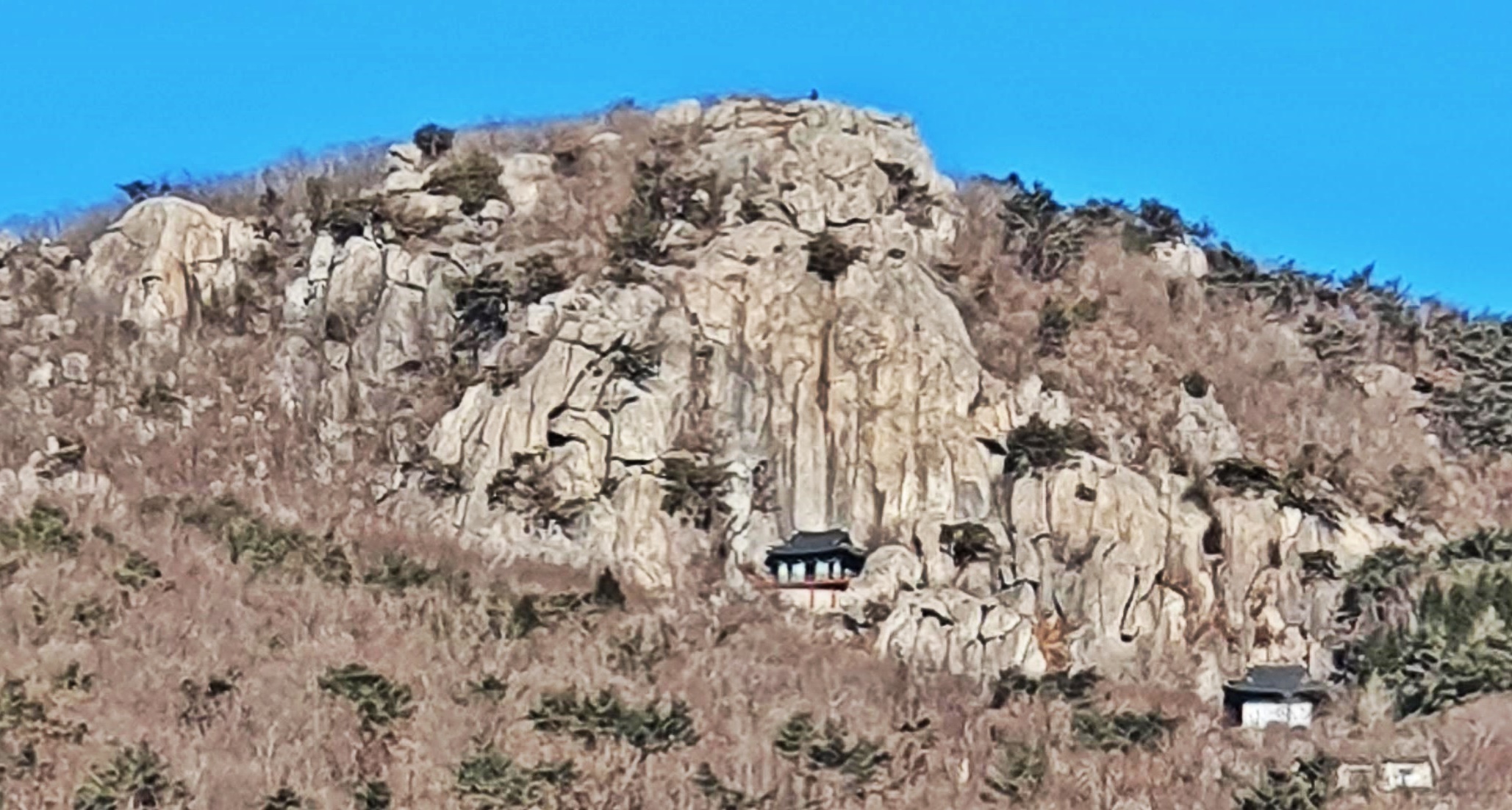 왼쪽바위는 미륵사 미륵바위이고 오른쪽은 고당봉이다.