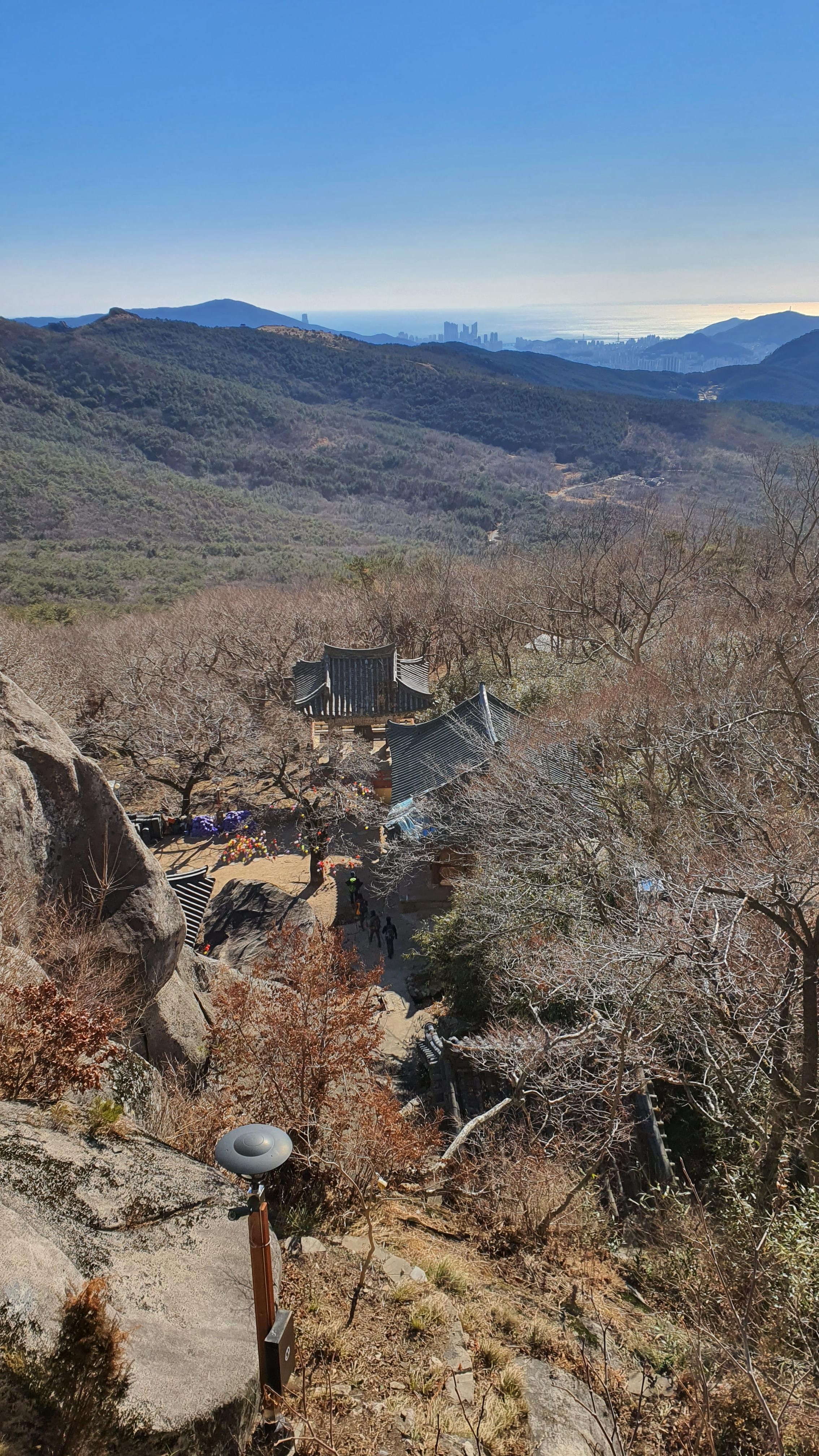 멋진 미륵봉을 병풍으로 삼고 남쪽을 굽어보는 이곳은 부산에서 제일 높은 곳에서 나오는 맑은 약수로도 유명하다.