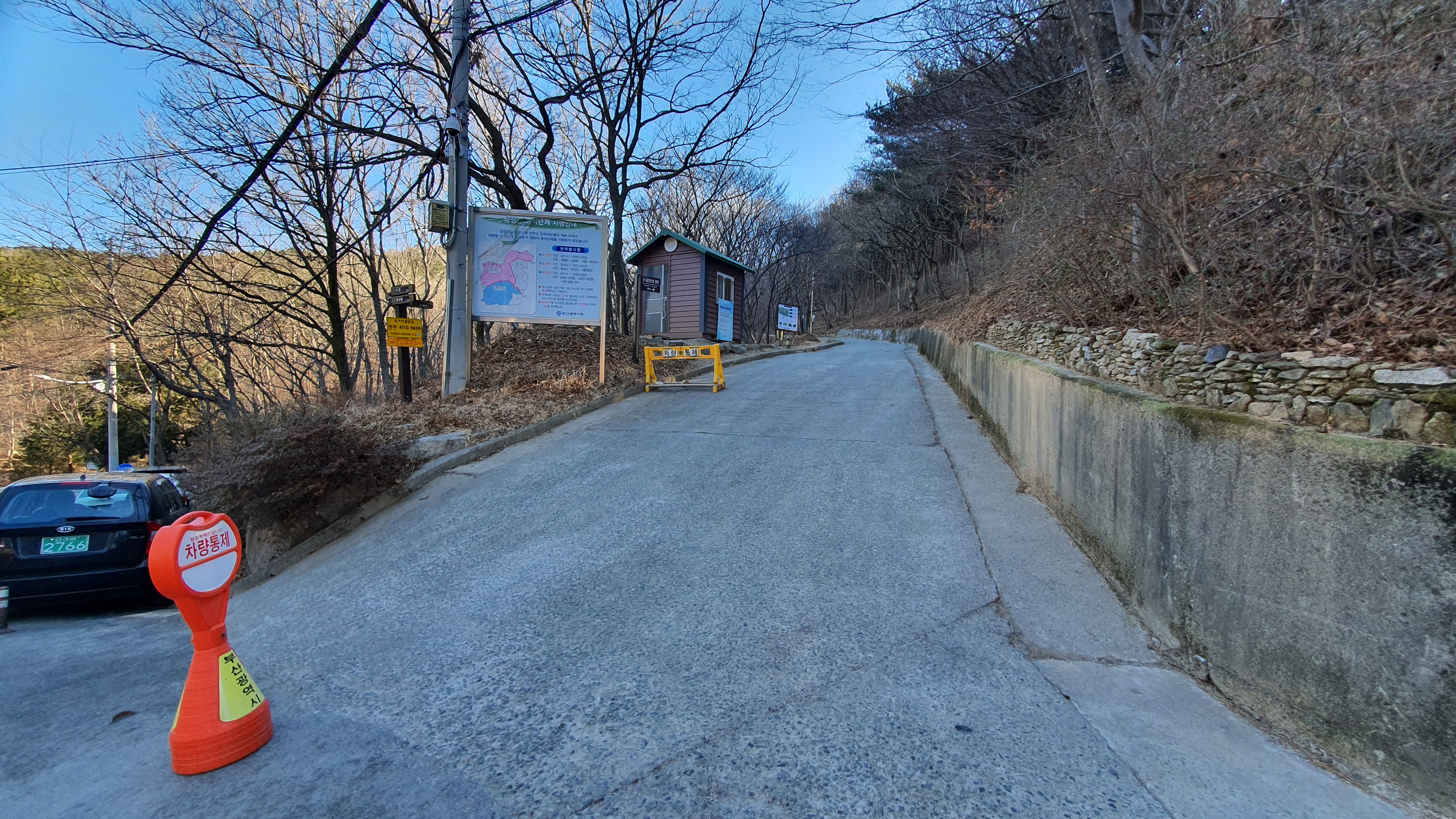 이 곳 북문(미륵사) 가는 입구에서 차량 출입을 통제한다. 조기 산행시에는 차량출입이 가능한 것 같다.