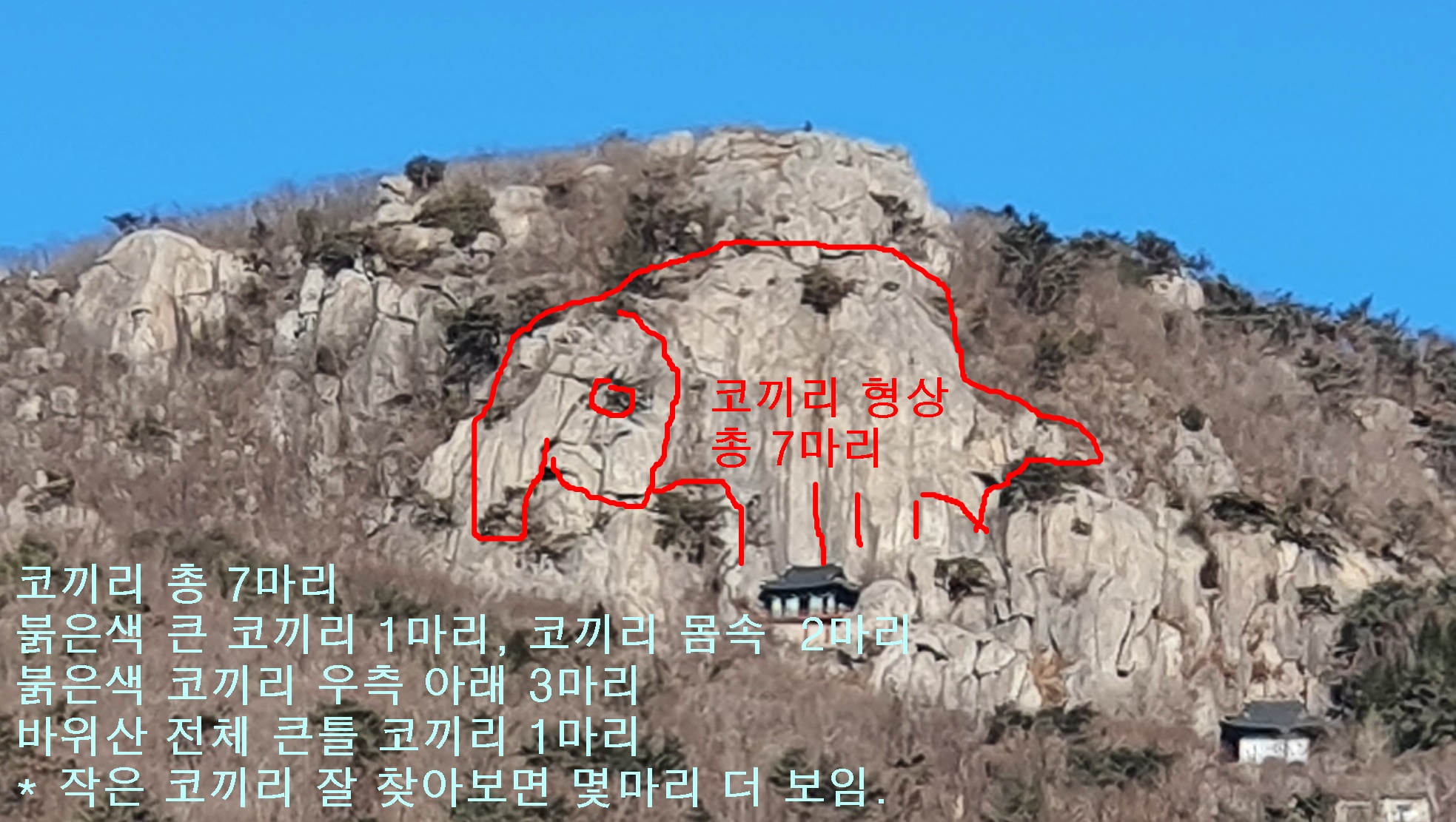 코끼리 비슷한 형상까지 모두 찾아보니 10마리가 보인다.
