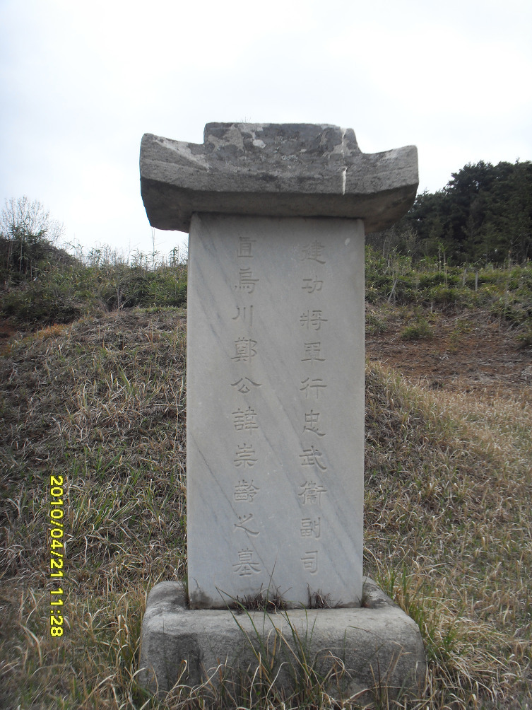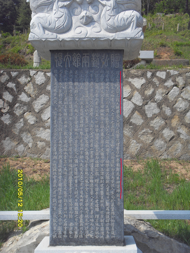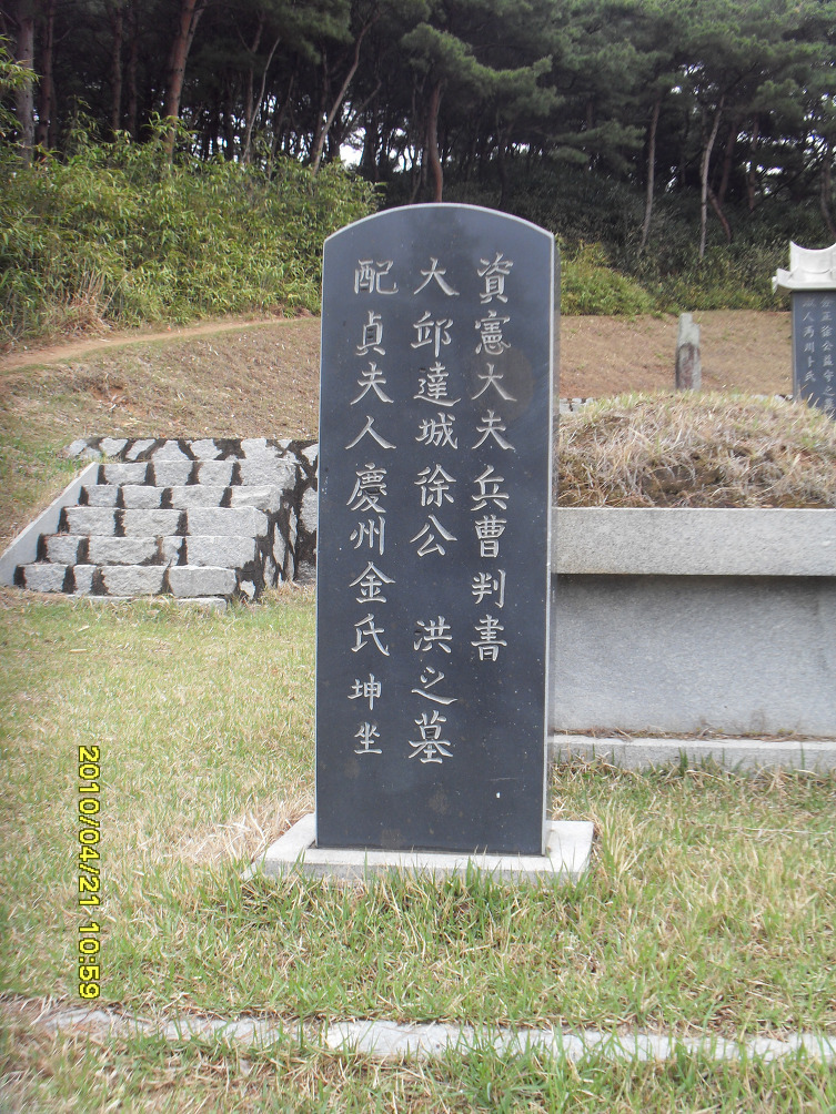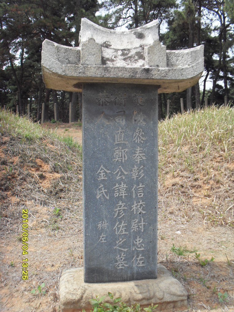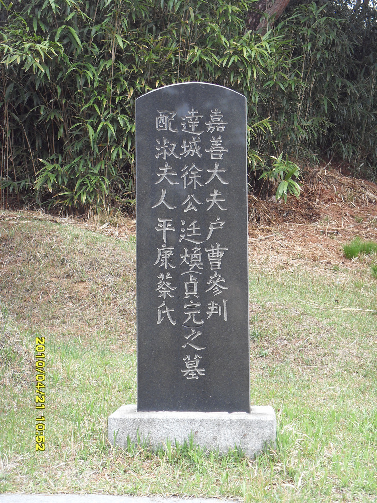 정2품(하) 자헌대부의 비(세종조에 육진 개척의 공으로 사작(賜爵)받음. 諱(꺼릴 휘:돌아가신 분에게만 쓰며 살아게신 분은 銜(함)자를 쓴다.)자는 대개 벼슬이 높은 사람, 시조 등에 쓴다.