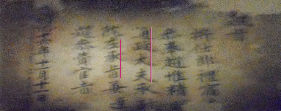 종2품(하) 가선대부와 호조참판은 품계와 관직이 일치해서 '行'이나 '守'를 쓰지 않아서 바른데, 다음의 '行掌樂院直長'이 이상하다. 직장은 종7품벼슬이기 때문이다. 뒷면을 보니 장락원 직장으로 계시다가 퇴직후 추증되었음을 알 수 있다. 그러므로 전면에는 최종 추증된 관직을 쓰고 이전의 낮은 벼슬 '行掌樂院直長'이란 문구는 뒷면의 양력에 써야 한다.