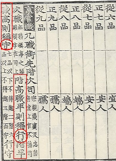 ③ 관직이 품계와 일치하면 行이나 守를 쓰지않고, 품계보다 관직이 낮으면 行, 관직이 높으면 守를 쓰는데 잘못된 것이 많다.