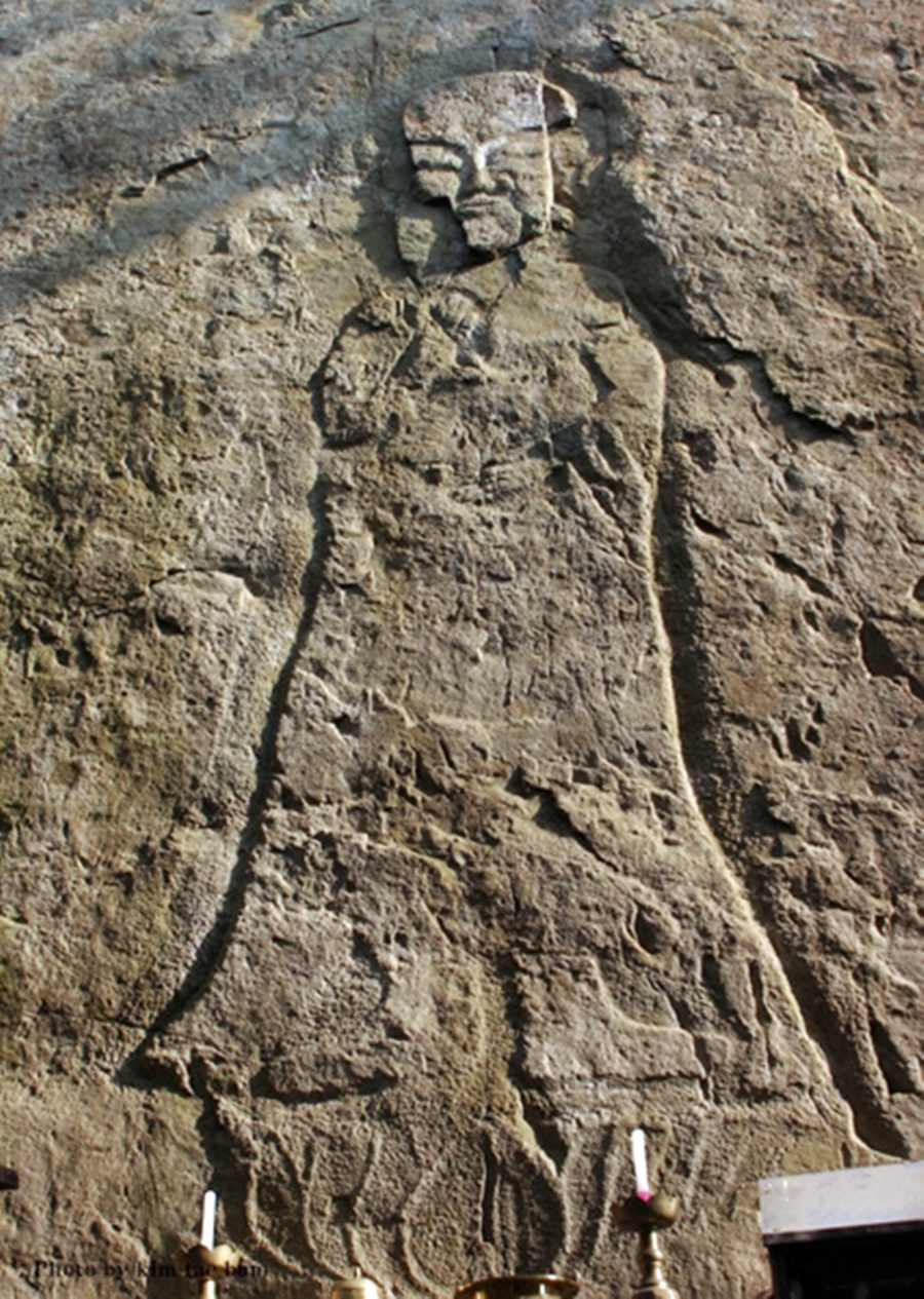 높이는 약 칠미터로서 삼국초 마애불의 최고최대의 작품.