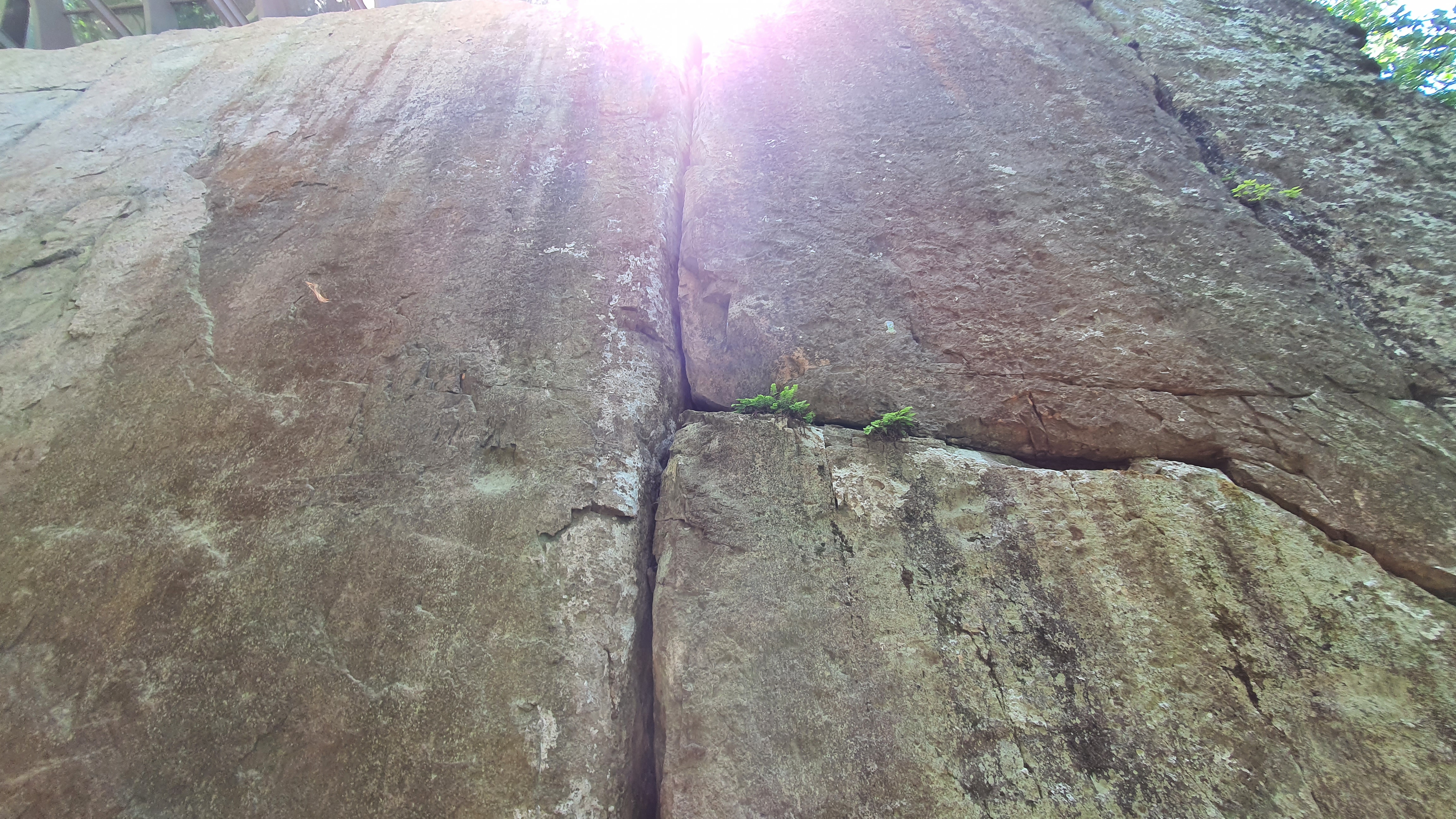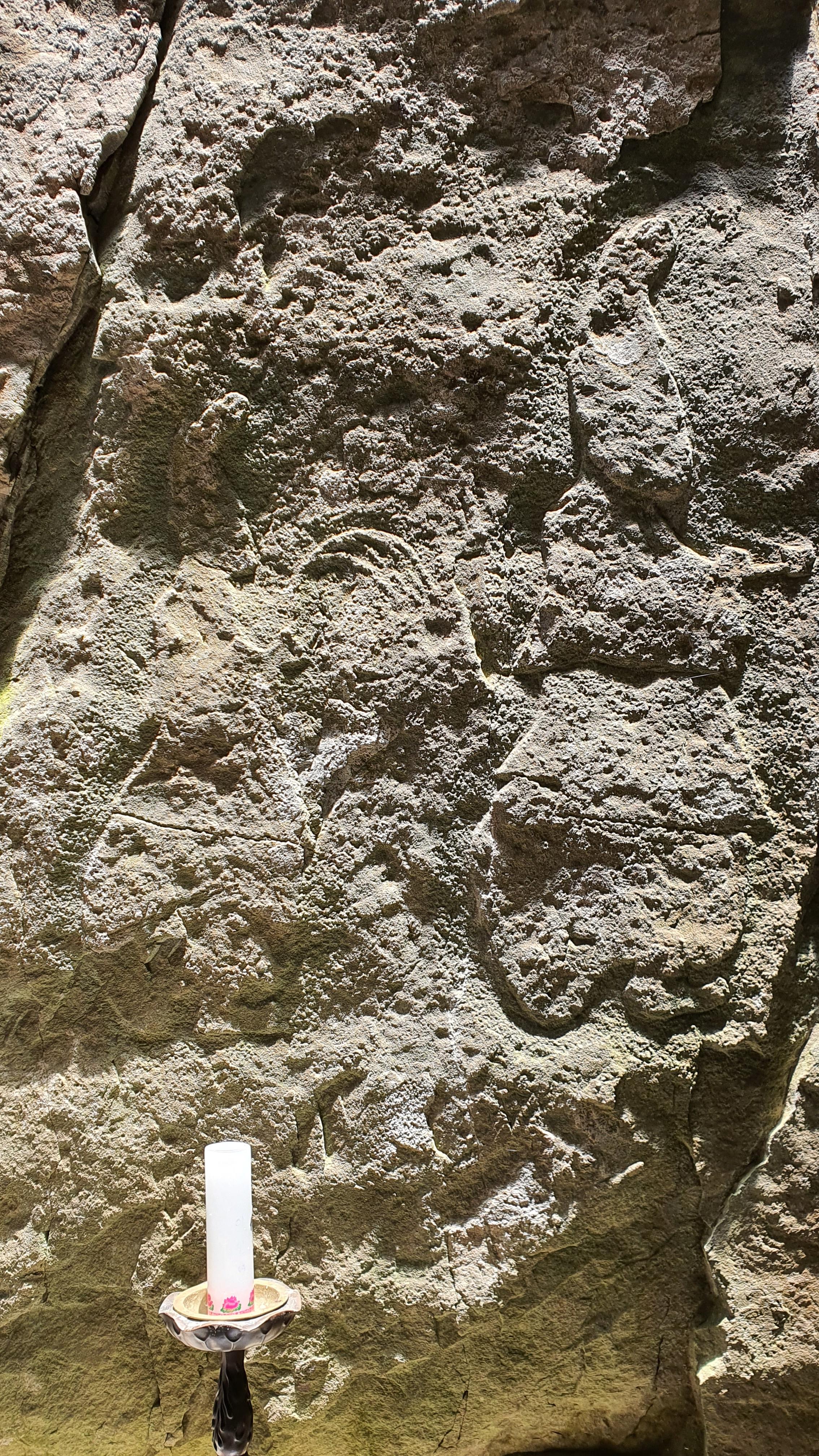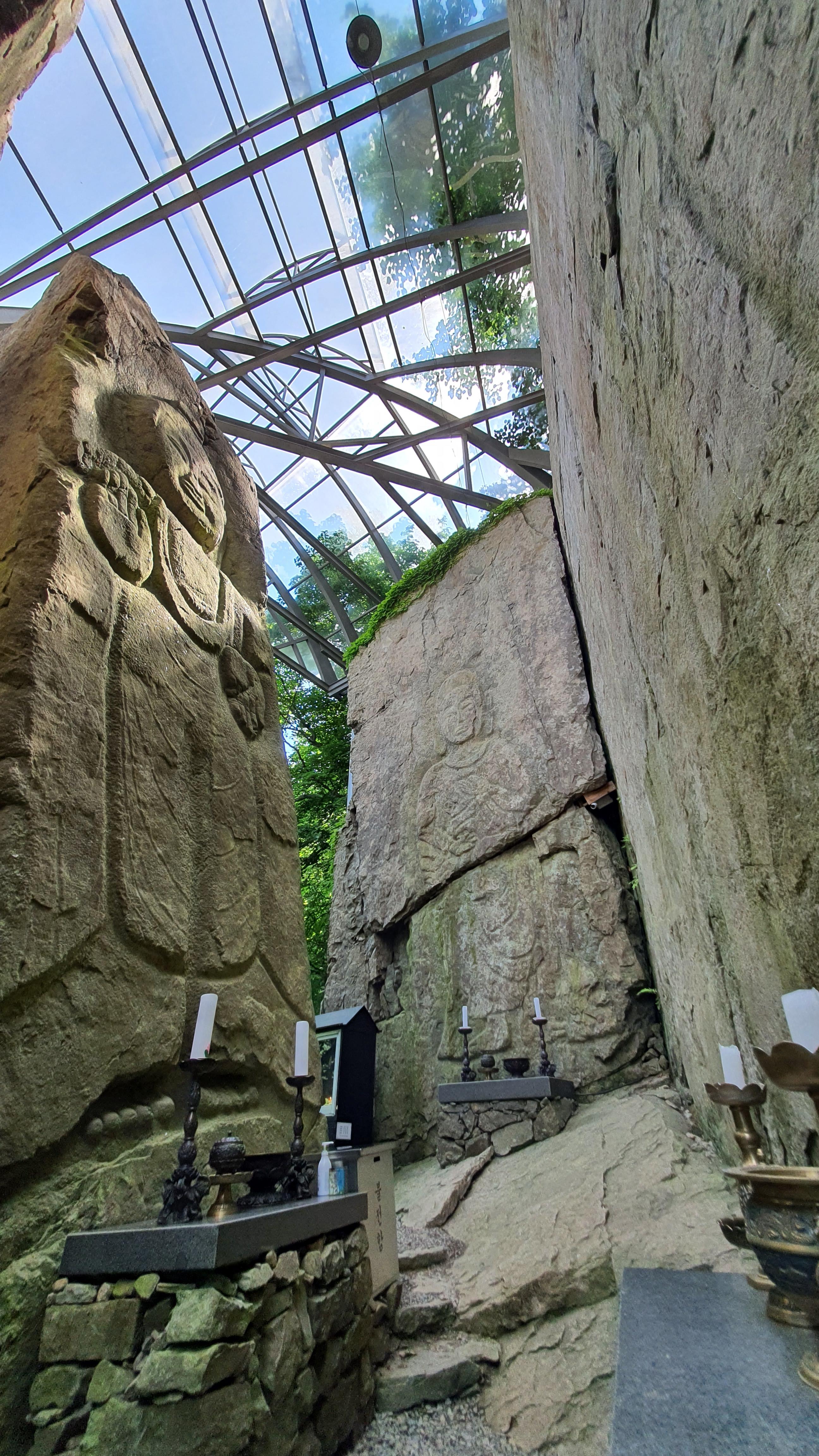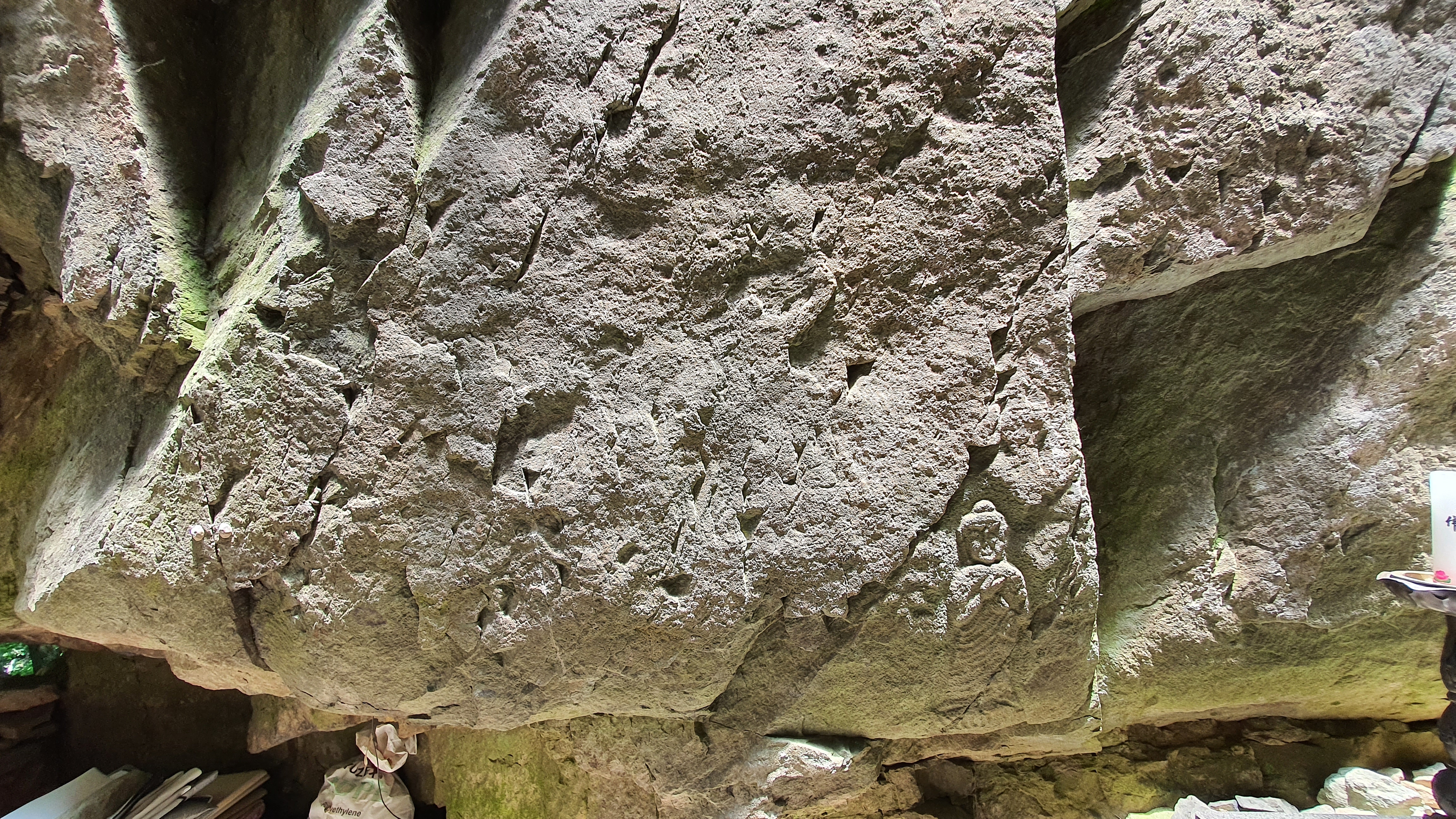 석굴 위쪽 바위면에 기둥이 놓였을만한 홈이 파여있고, 석굴주변으로는 기와 파편들이 많이 발굴되었다.