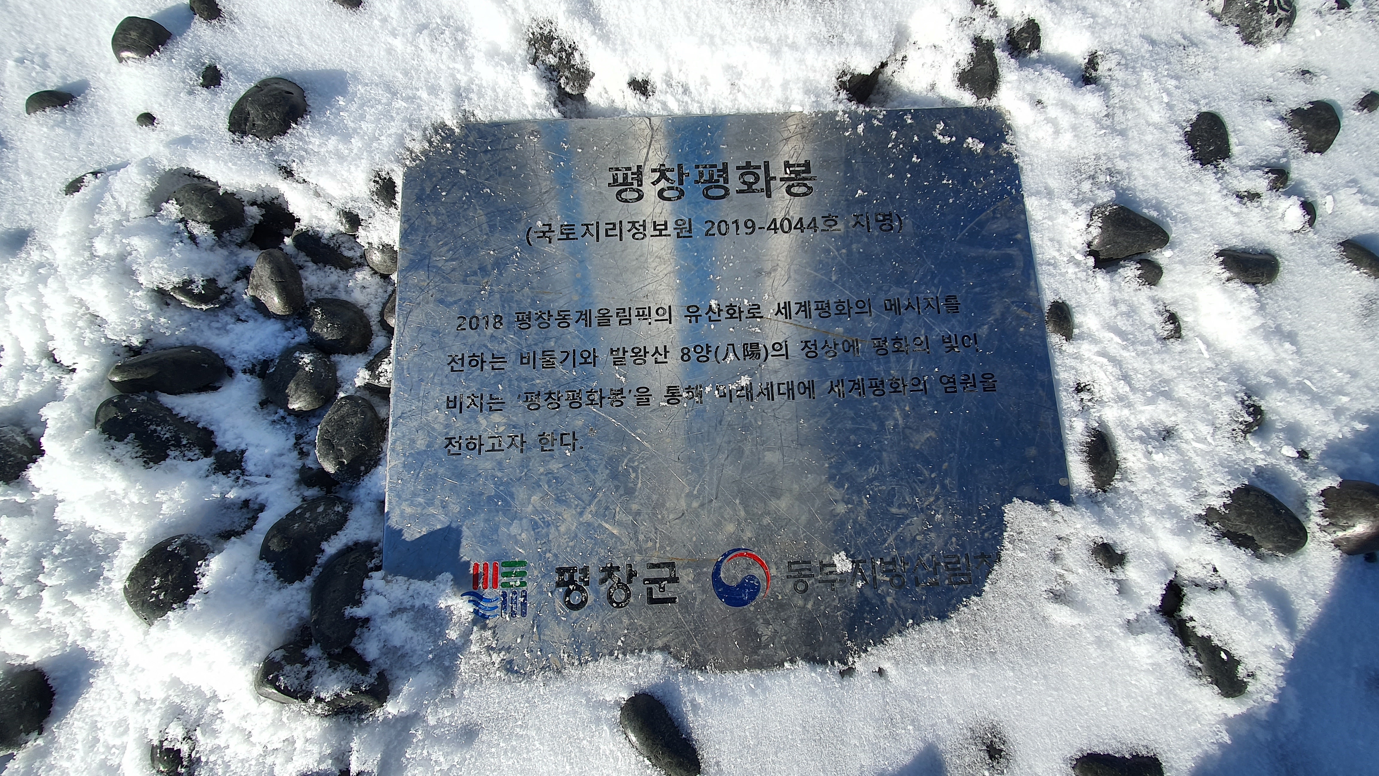 발왕산 정상부 케이블카 하차장에사 "평창 평화봉" 정상까지는 거의 평단한 길을 약 20분정도 걸으면 된다.