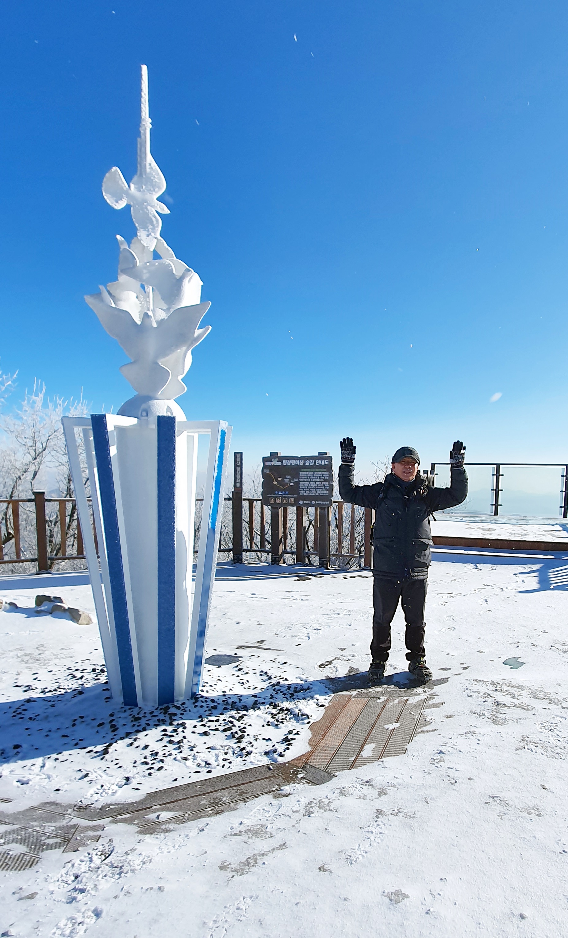 정상까지 발왕산의 겨울 왕국이 시원하게 펼쳐지는데, 안전을 위해 아이젠은 준비하는 것이 좋다.