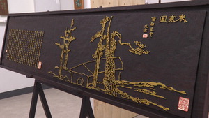 전각 작업은 먼저 재료에 글·그림을 새긴 뒤 이를 깎아내는 방식으로 이뤄진다. 장시간의 집중력이 필요하다. 전각도를 쥔 손은 세밀하게 악력을 조절할 수 있어야 한다. 안 전각장의 오른손 검지 손가락 첫째 마디는 육안으로 보기에도 도드라지게 툭 불거져 있다. 60년 가까이 붓과 전각도를 쥐어 온 세월이 그의 몸에 남긴 전각인 셈이다. 대표작을 묻자 안 전각장은 추사의 세한도(歲寒圖)를 옮겨 새긴 ‘세한도’를 꼽았다. 길이 1.8m에 폭 45㎝인 참나무 위에 옮겨진 작품이다. 추사가 제주도에 유배돼 있을 때 남긴 그림과 글 원작이 모태다.