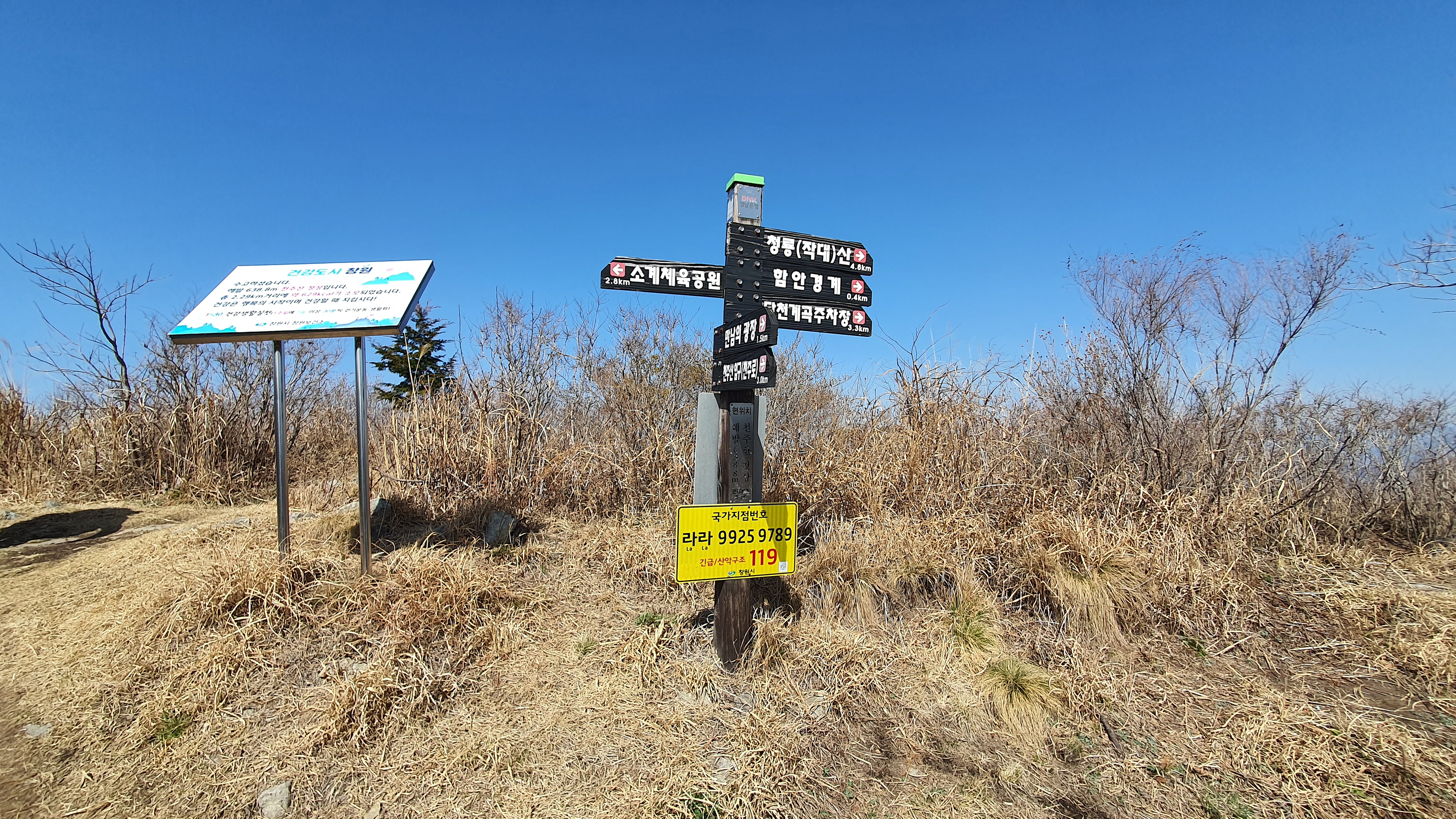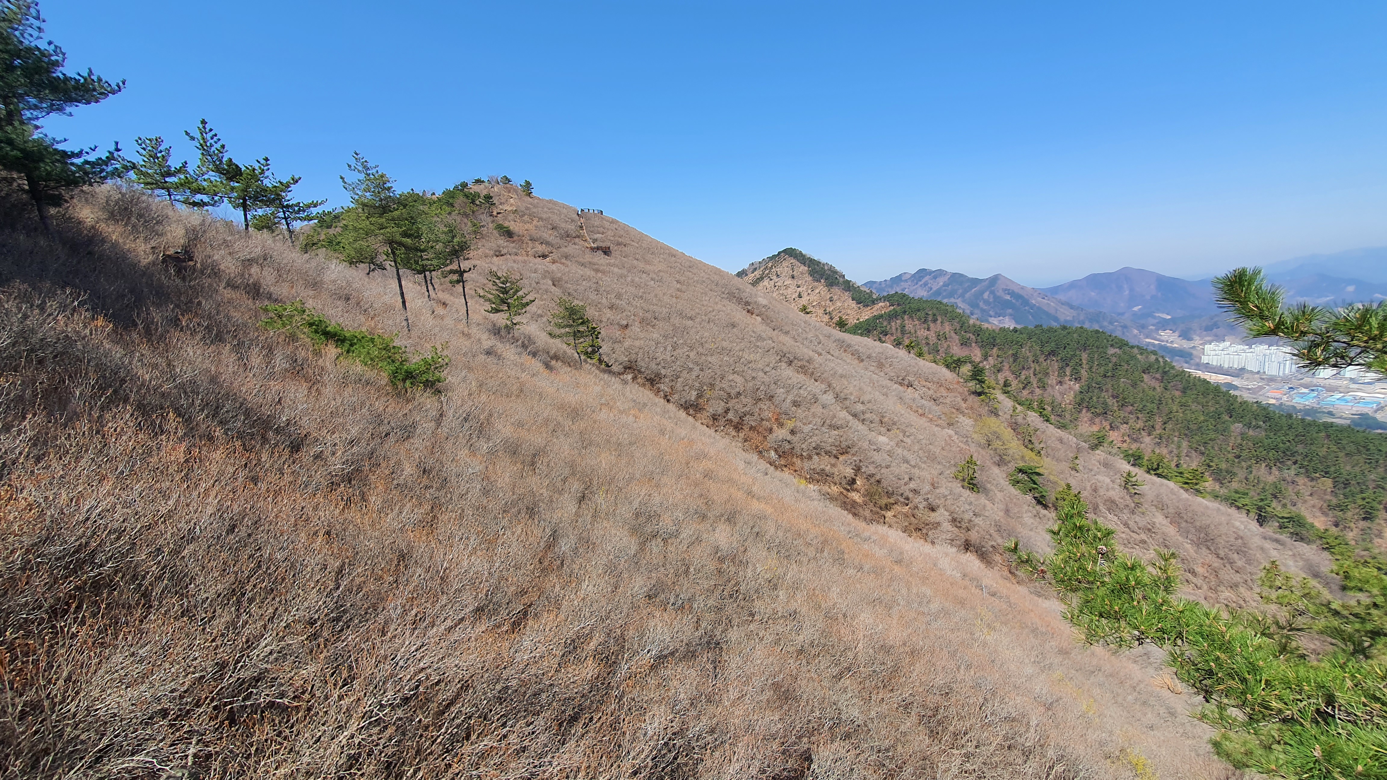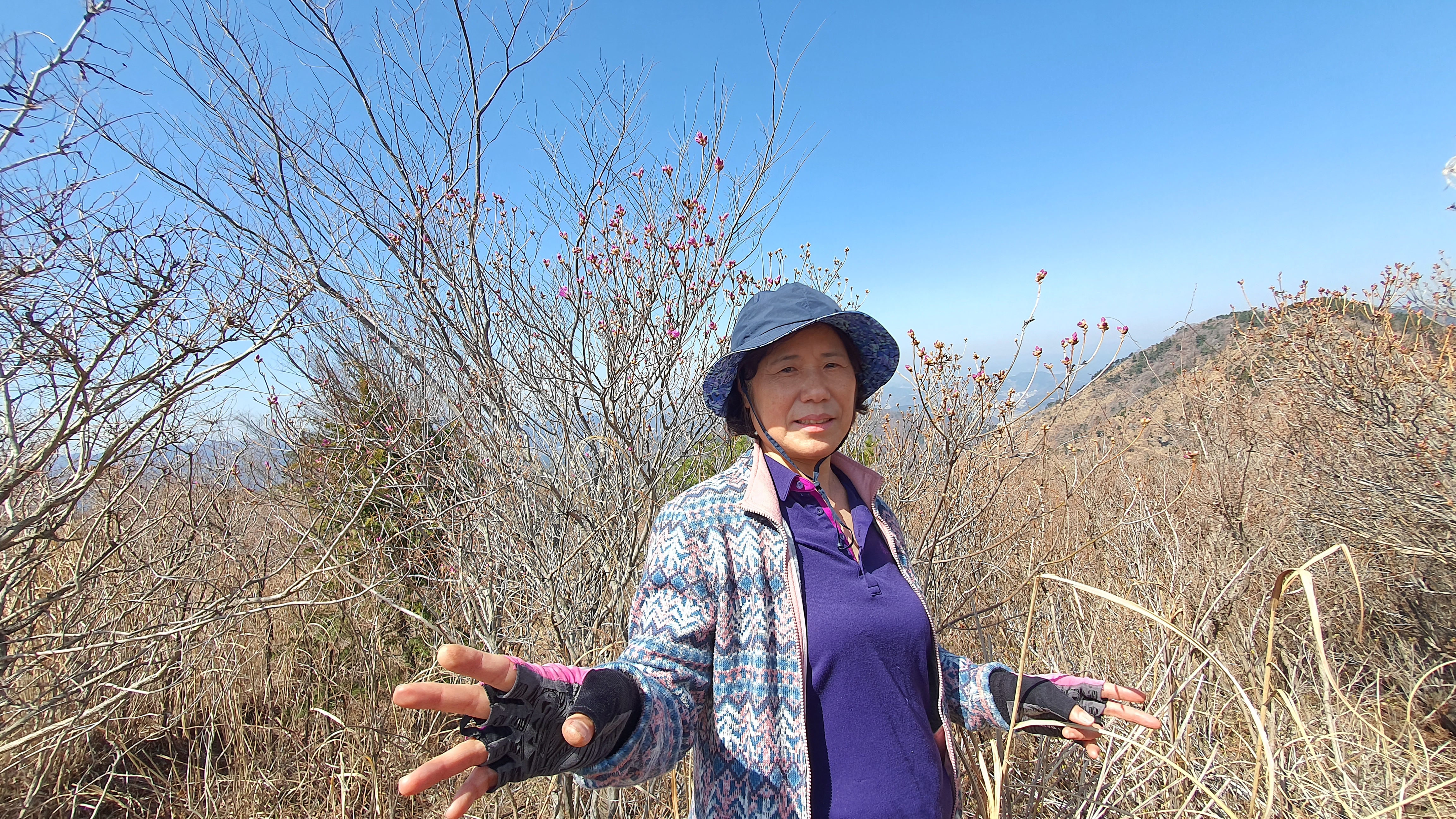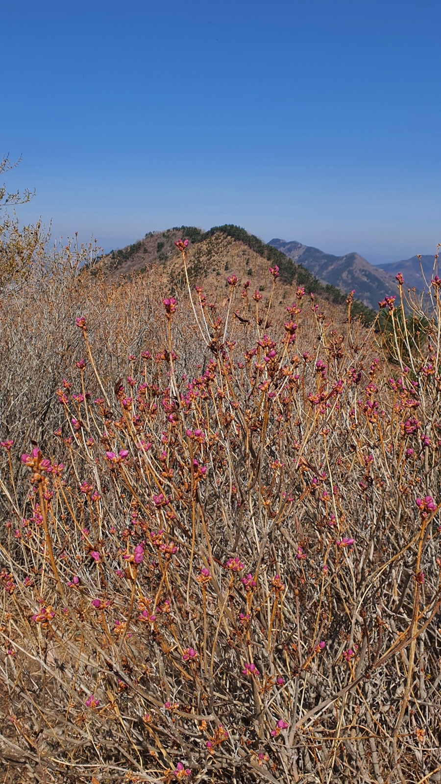 정상부에는 이제 겨우 진달래 꽃망울이 맺히고 있습니다.