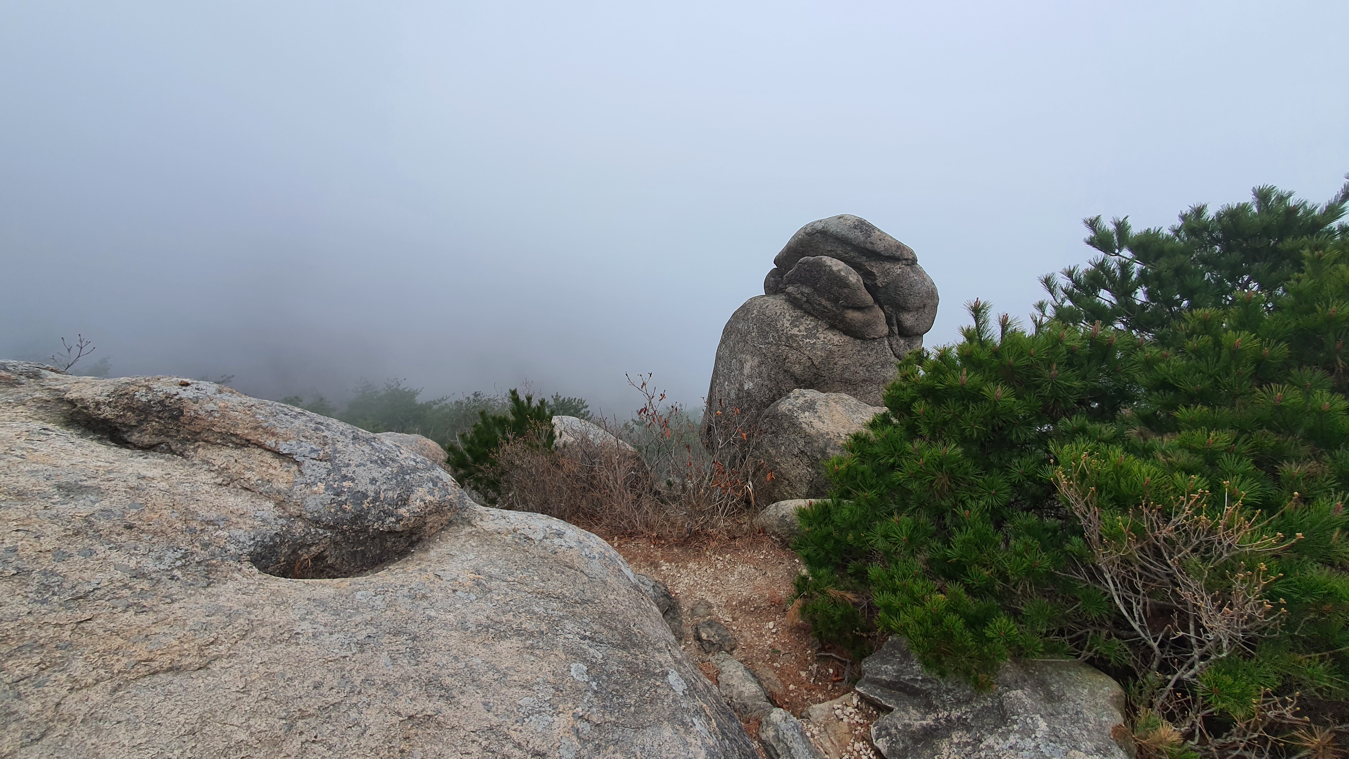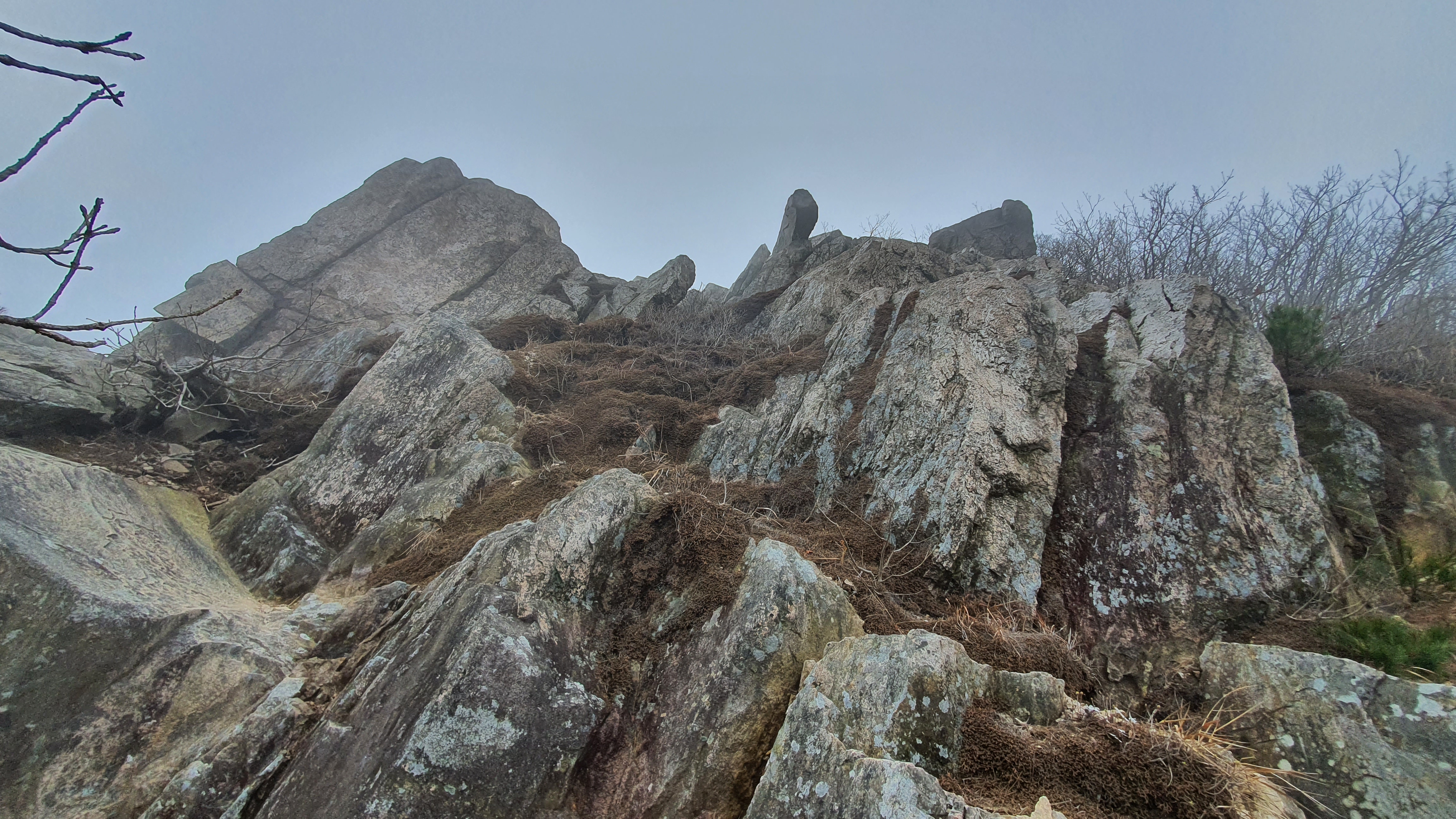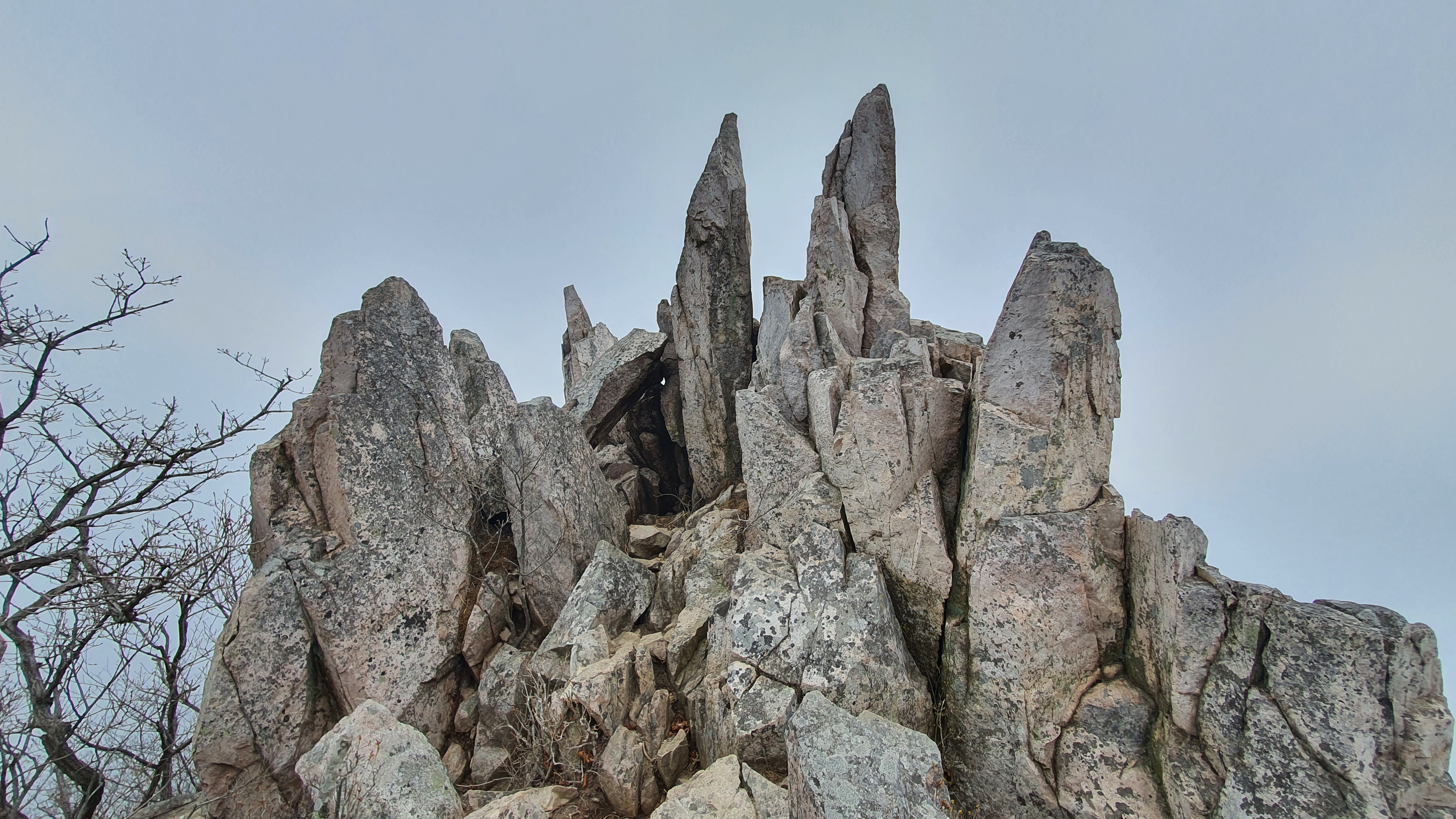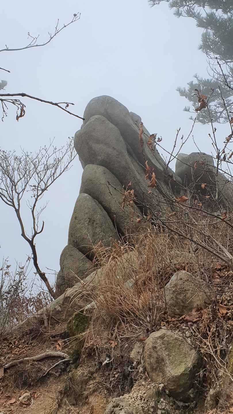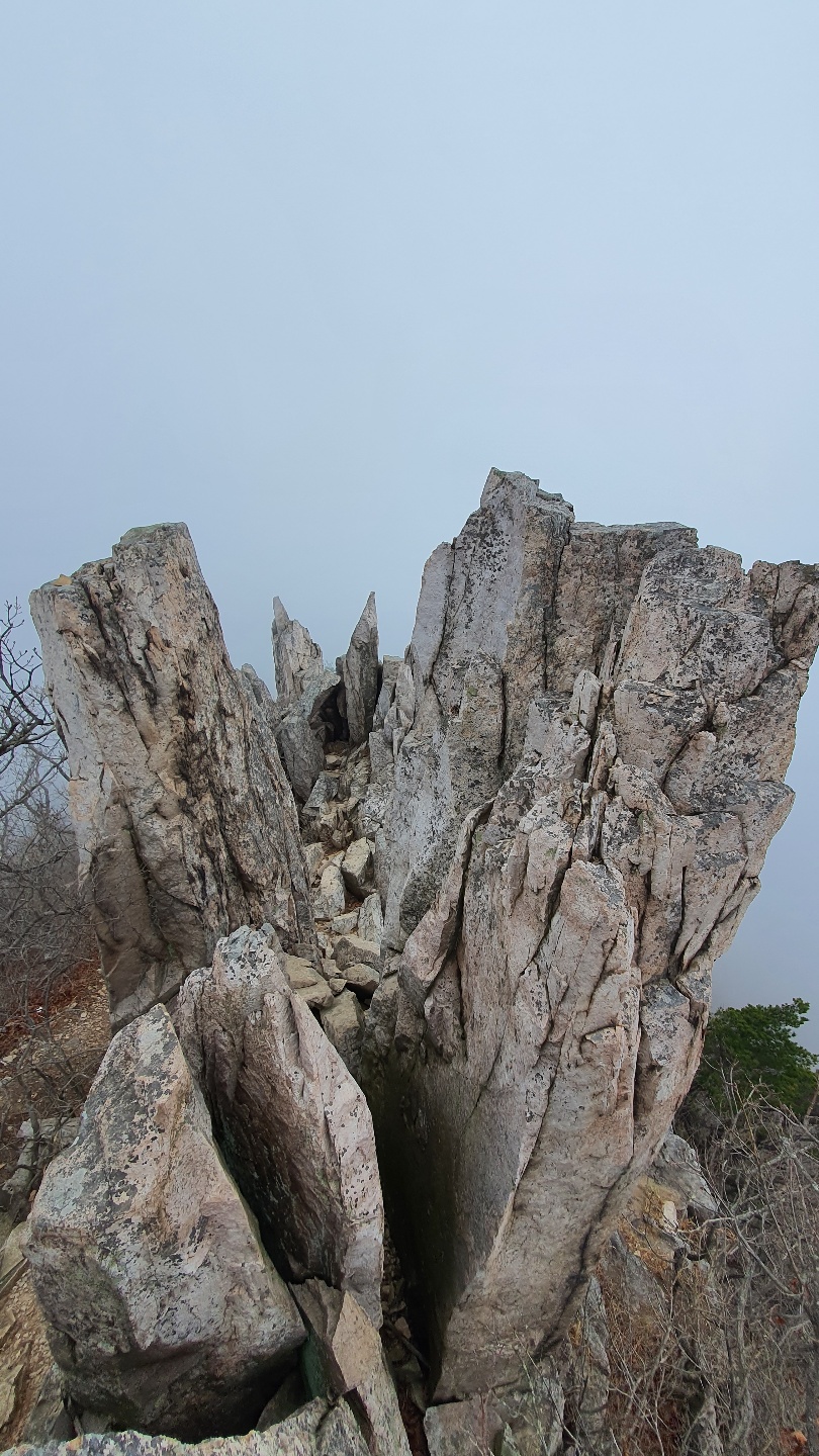 상계봉 정상석이 있는 곳은 조망이 막혀 있지만, 정상석 우측 편의 바위 전망대는 뾰죽한 바위들이 불꽃처럼 피어나 하늘을 향해 화려하게 피어 있다. 왕관바위라고도 부른다.