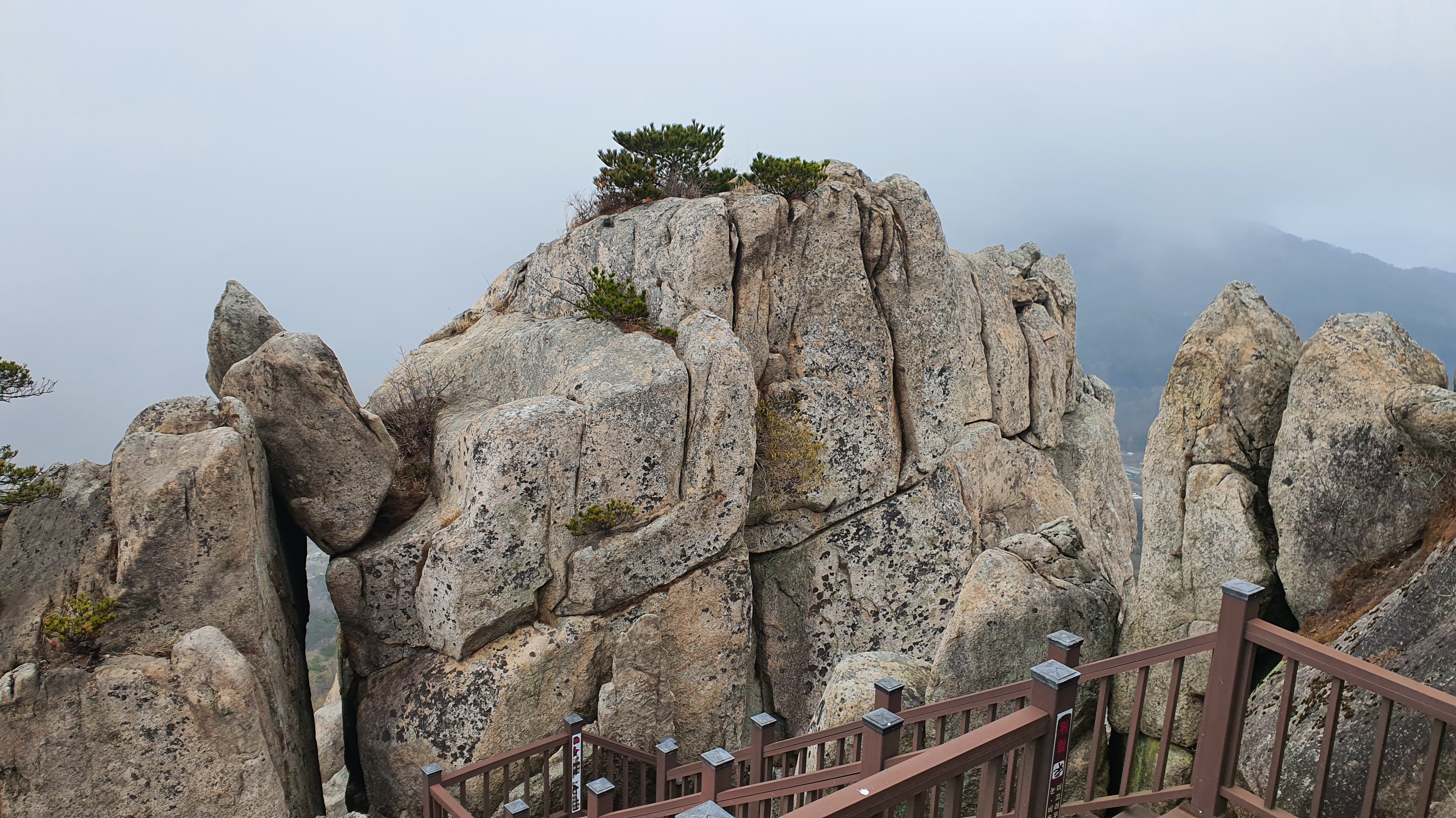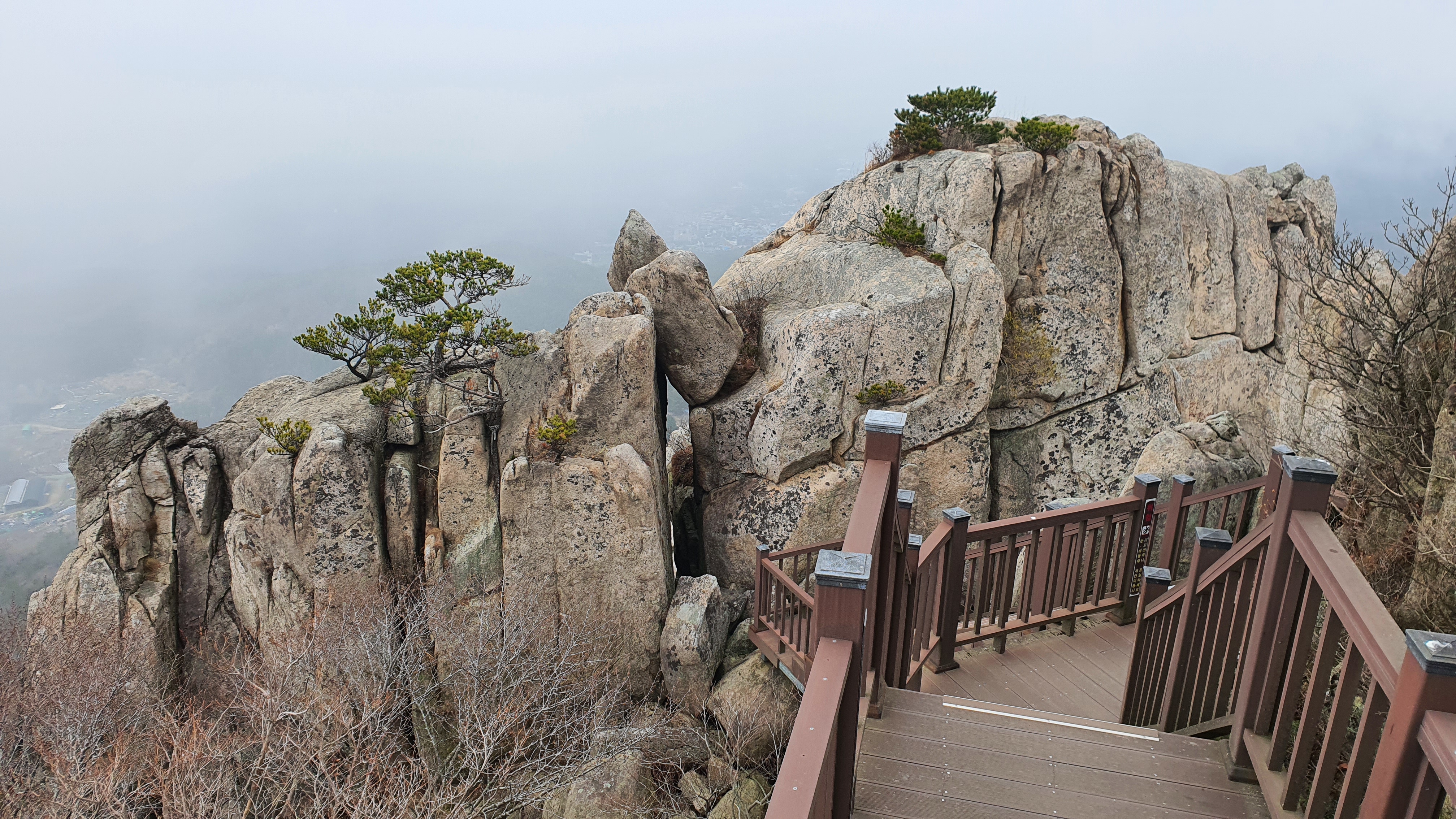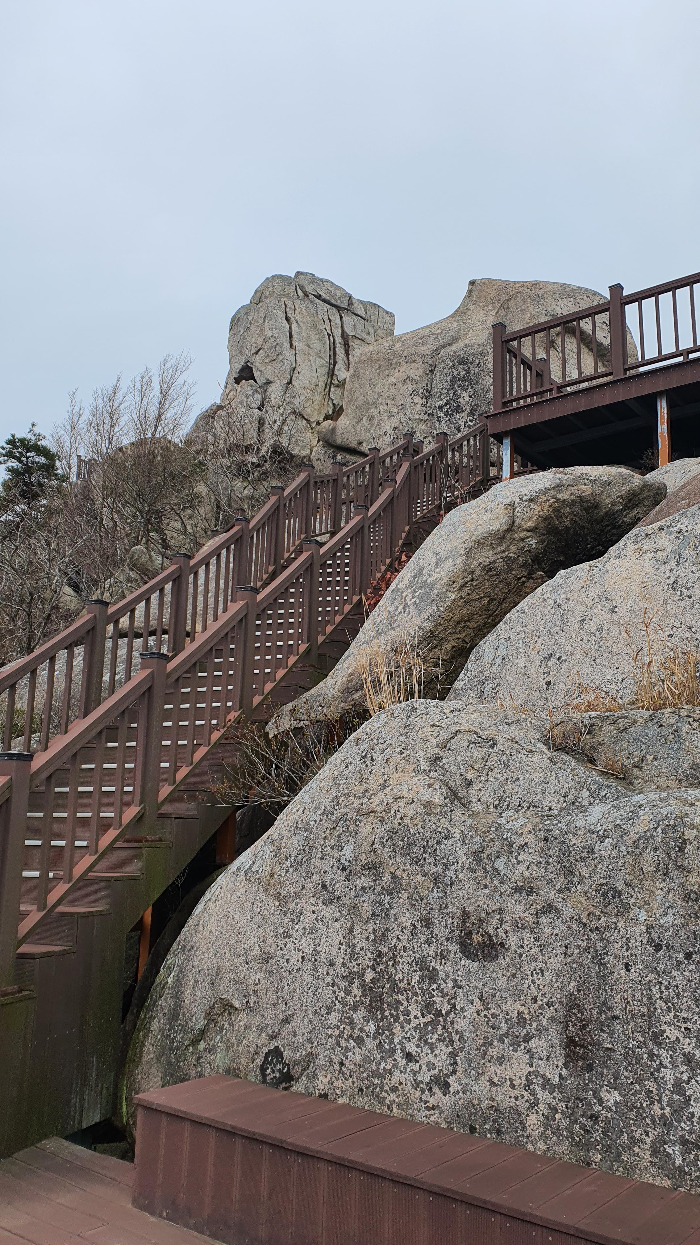 파리봉 정상에서 좌측으로 나무데크 전망대를 거쳐 공해마을로 내려가는 계단들이 만들어져 있다.