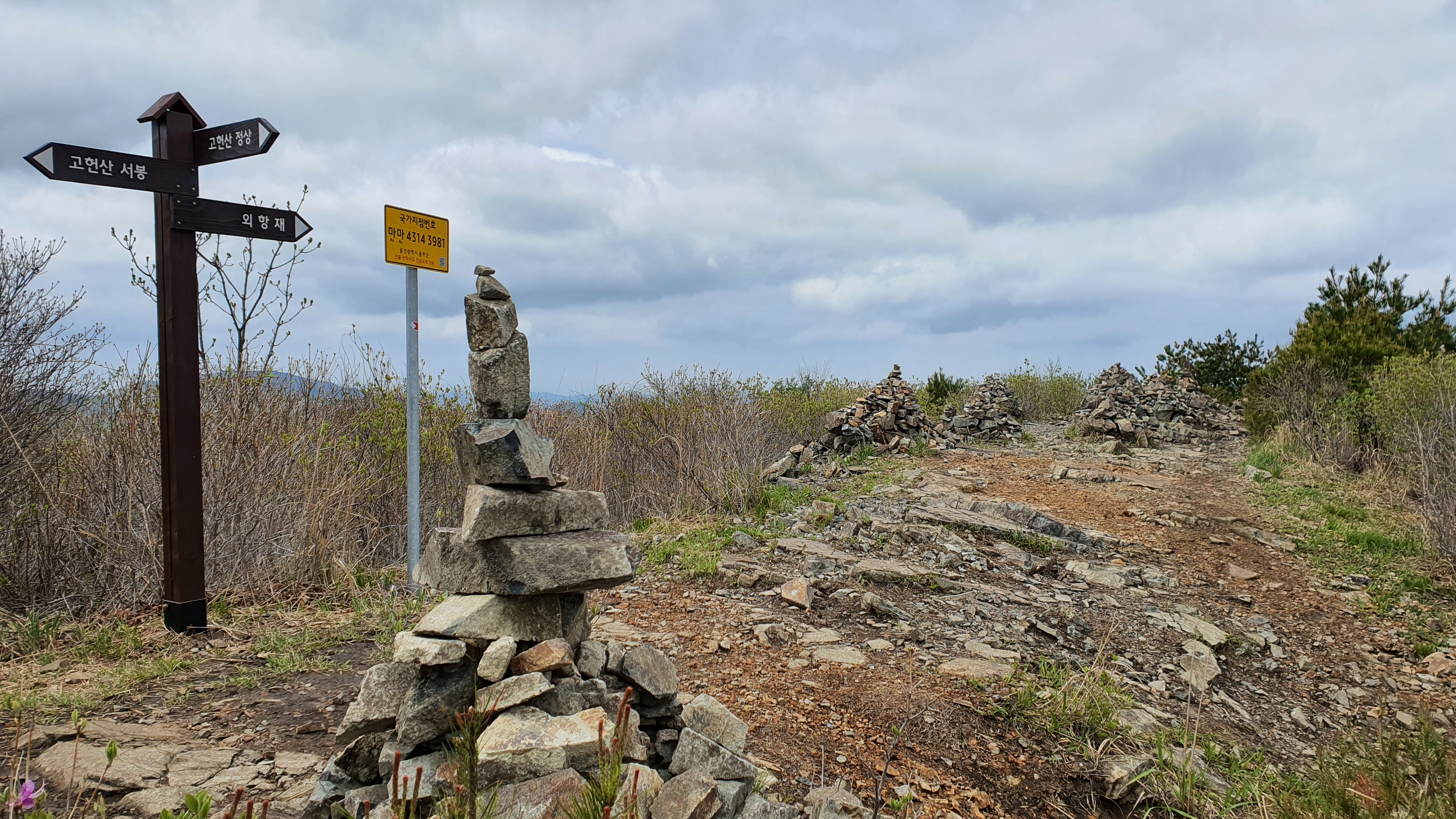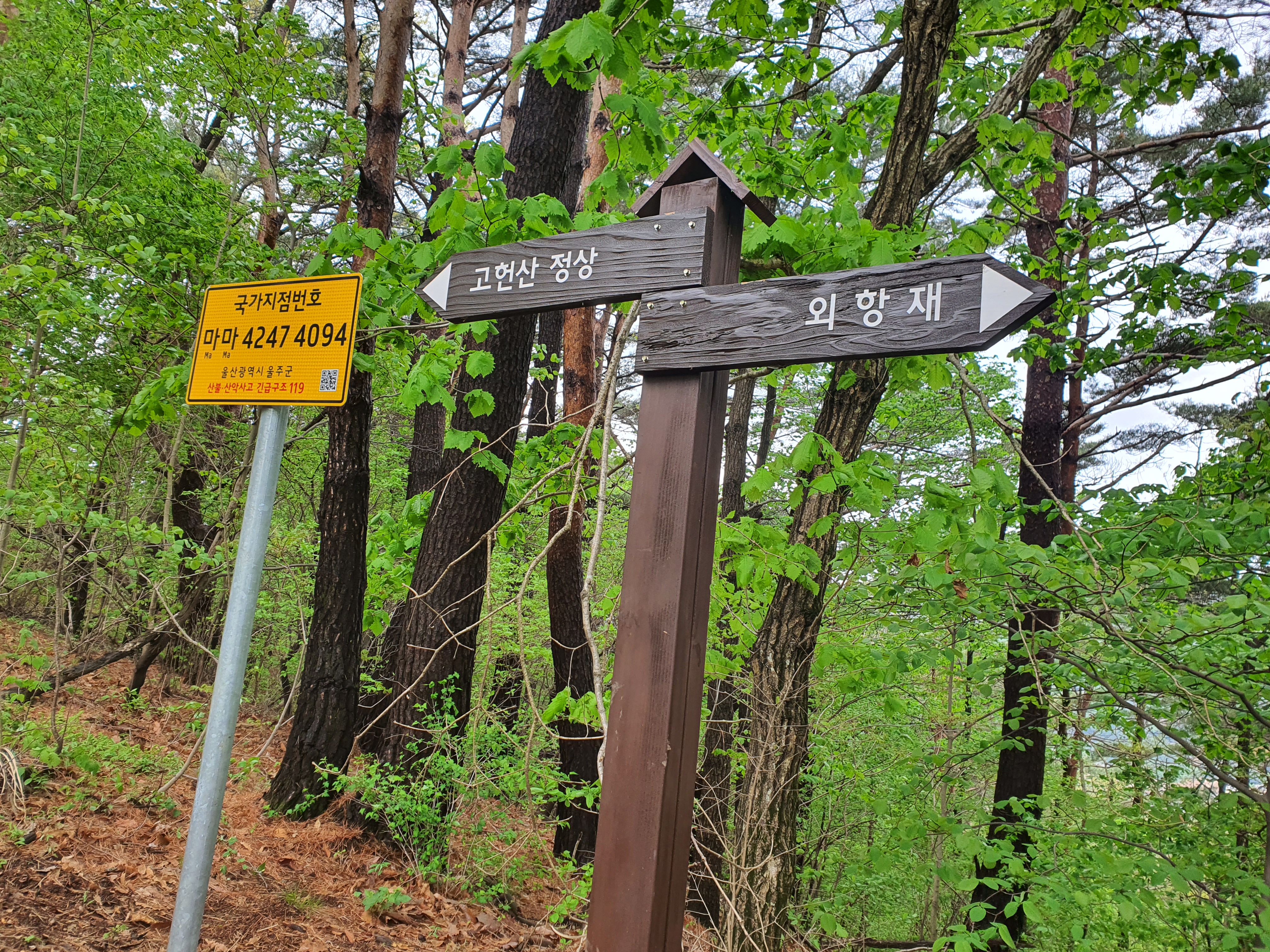 참고로 고헌산 이정표에는 외항재로 되어 있고, 지도상 검색에는 와항재로 나온다.
