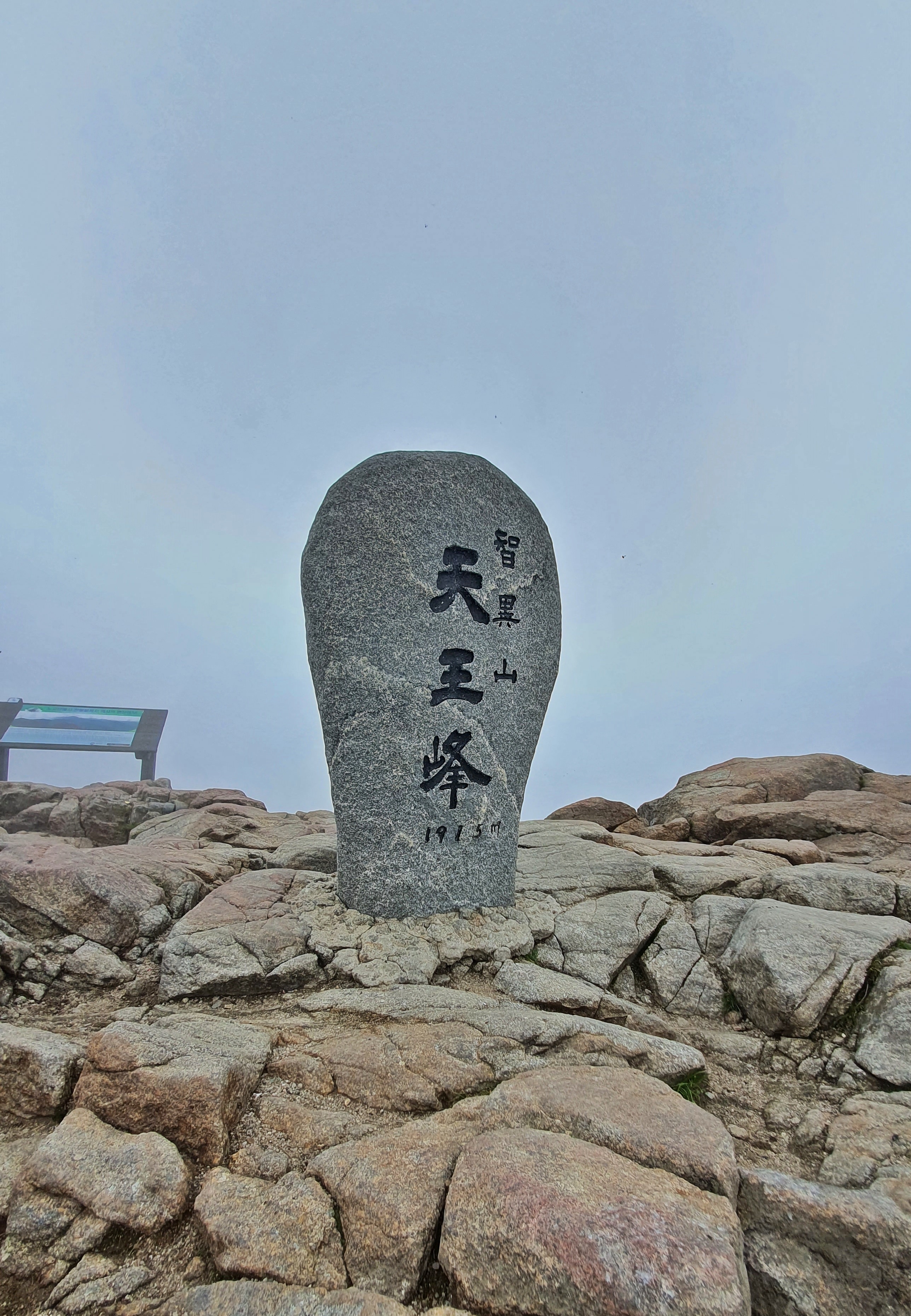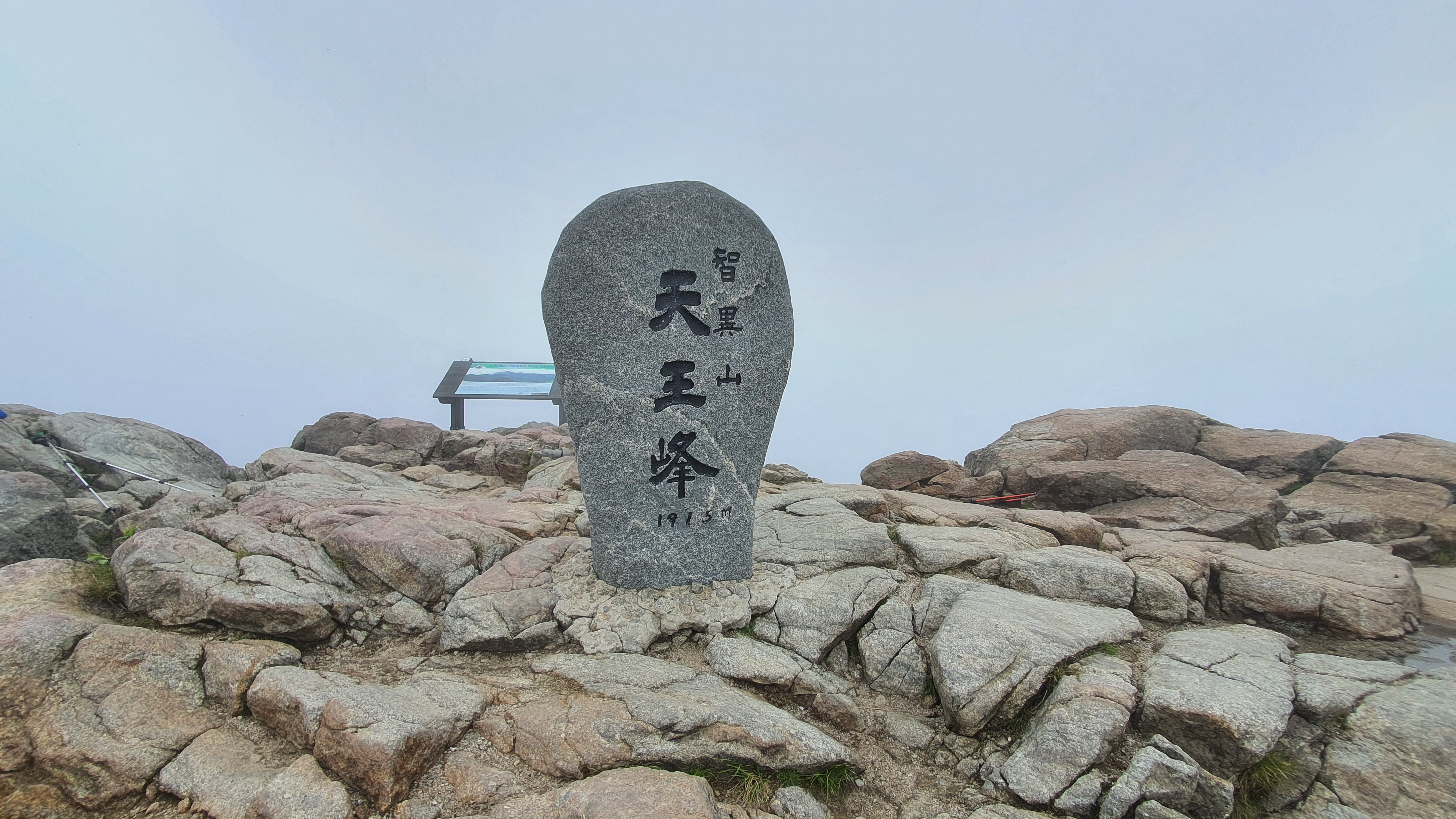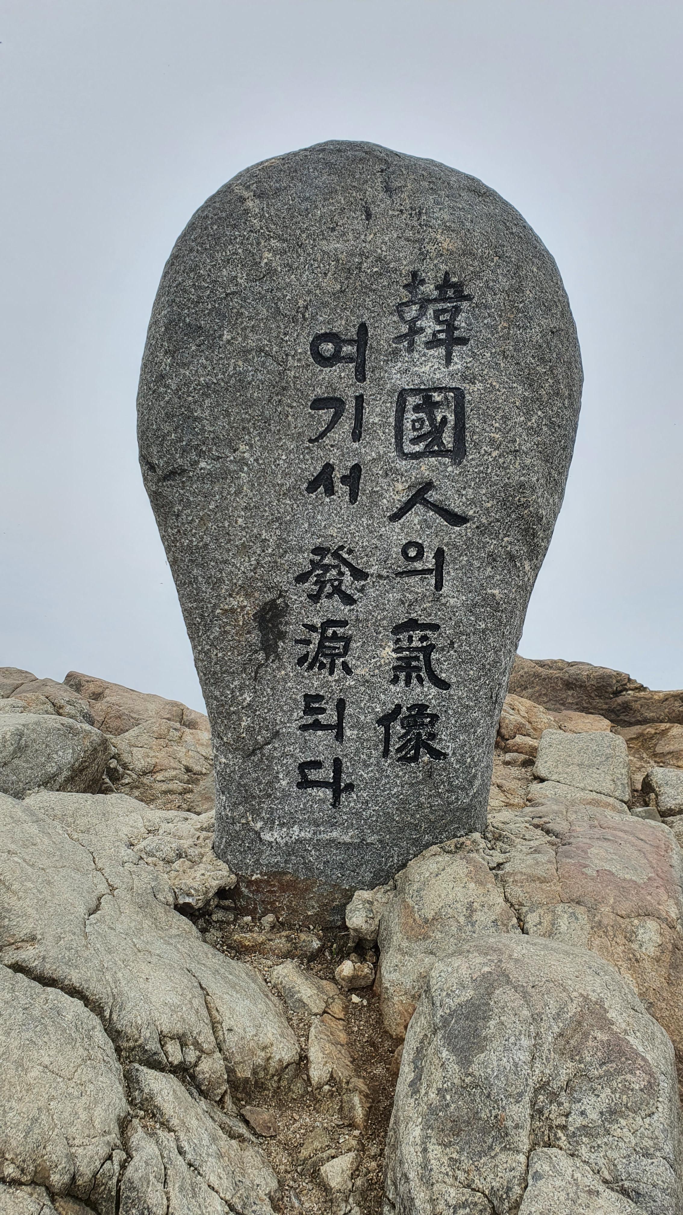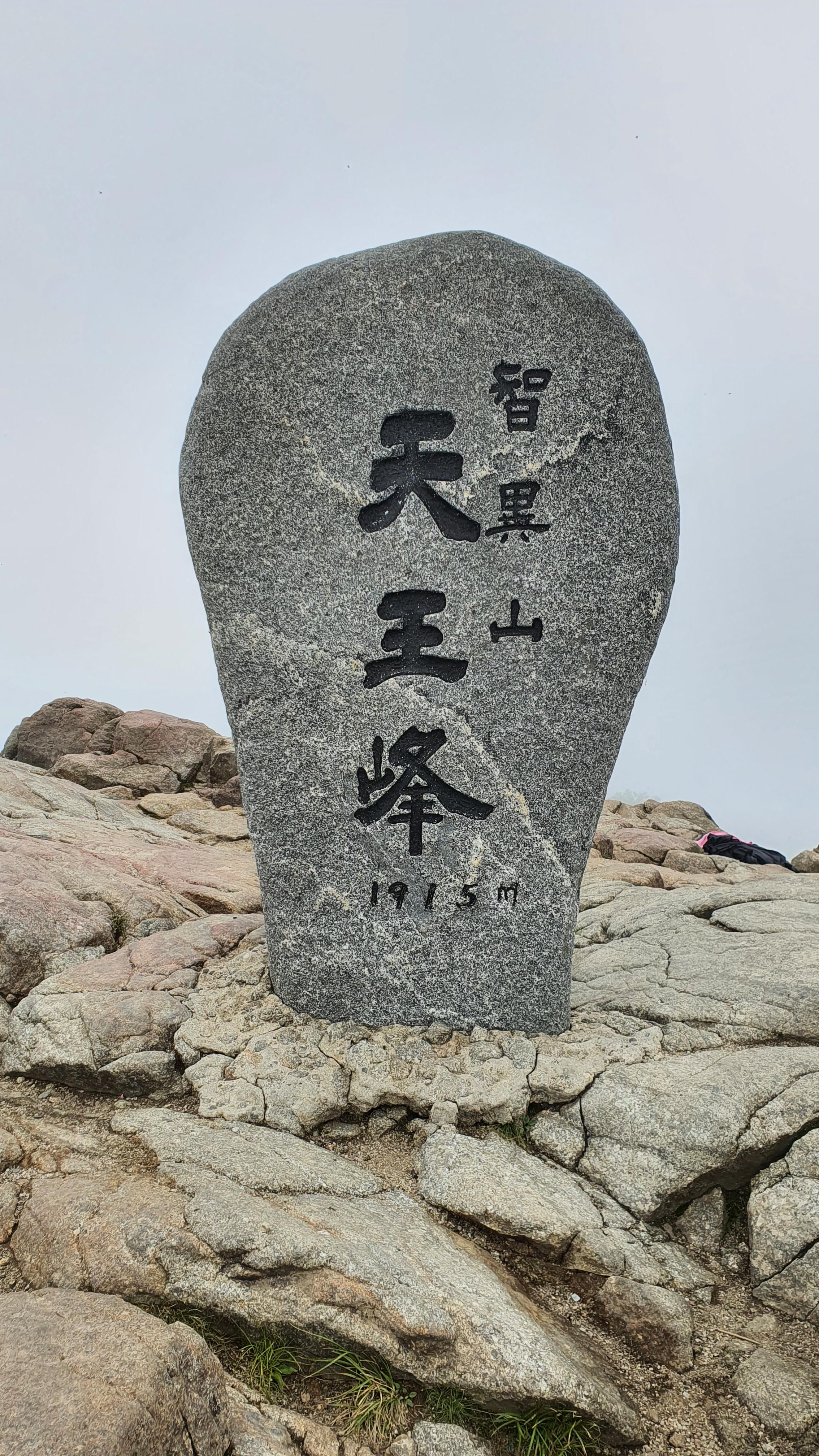 천왕봉 표지석에 “韓國人(한국인)의 氣像(기상) 여기서 發源(발원)되다 "라는 글이 새겨져 있다.