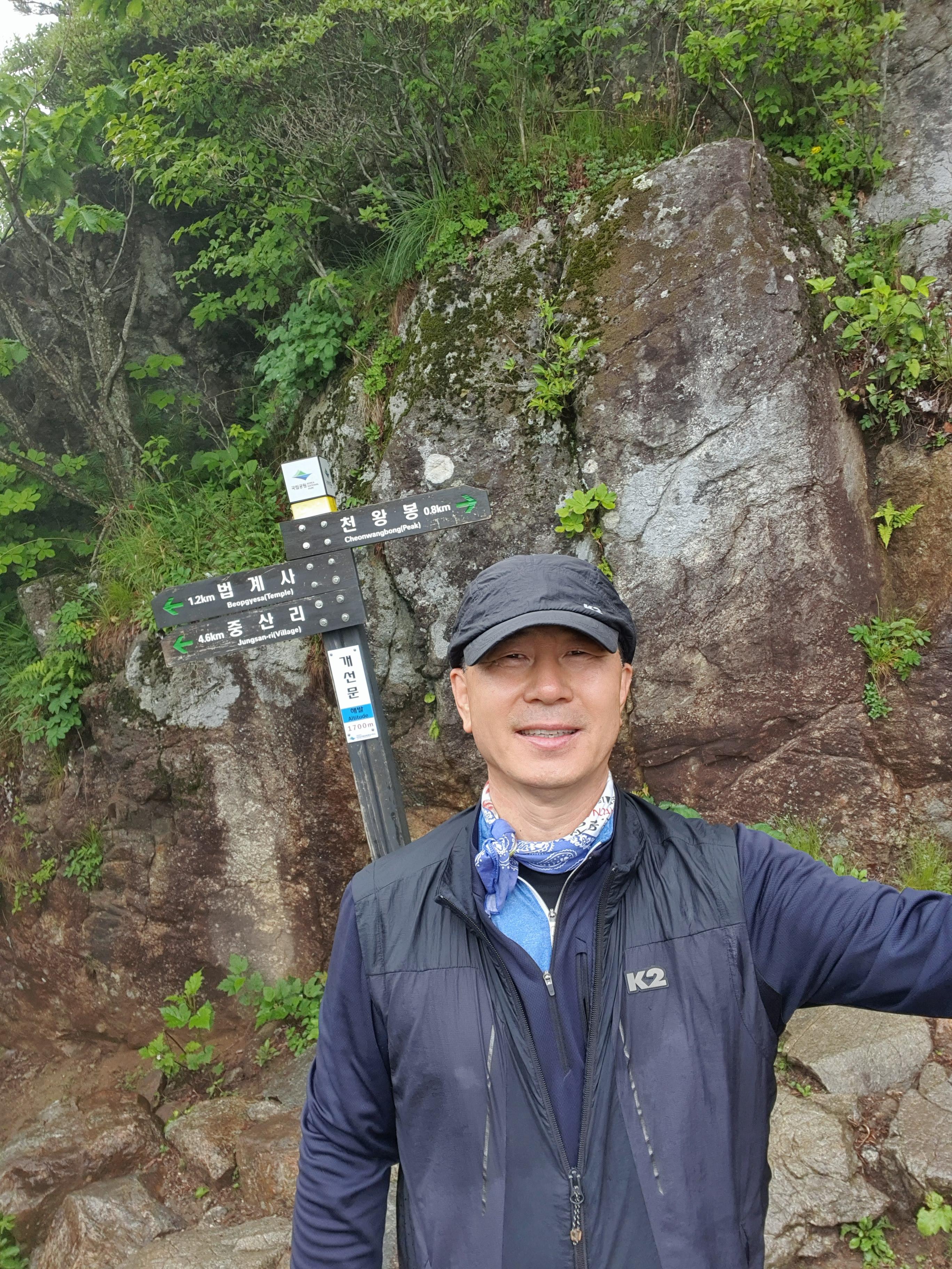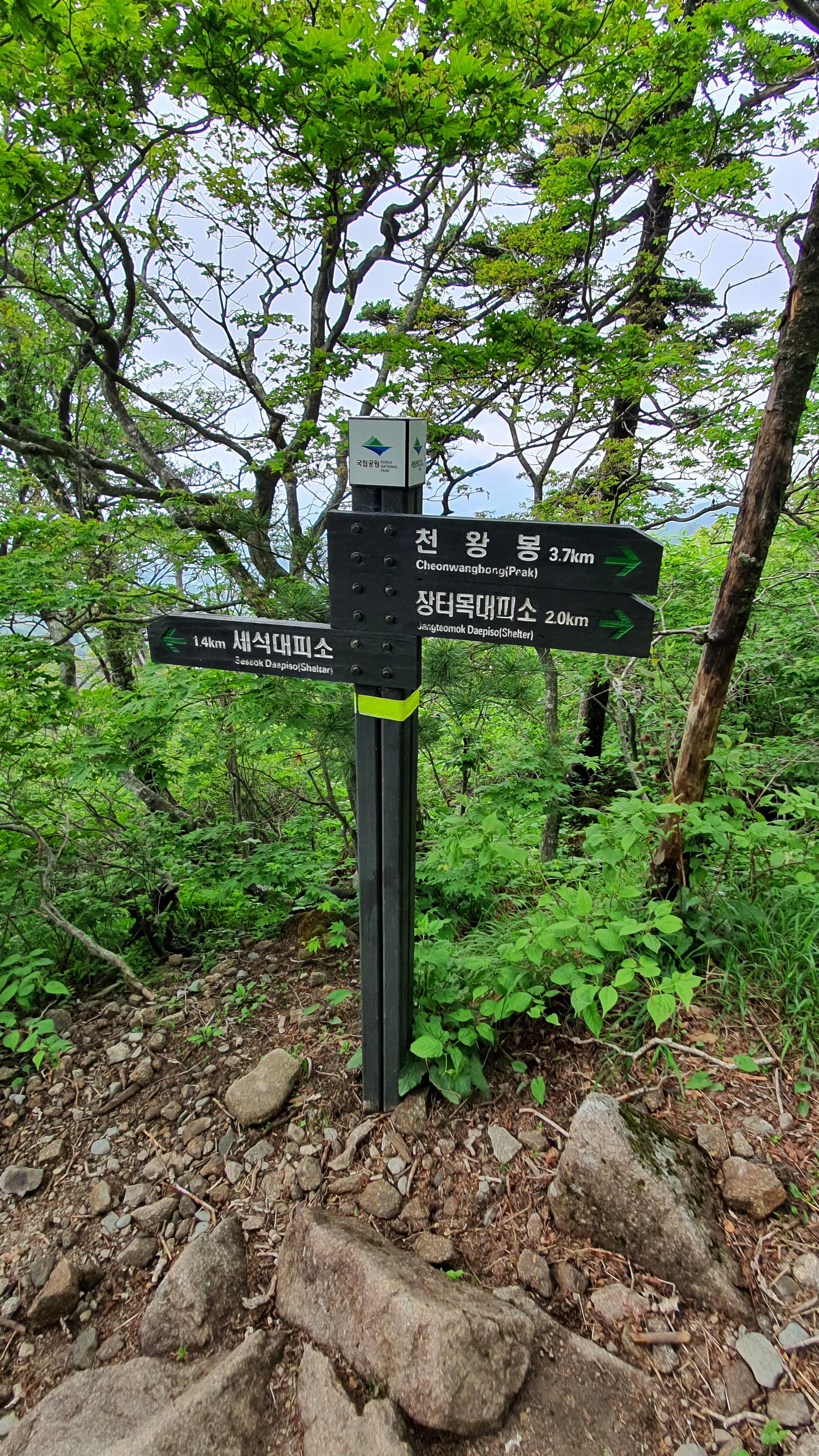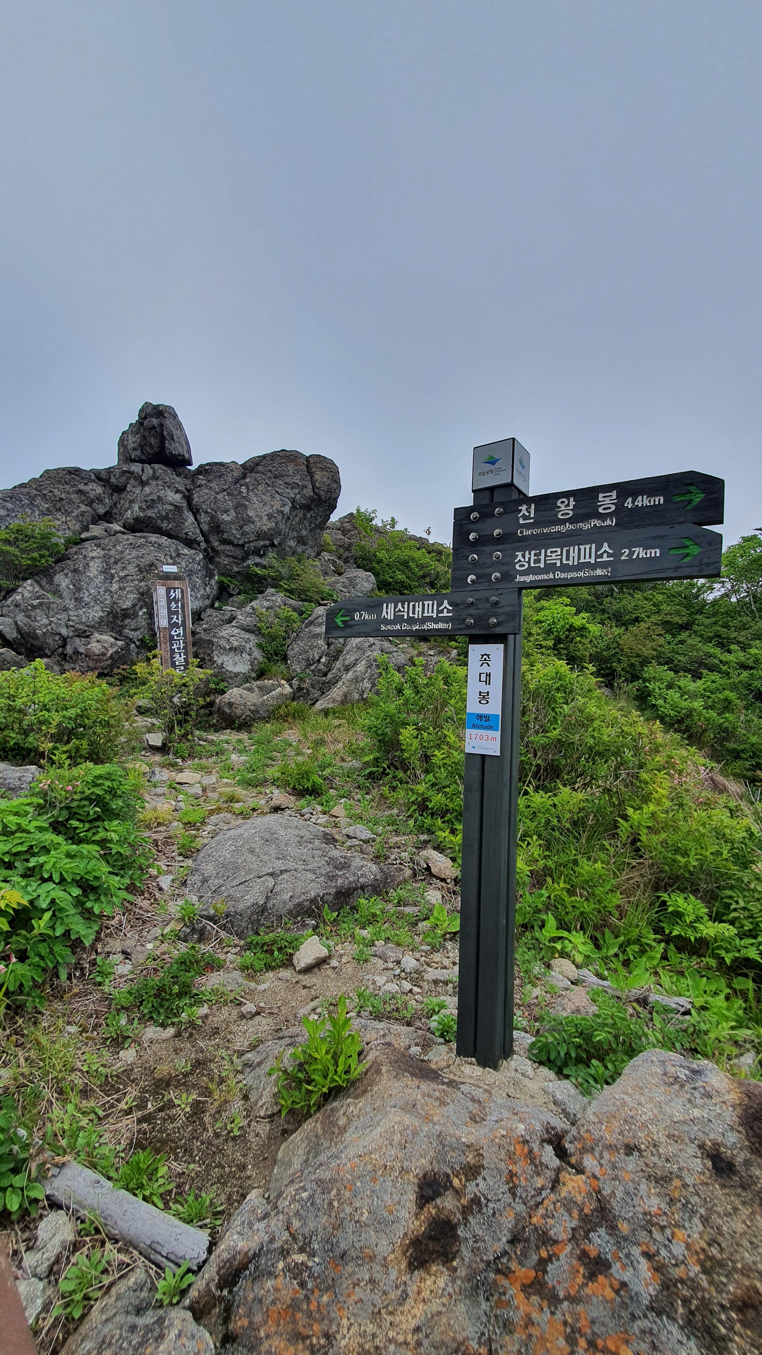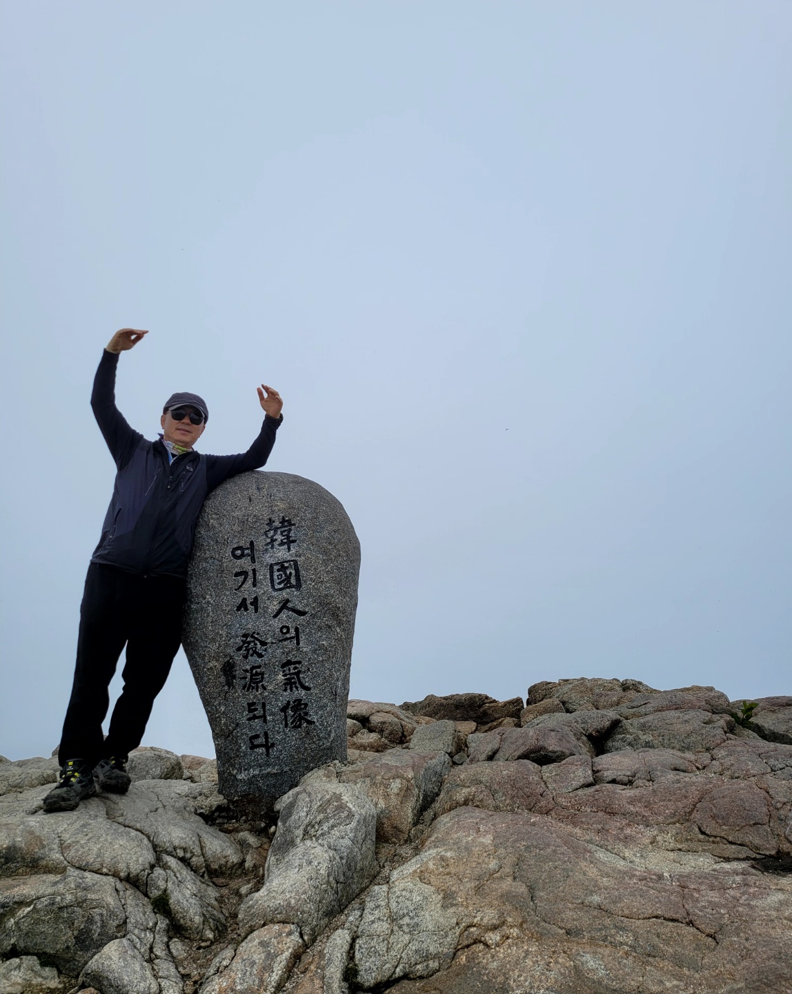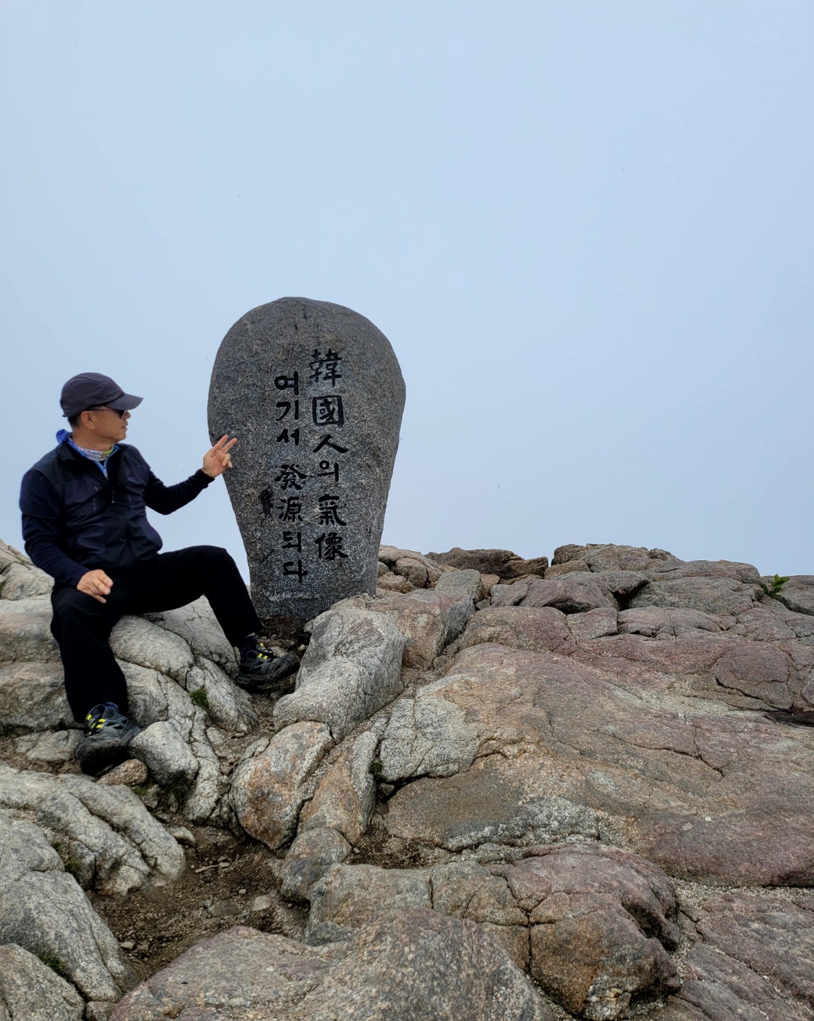 천왕봉 표지석에 “韓國人(한국인)의 氣像(기상) 여기서 發源(발원)되다 "라는 글이 새겨져 있다.