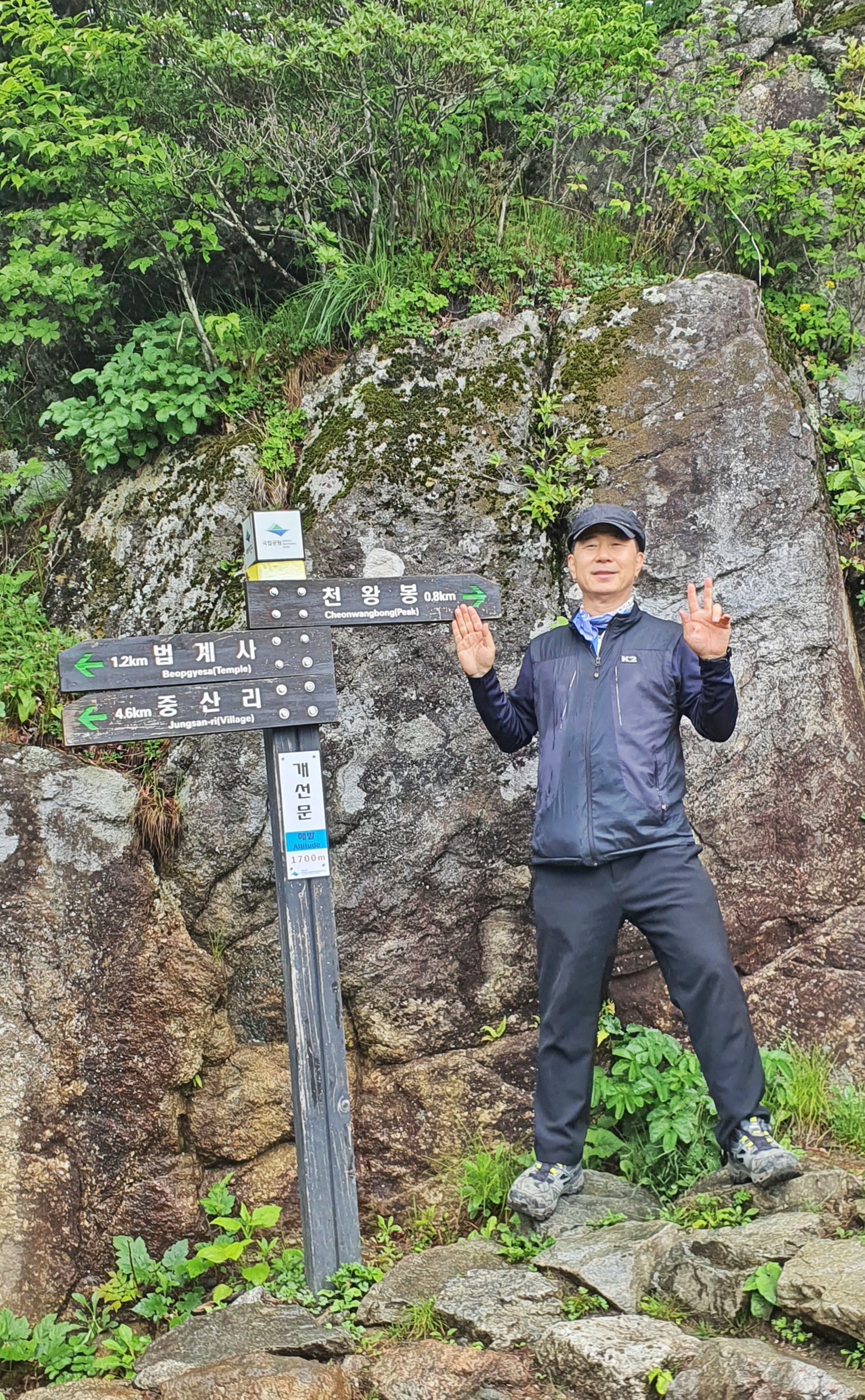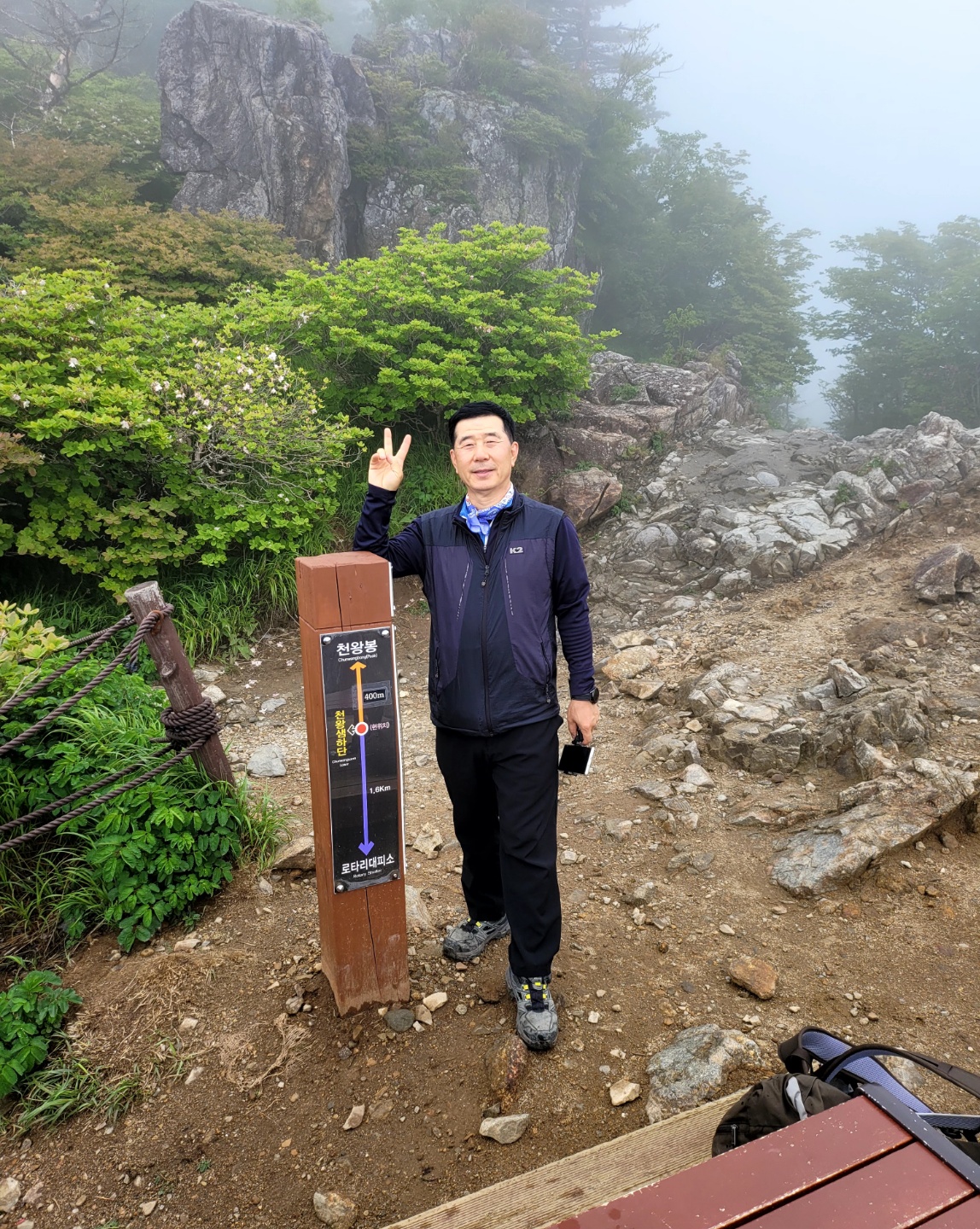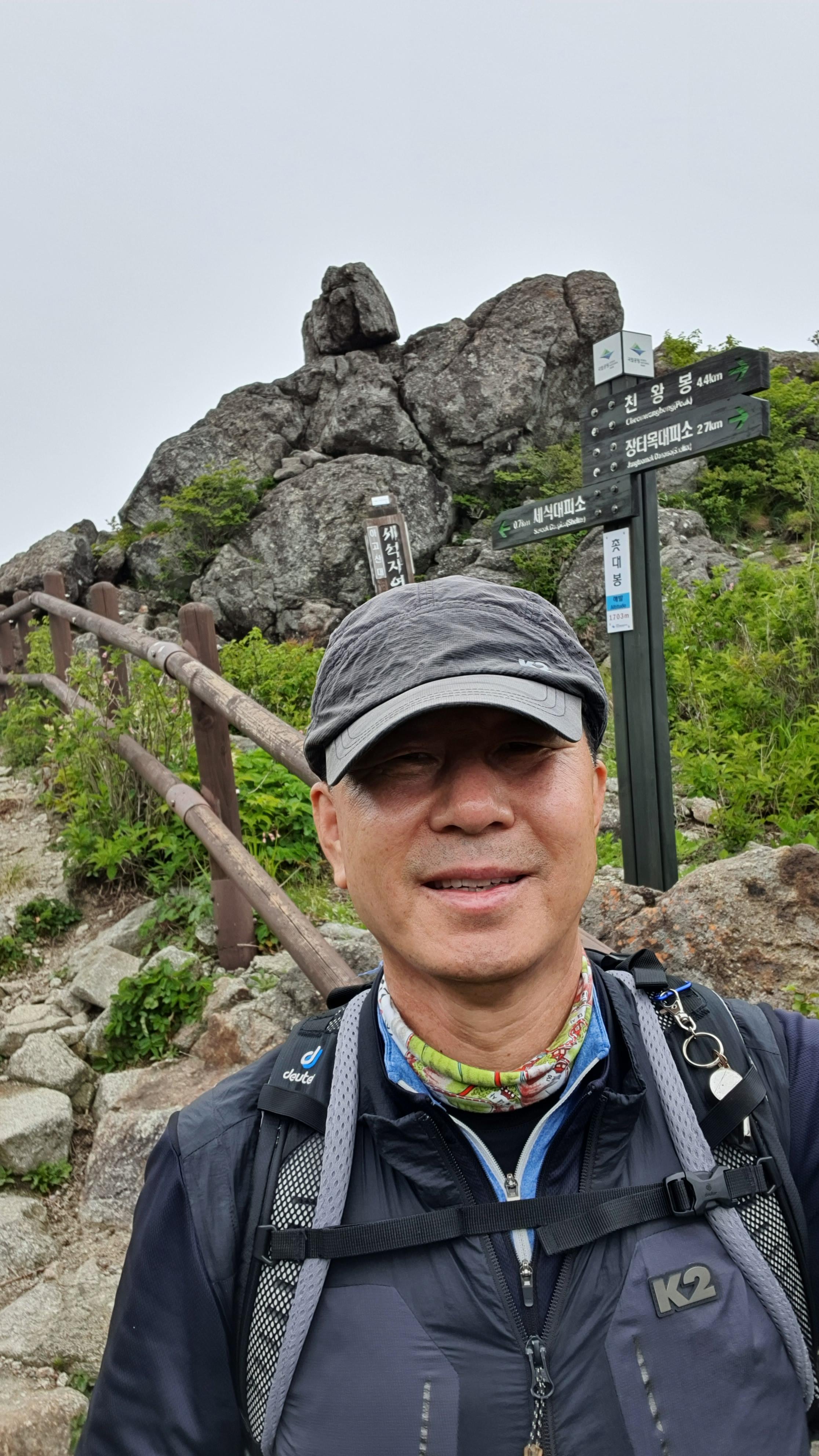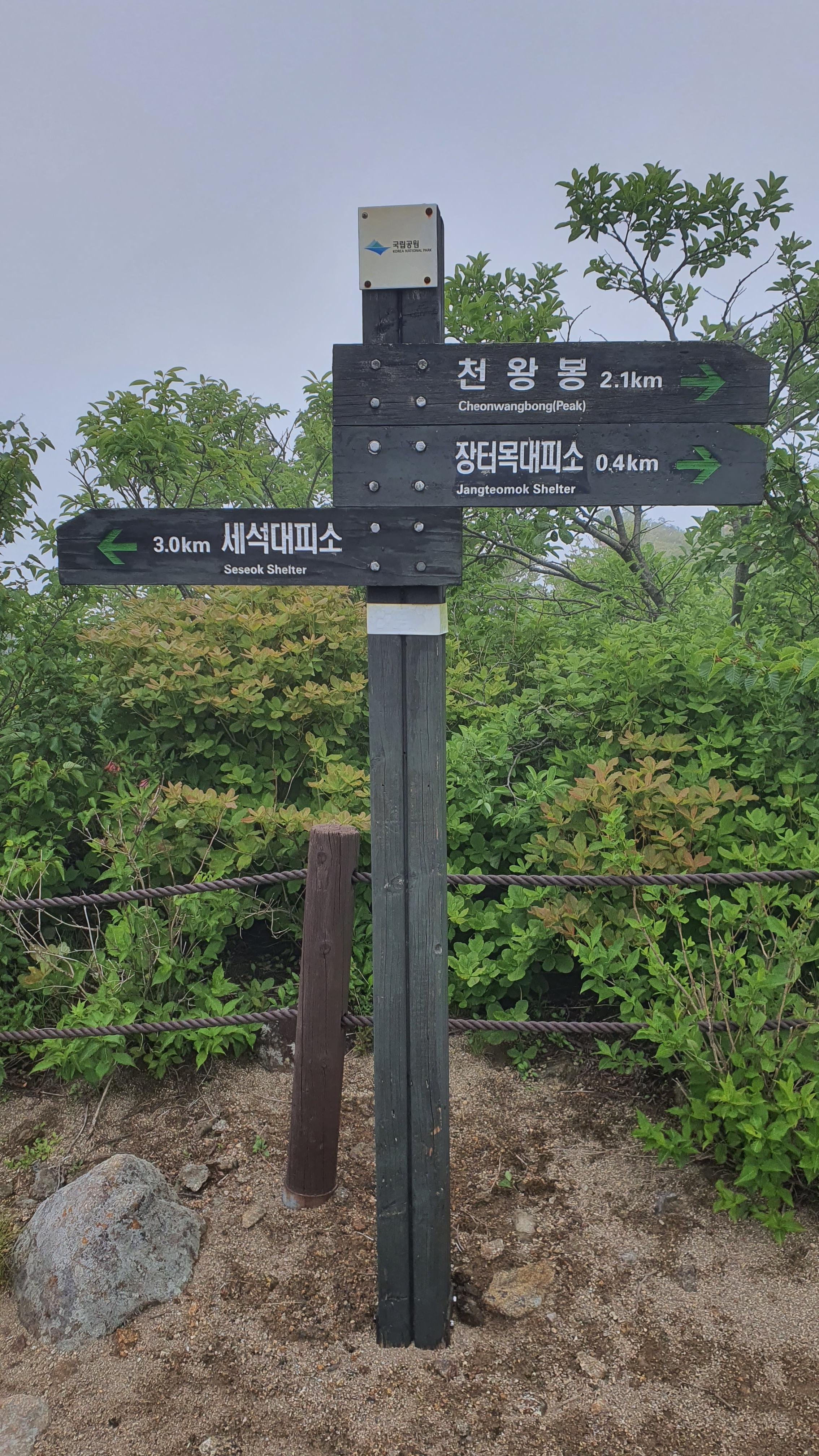 천왕봉 표지석에 “韓國人(한국인)의 氣像(기상) 여기서 發源(발원)되다 "라는 글이 새겨져 있다.