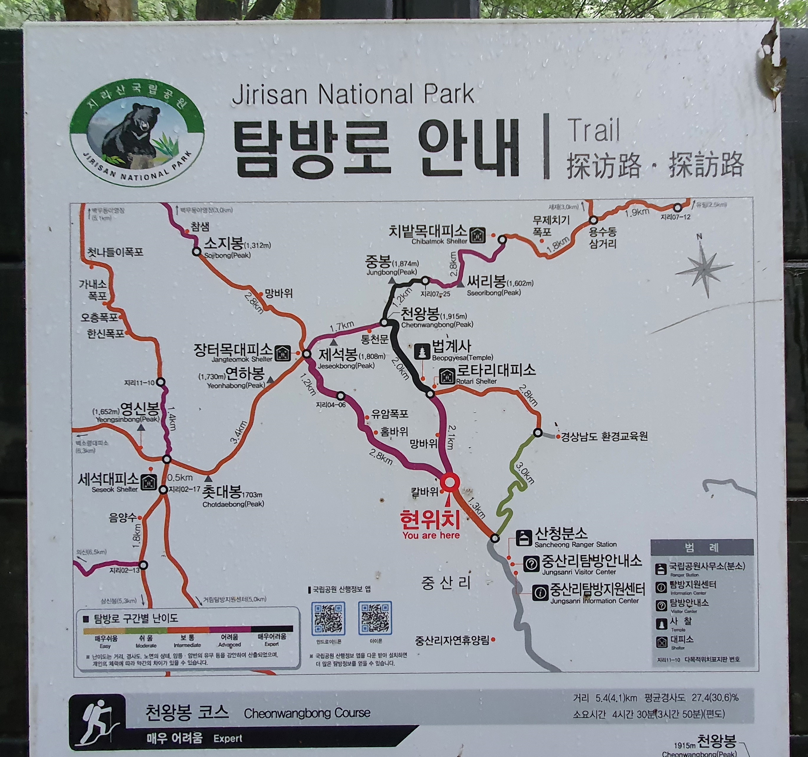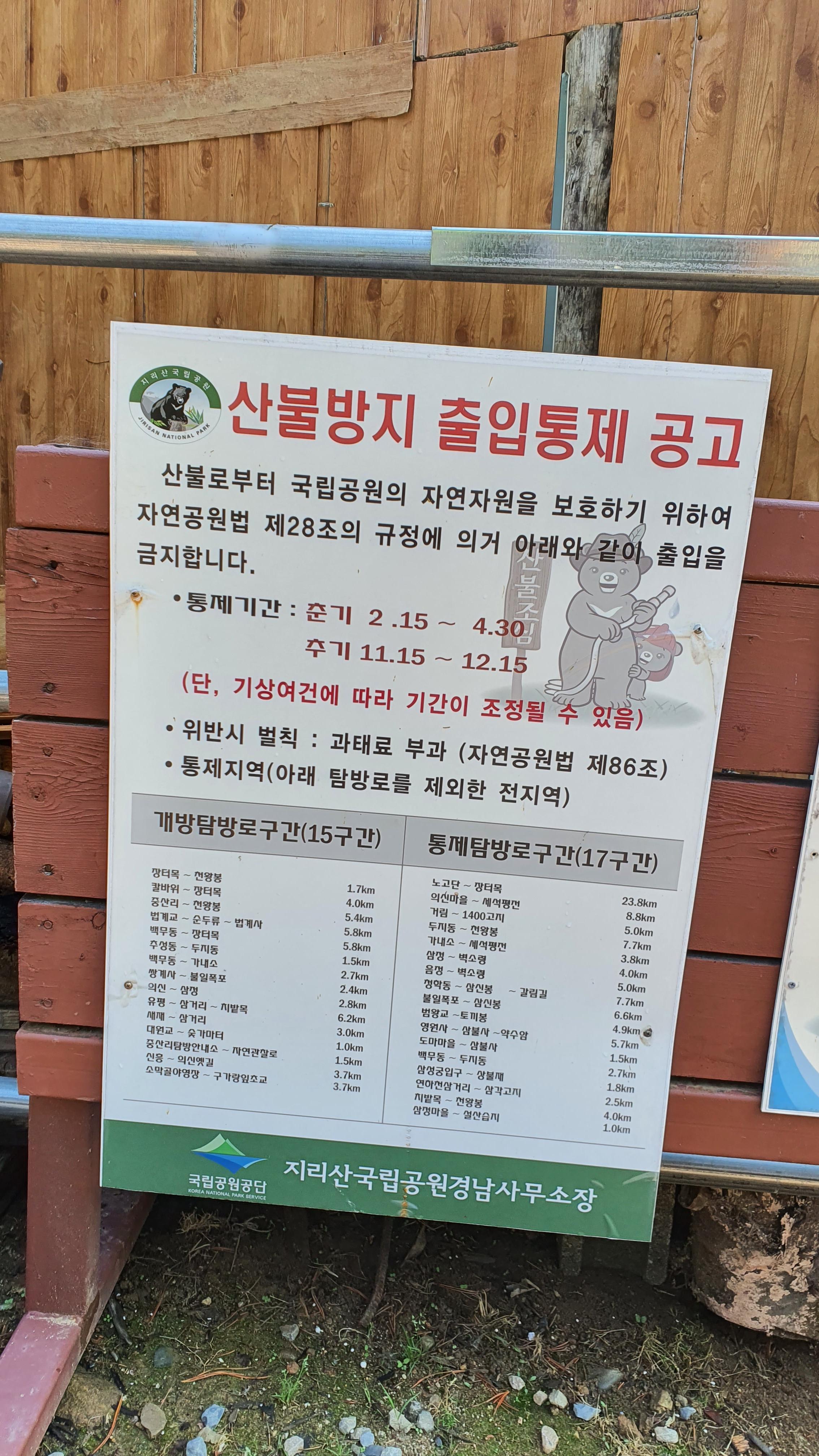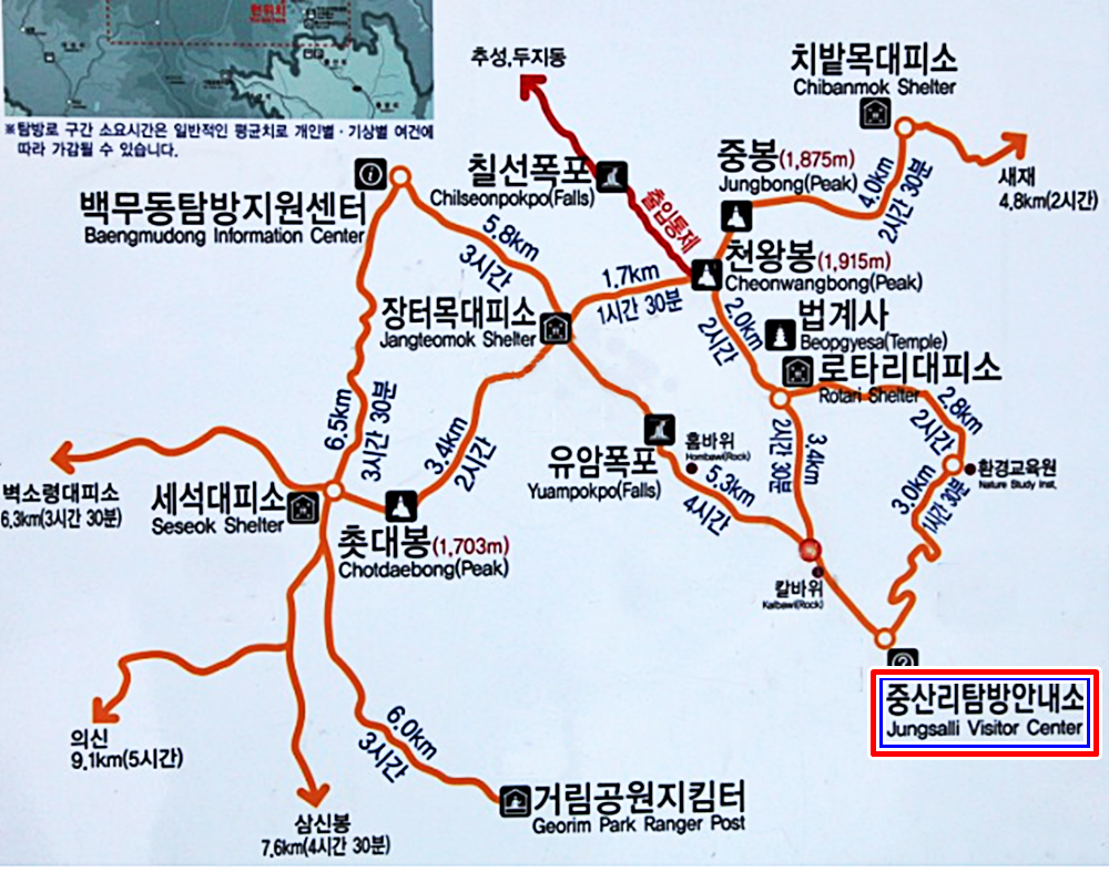 중산리 탐방안내소에서 환경교육원까지 버스(2천원) 이용하면 0.6km(30분) 단축됩니다.