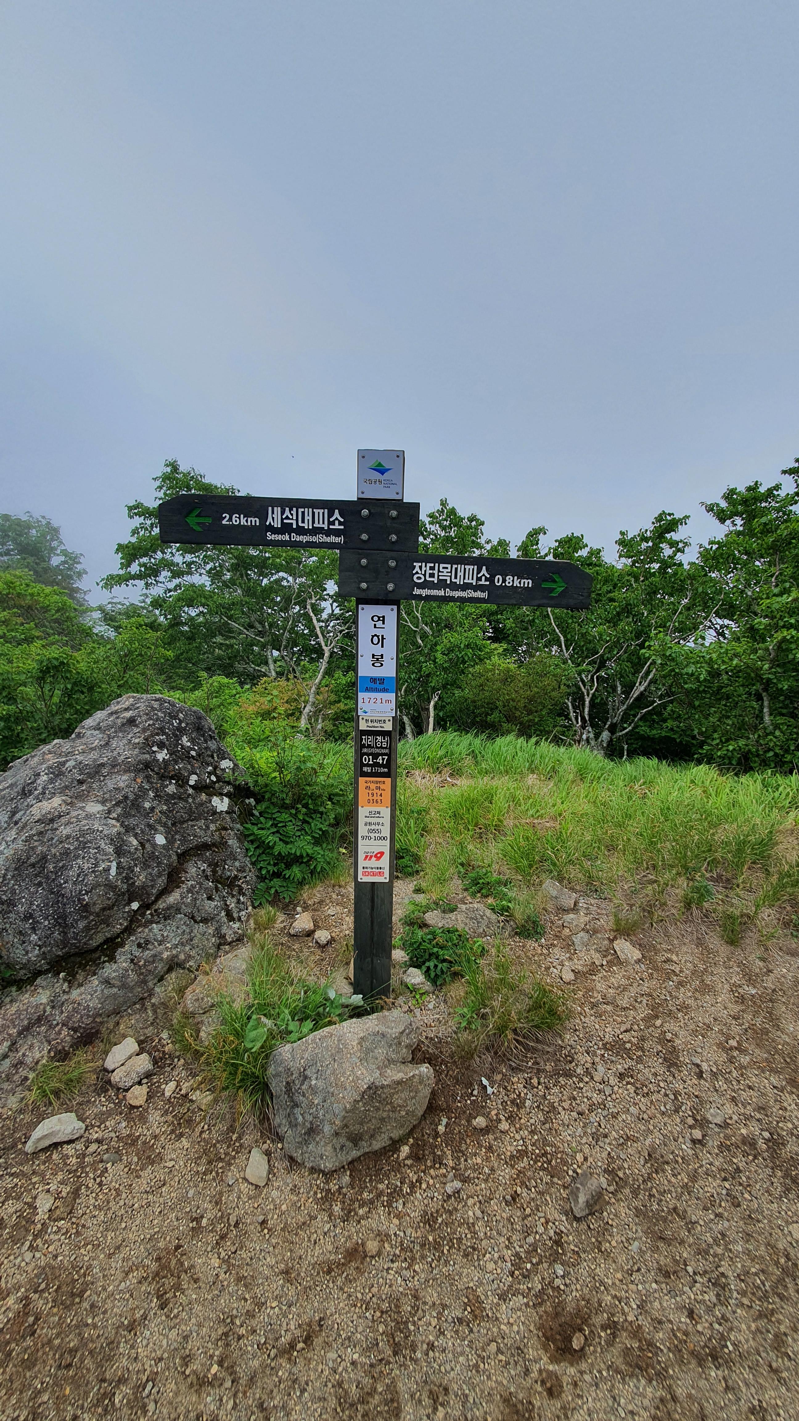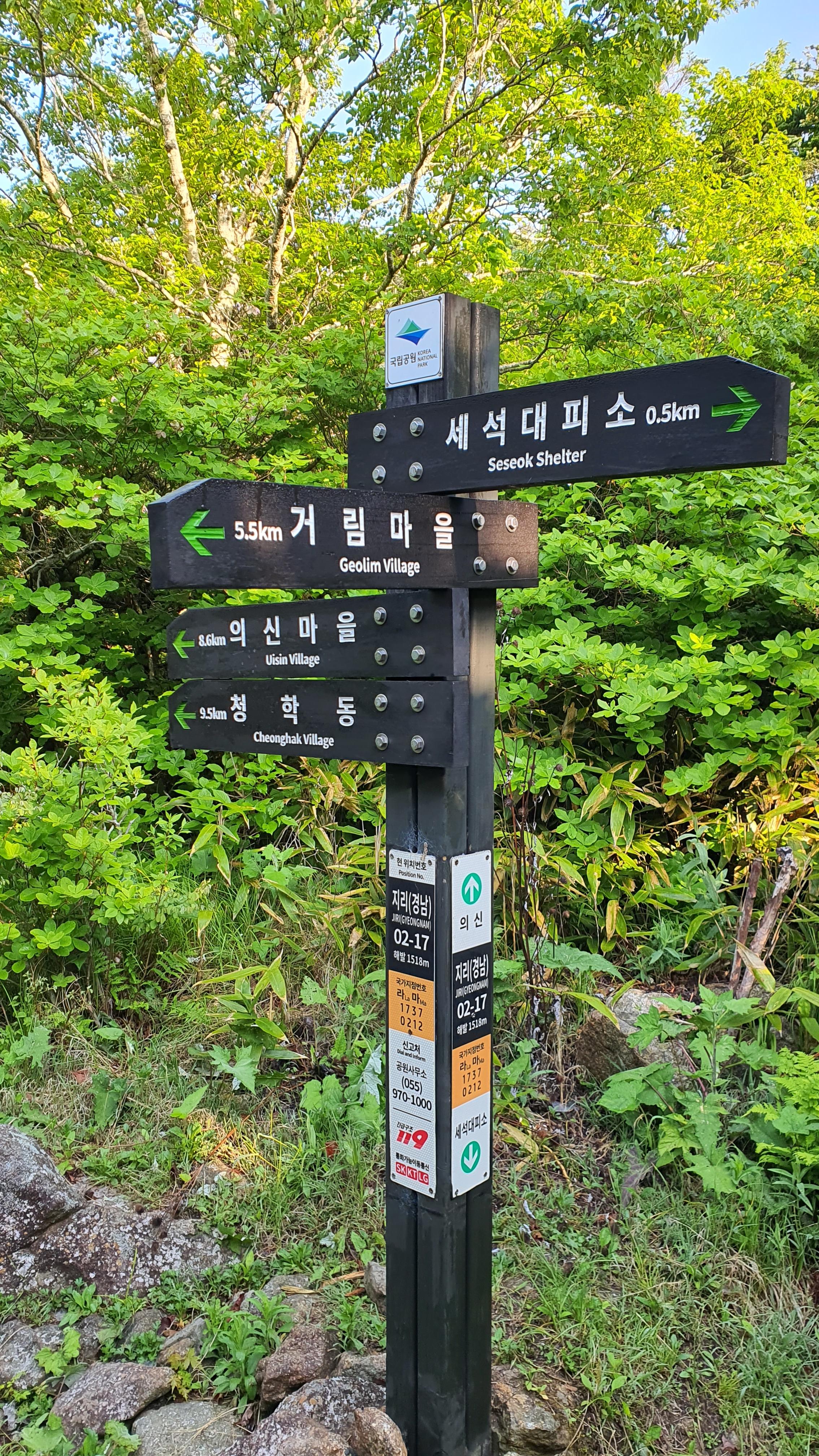 익일 06:30 출발 / 갈림길 이정표(좌측 :거림마을 / 우측 의신마을 청학동 방면)