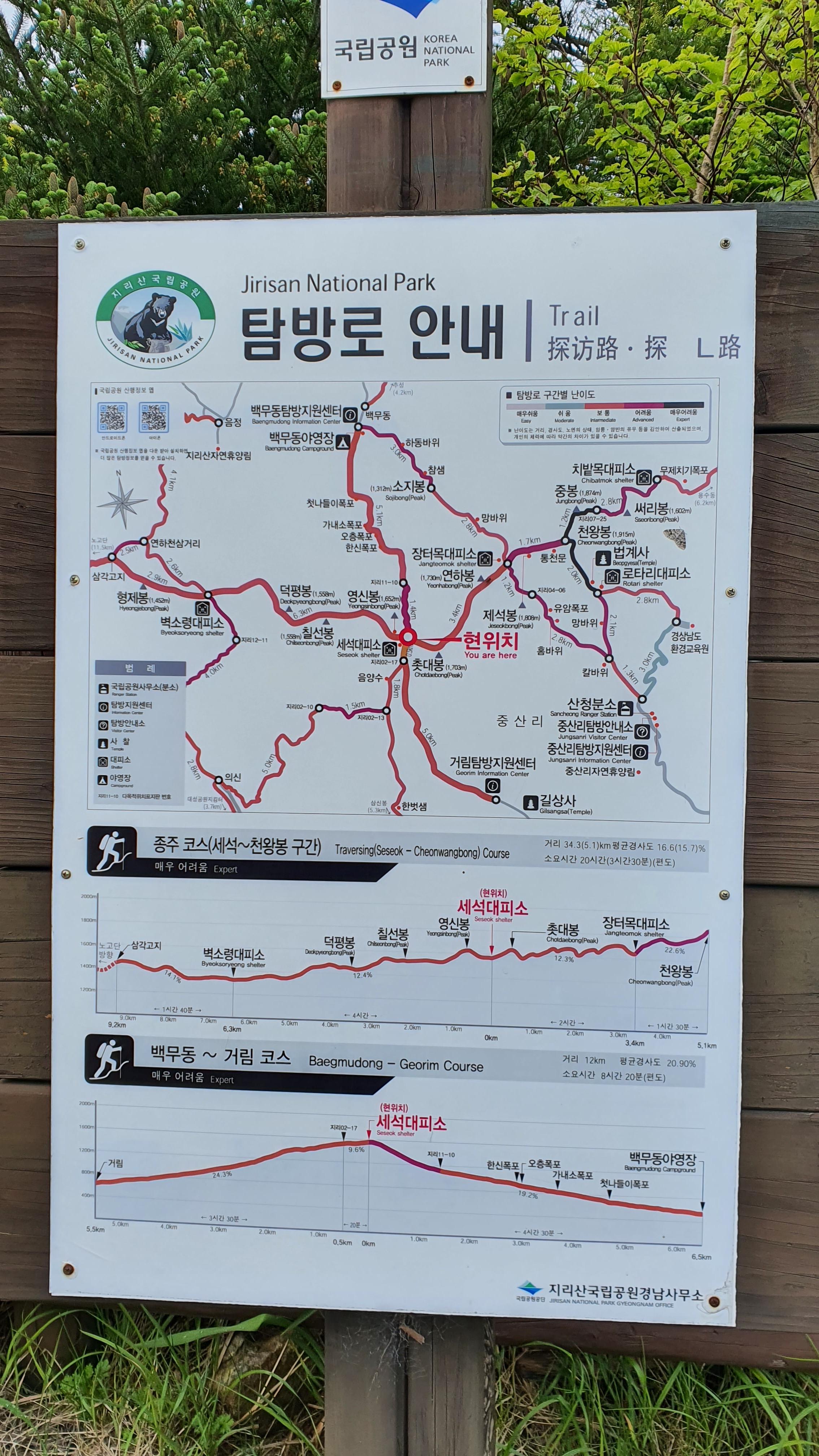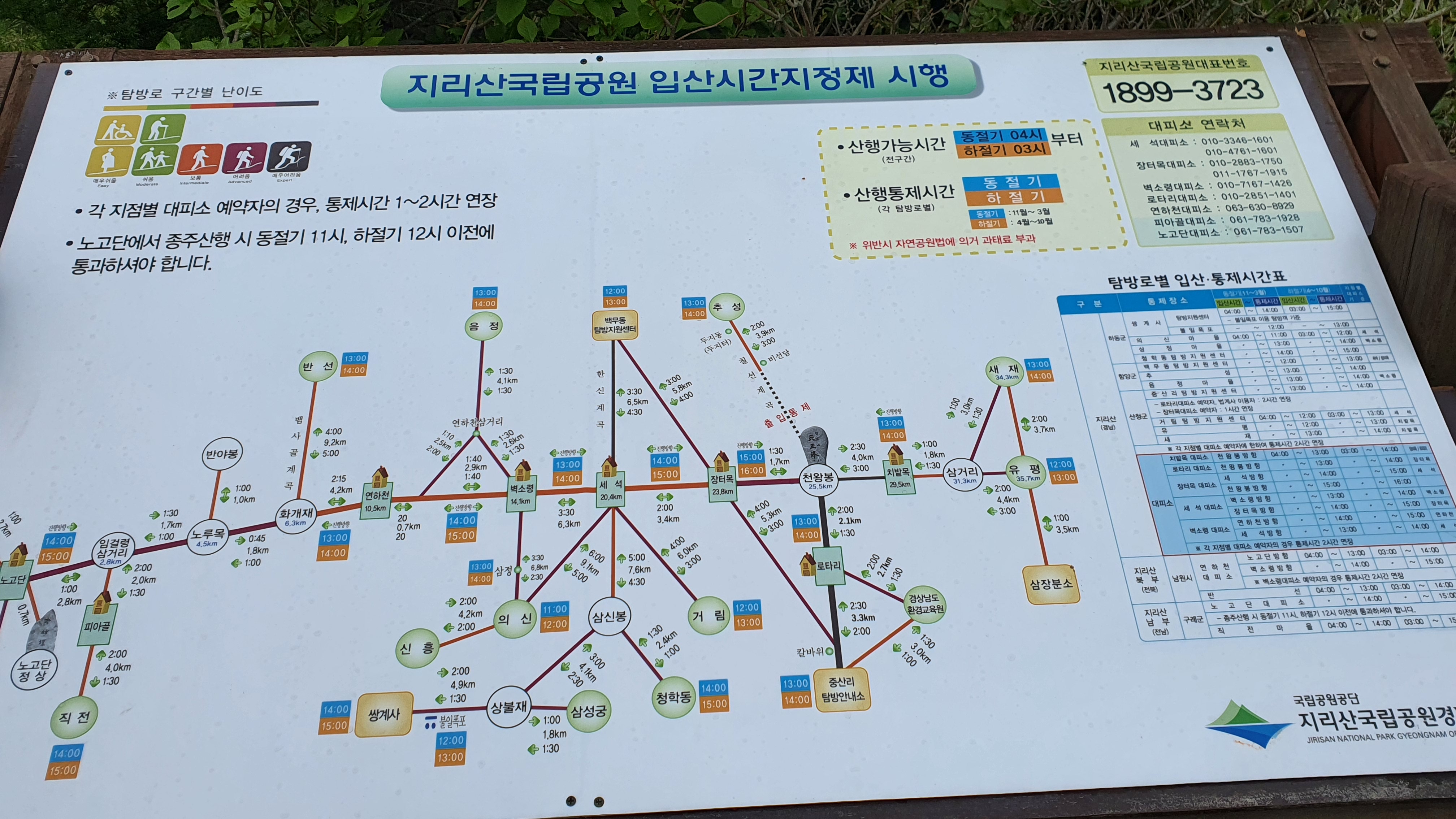 09:30 거림마을 탐방지원센터 (세석대피소 → 거림마을 6km)