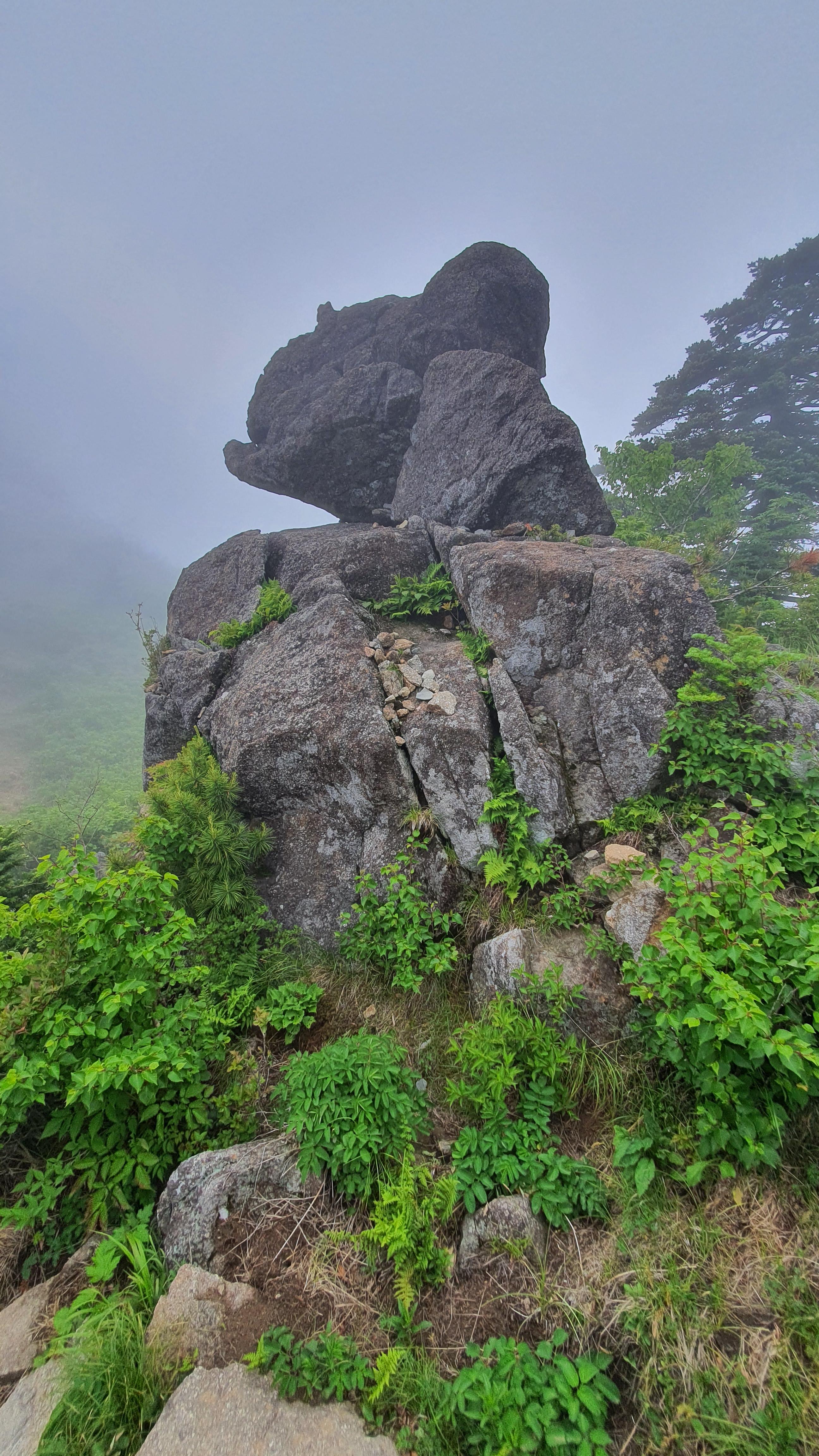 바위로 이루어진 정상은 항상 구름에 싸여 있어 예로부터 3대에 걸쳐 선행을 쌓아야 이곳에서 해돋이를 볼 수 있다고 전해온다.