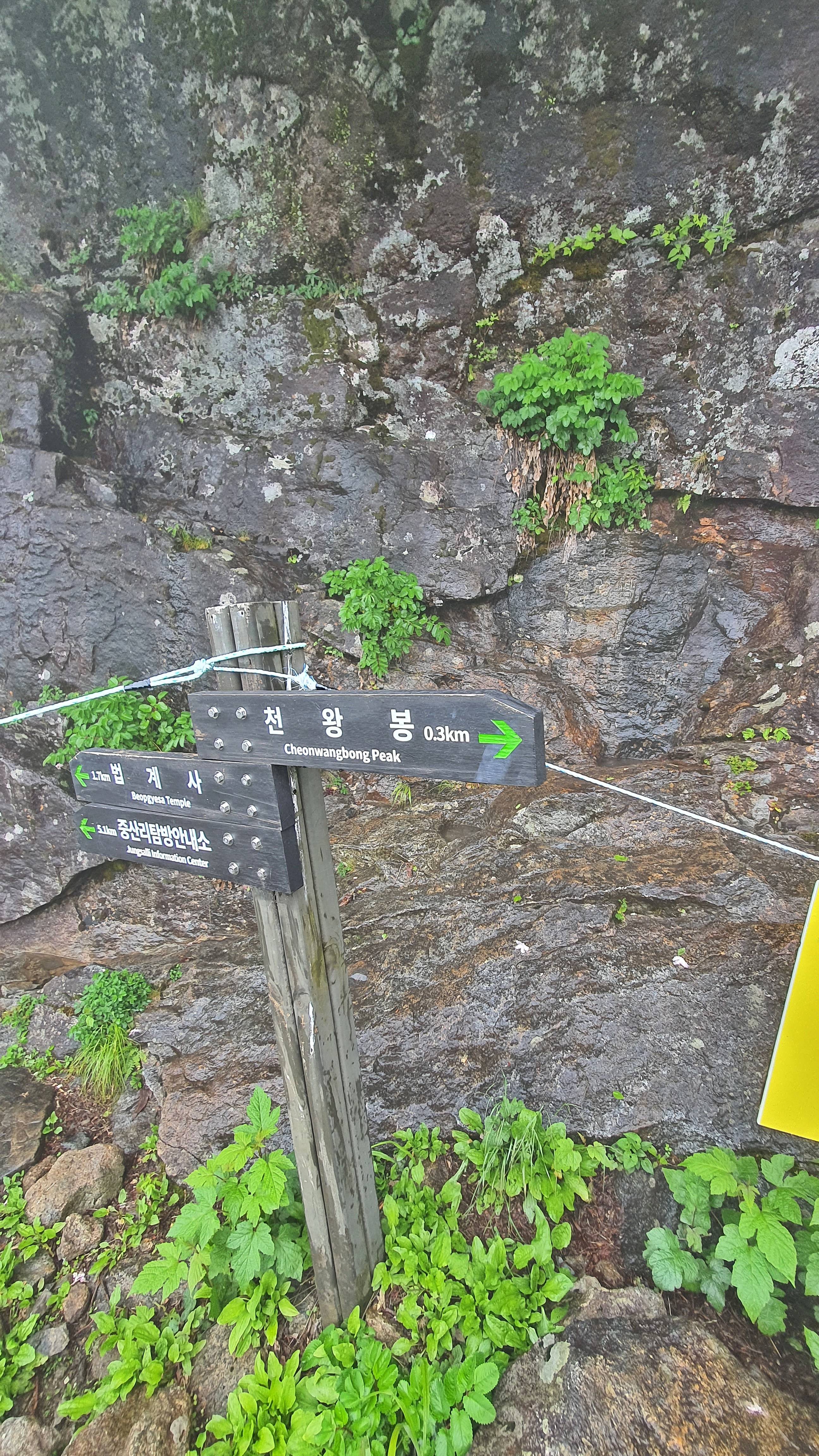 천왕봉 서쪽 암벽에는 하늘을 받치는 기둥이라는 의미의 天柱(천주)라는 음각 글자가 있다.