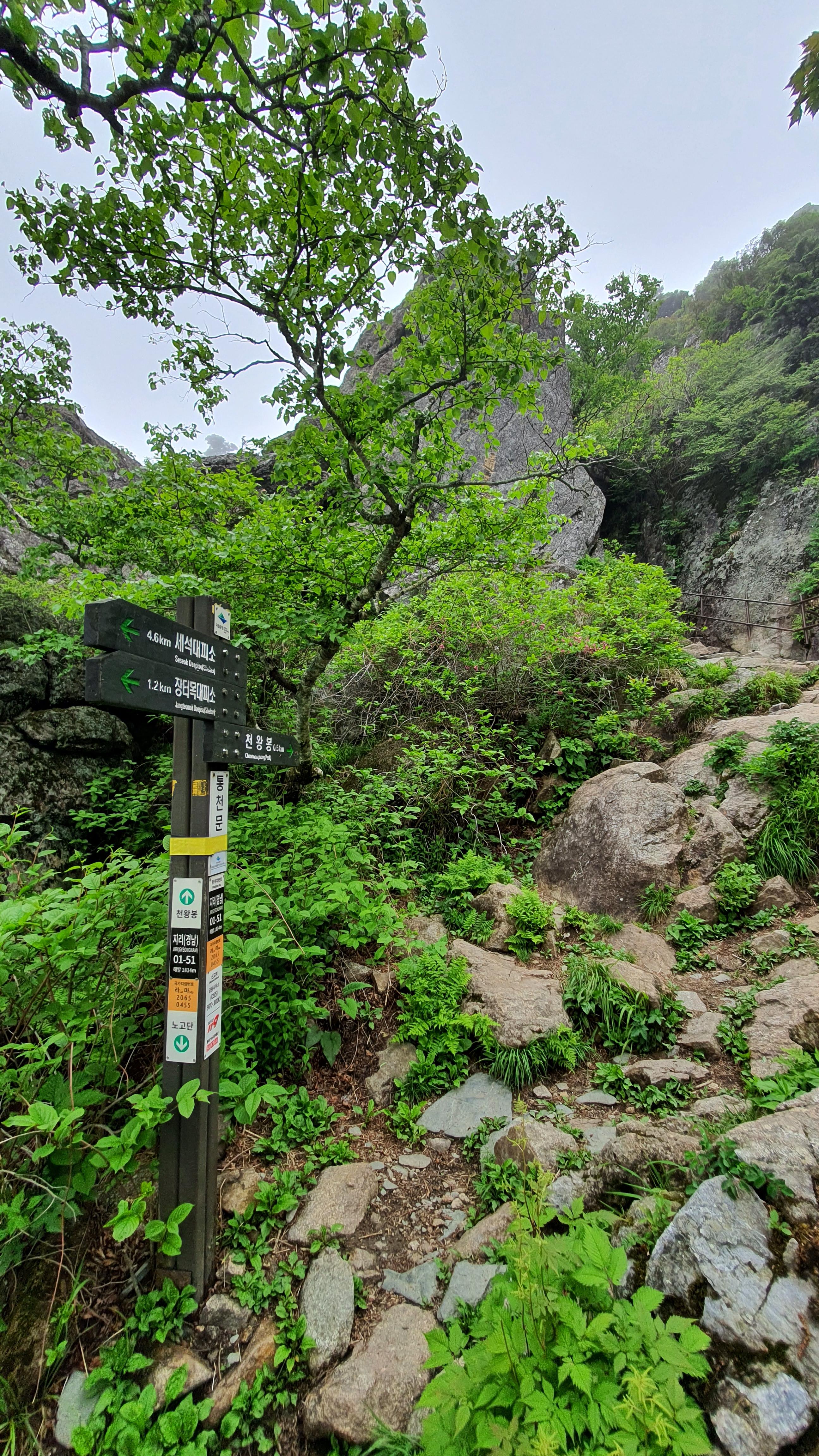 중산리 - 칼바위 - 로타리대피소 - 천왕봉(5.4km 5시간내지 6시간) ~ 세석대피소(5시간) ~ 거림마을(3시간)
