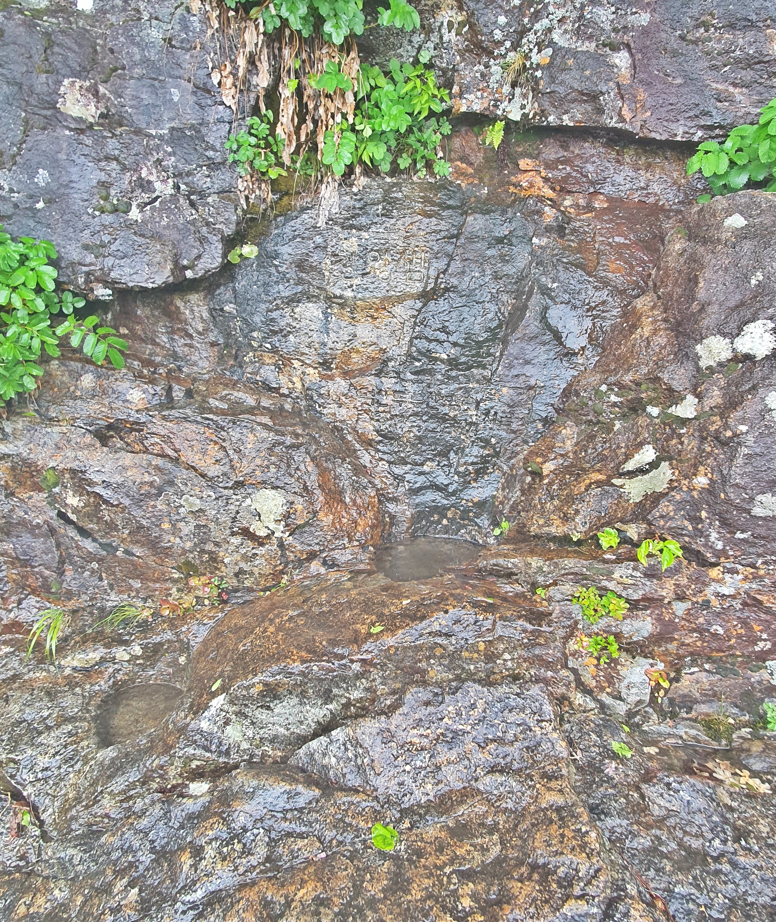 바위에 "천왕샘" 이라고 음각되어 있다.