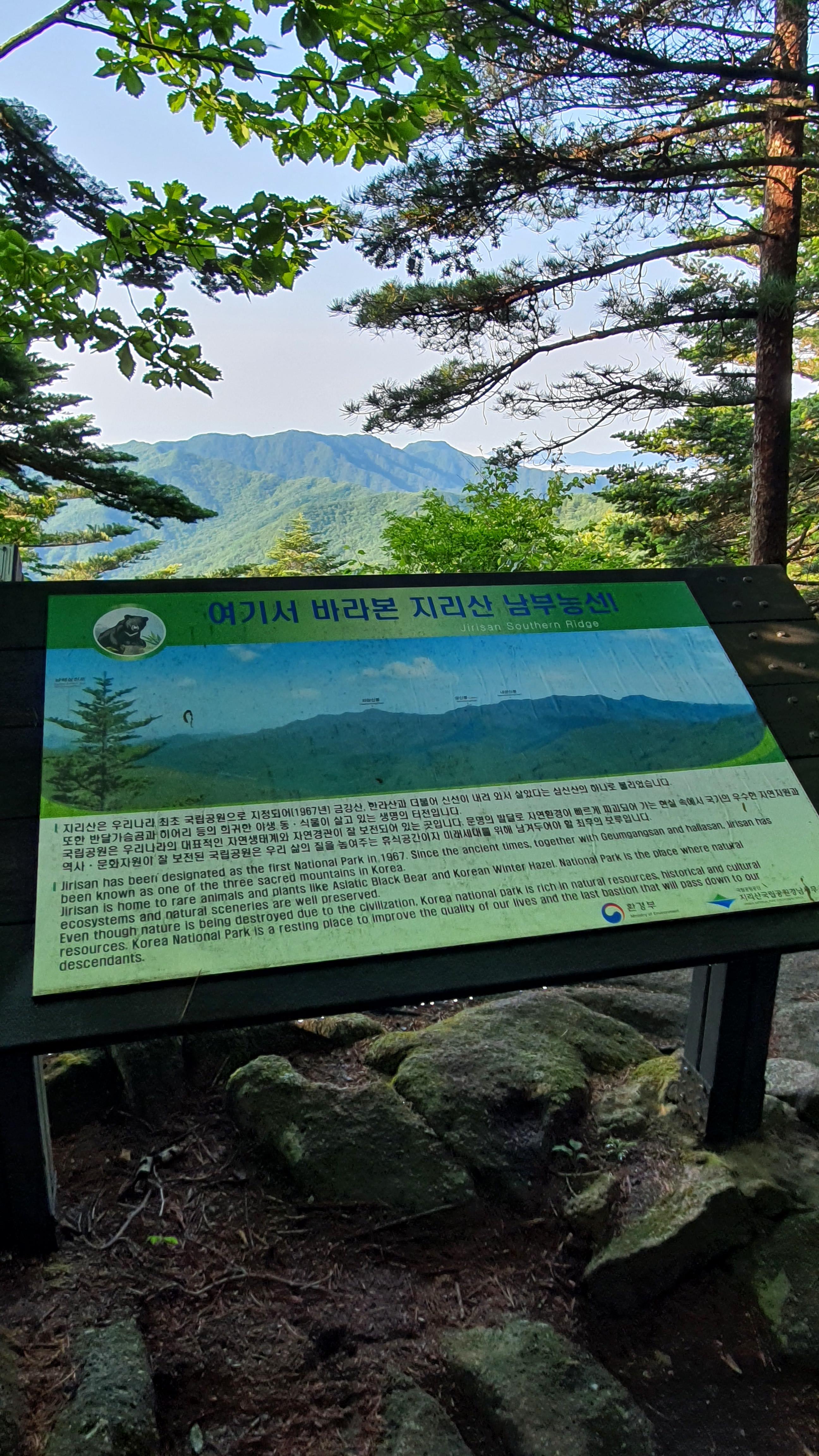 지리산은 경남, 전북, 전남도에 걸쳐 있는 높이 1,915m의 산으로 우리나라 최초의 국립공원이다.