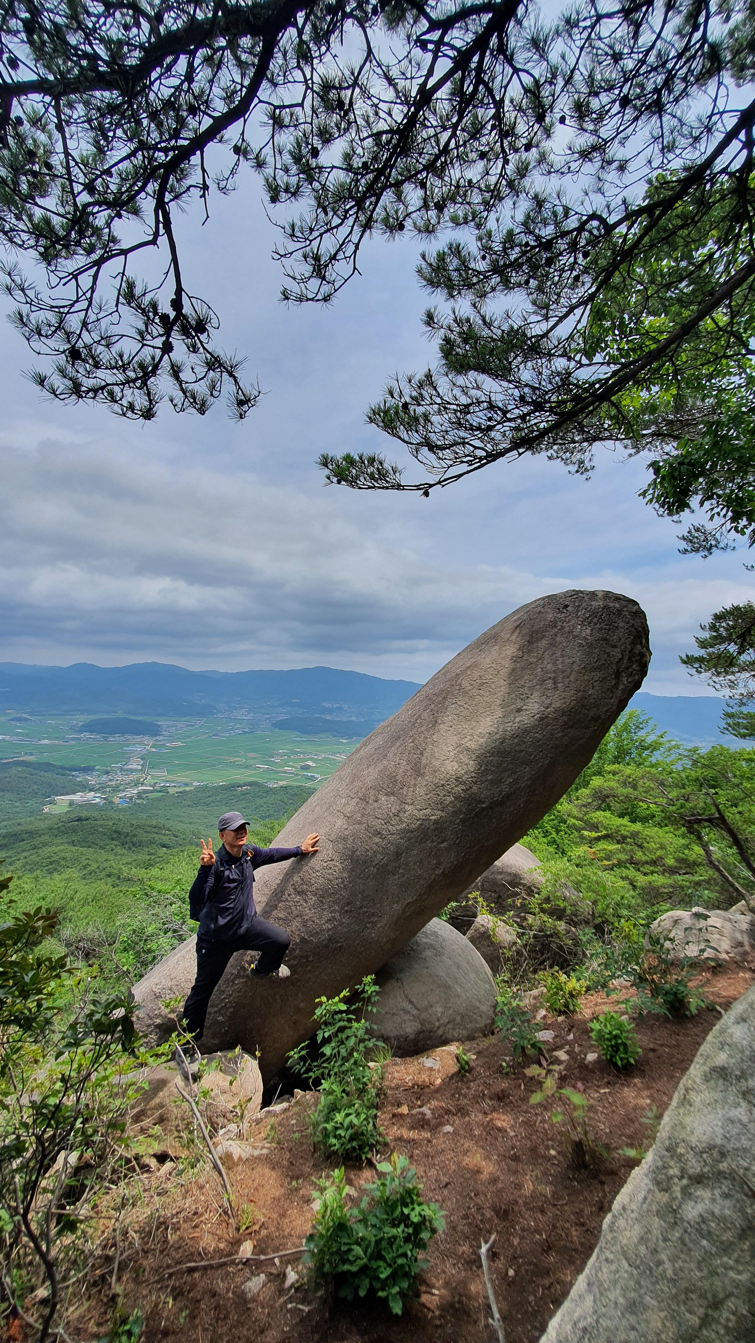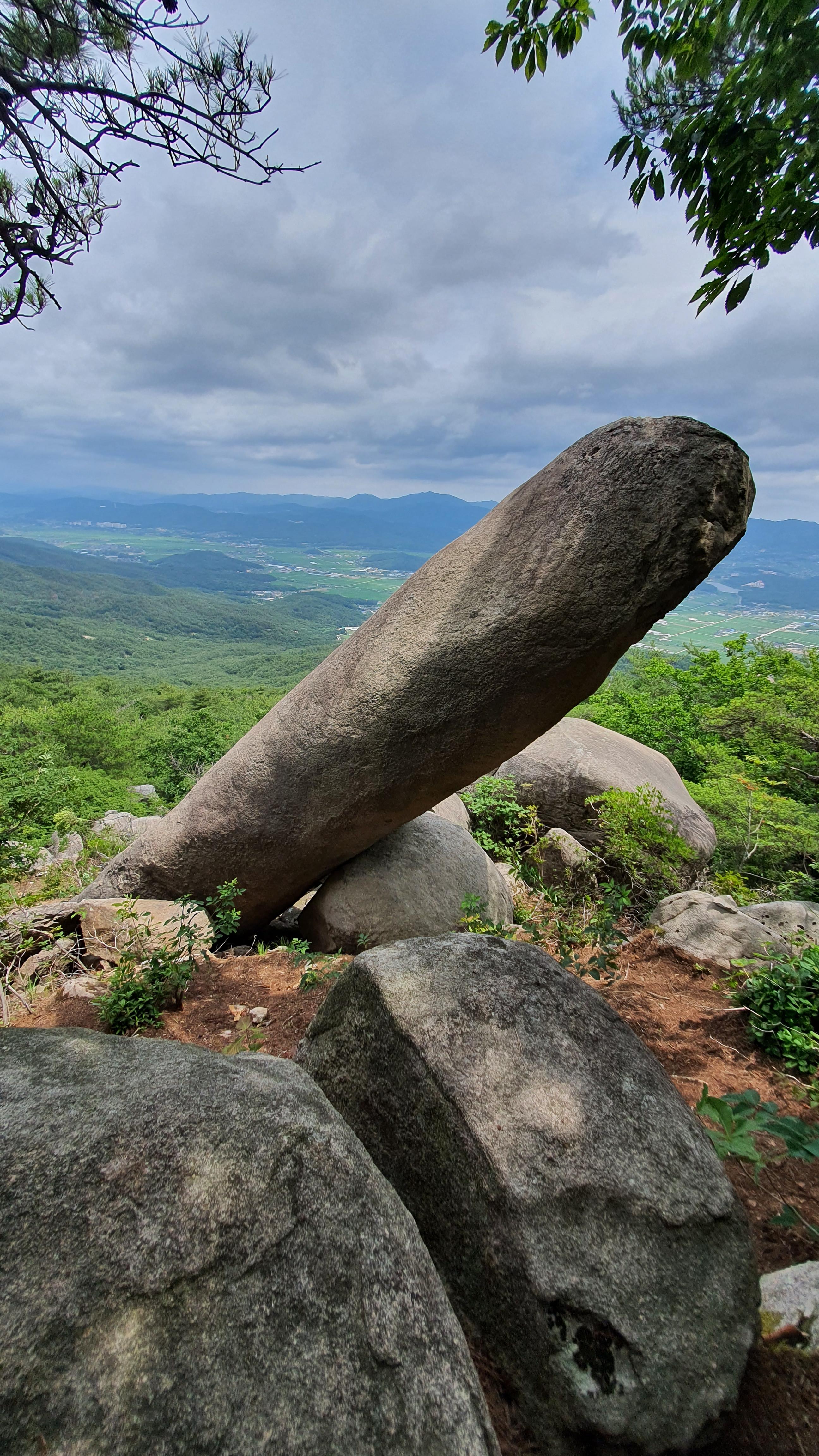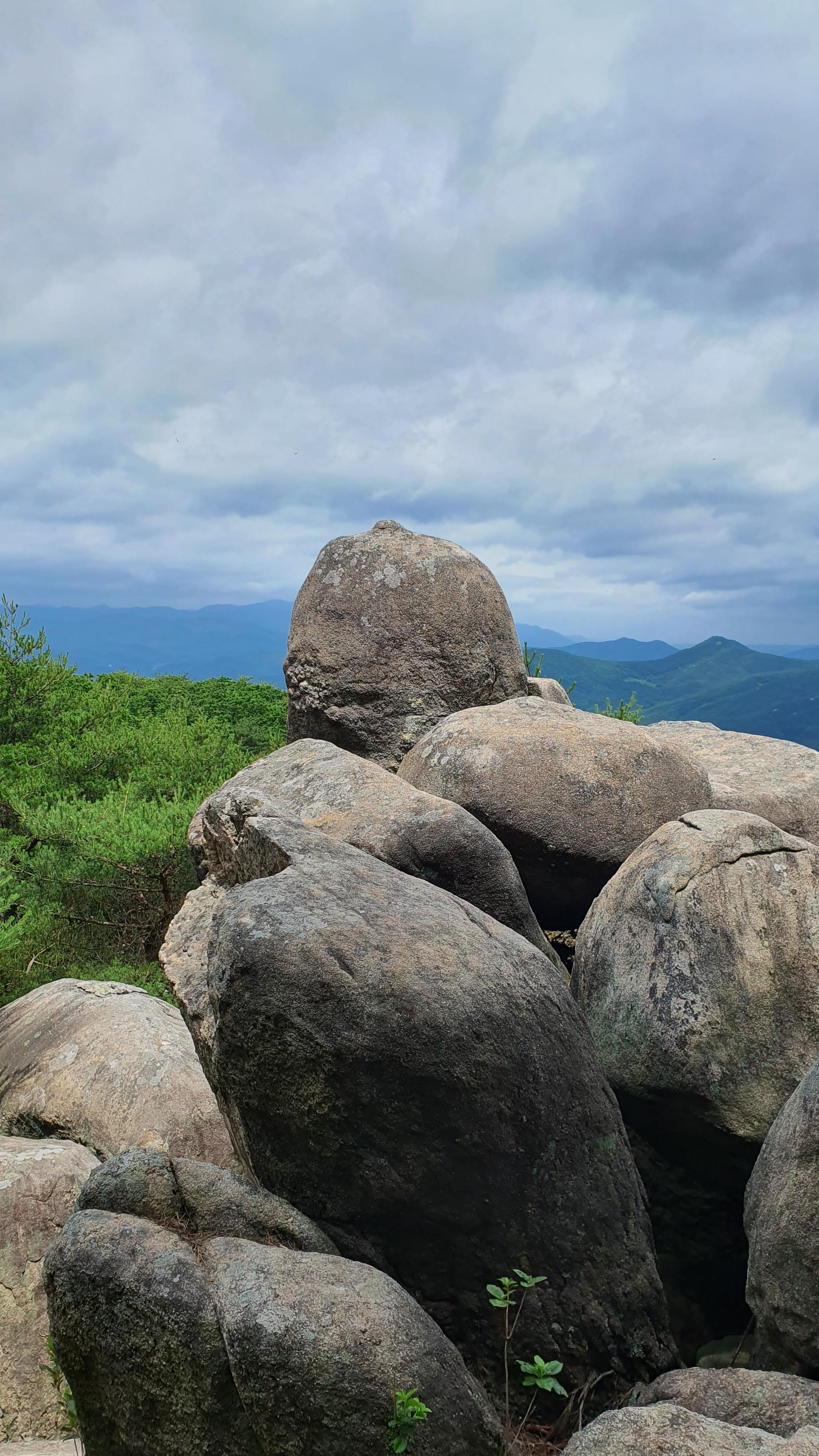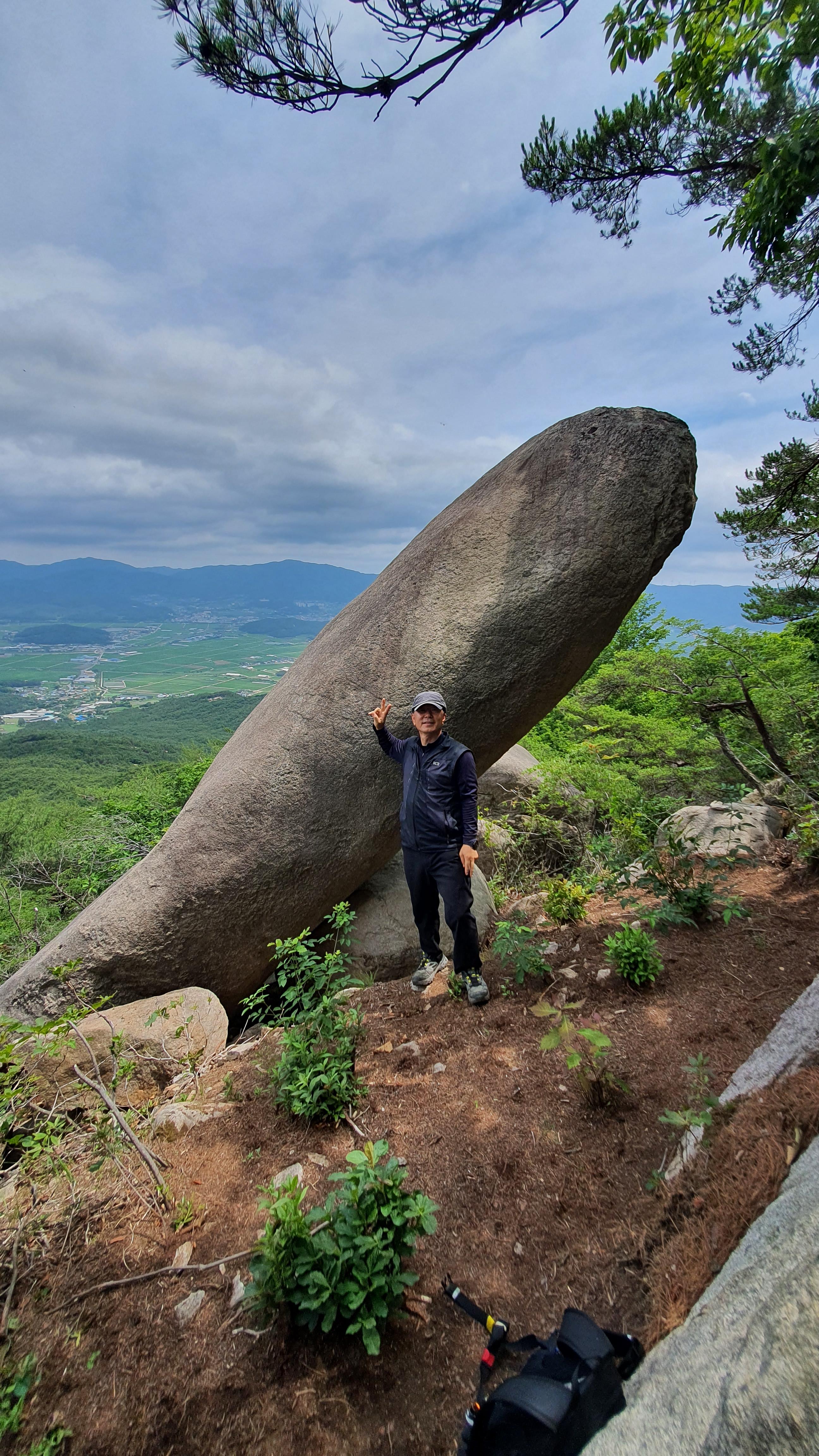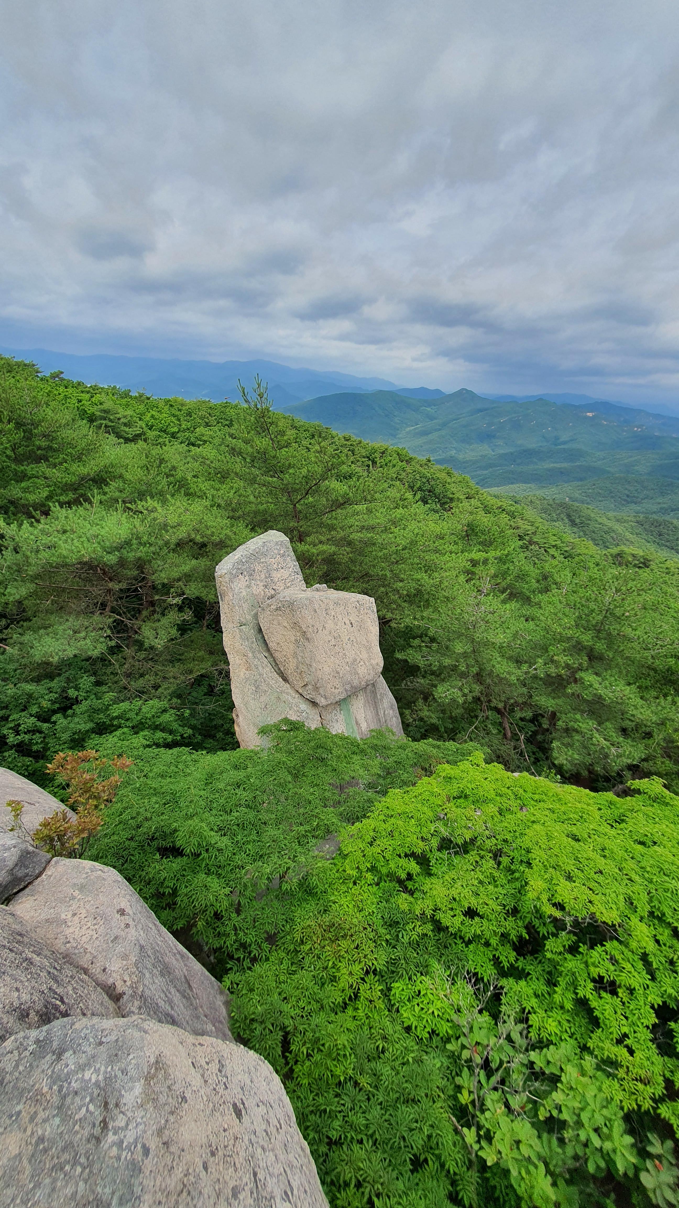 정상에서 동쪽으로 100m 내려가 맷돌바위 도착전에 유두바위 대포바위를 먼저 보고 맷돌바위로 가면된다.