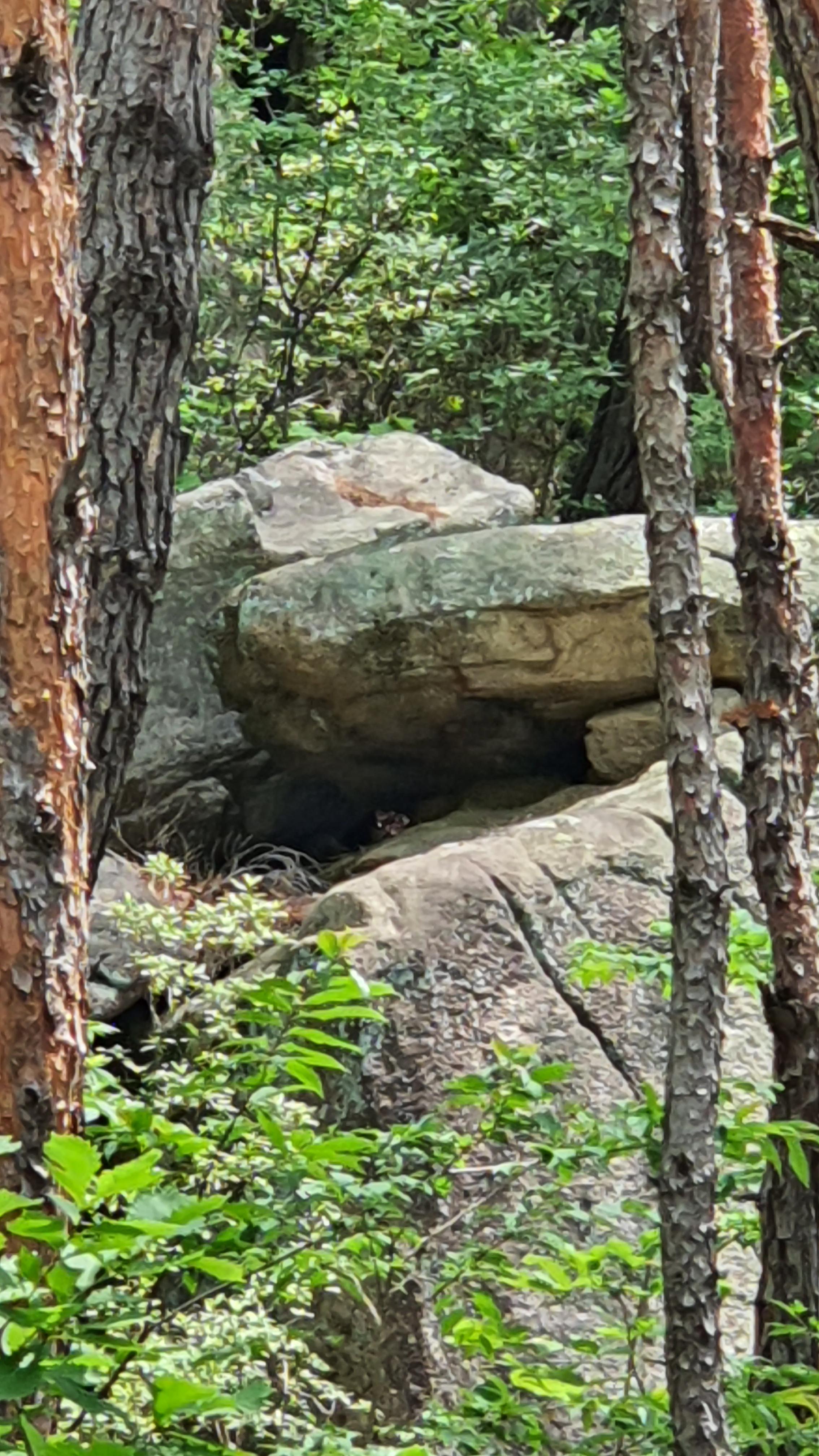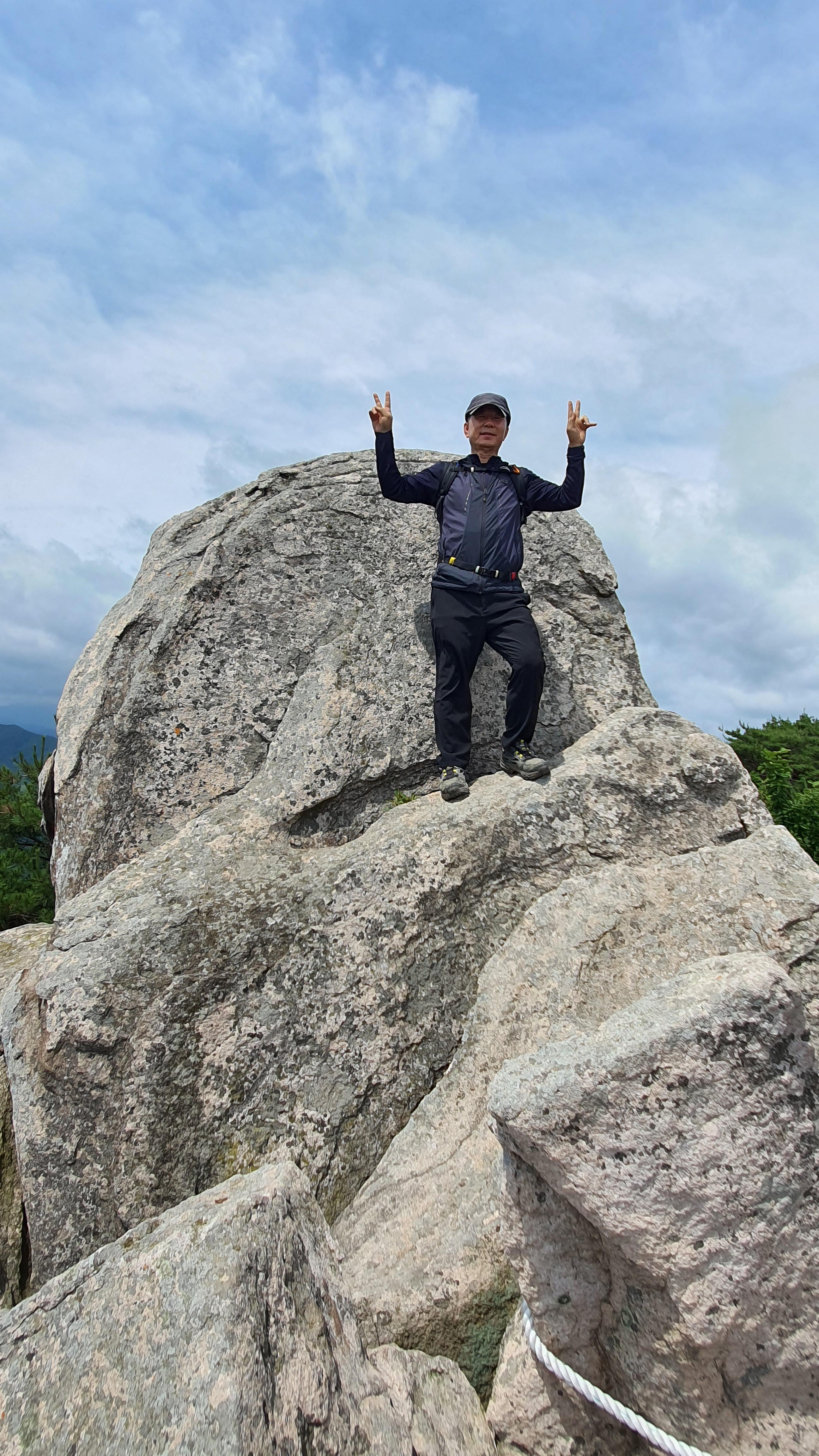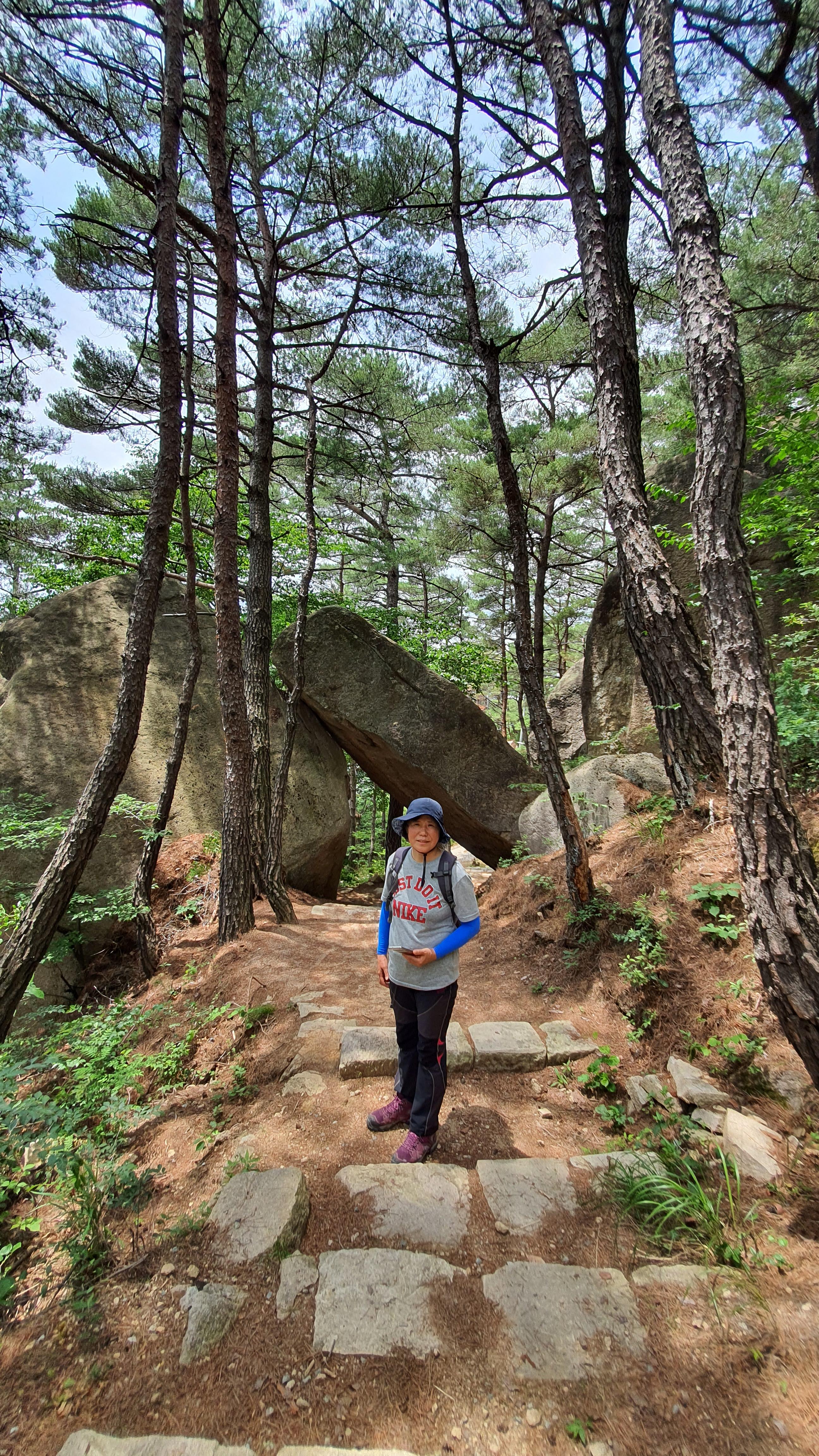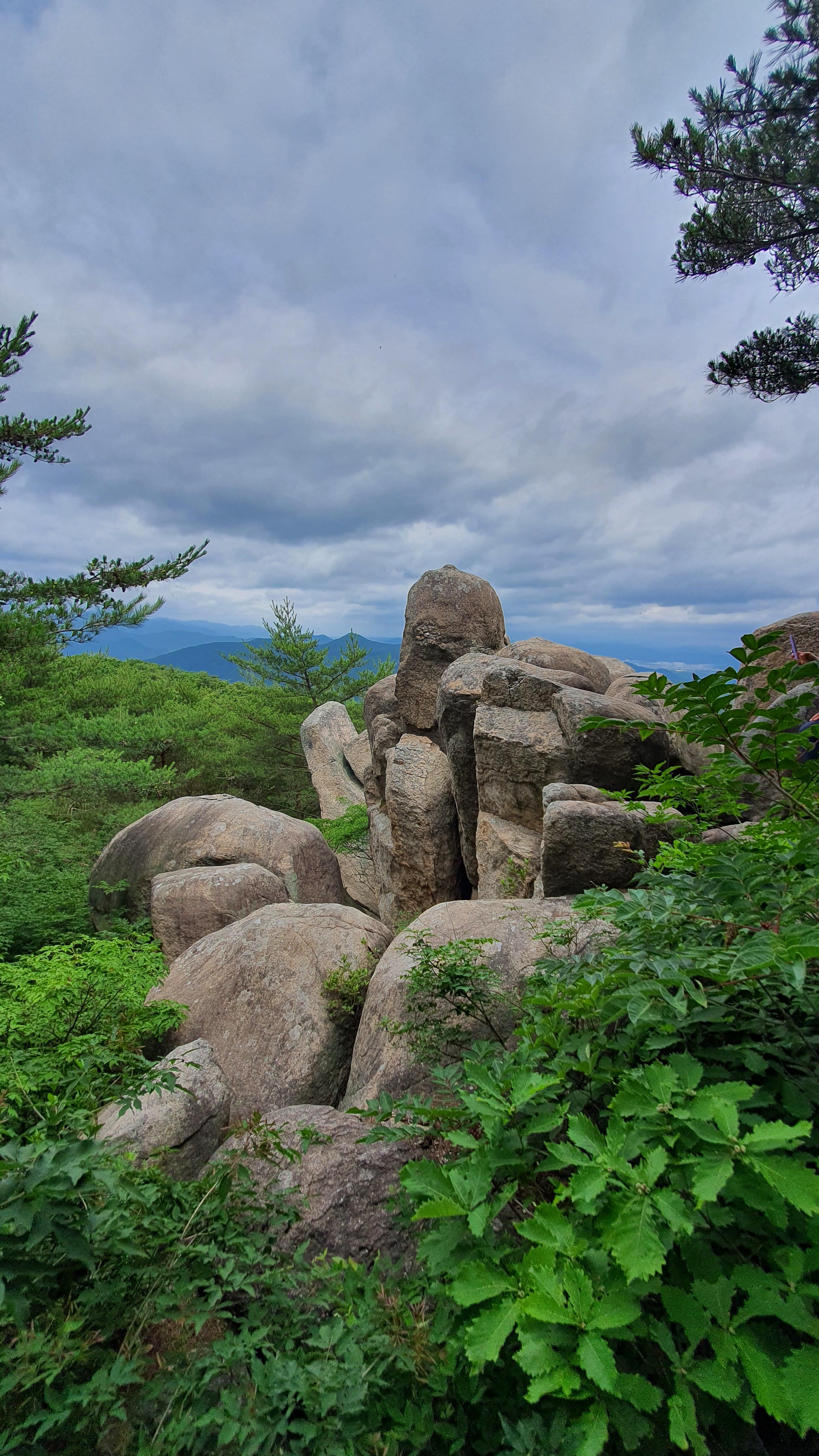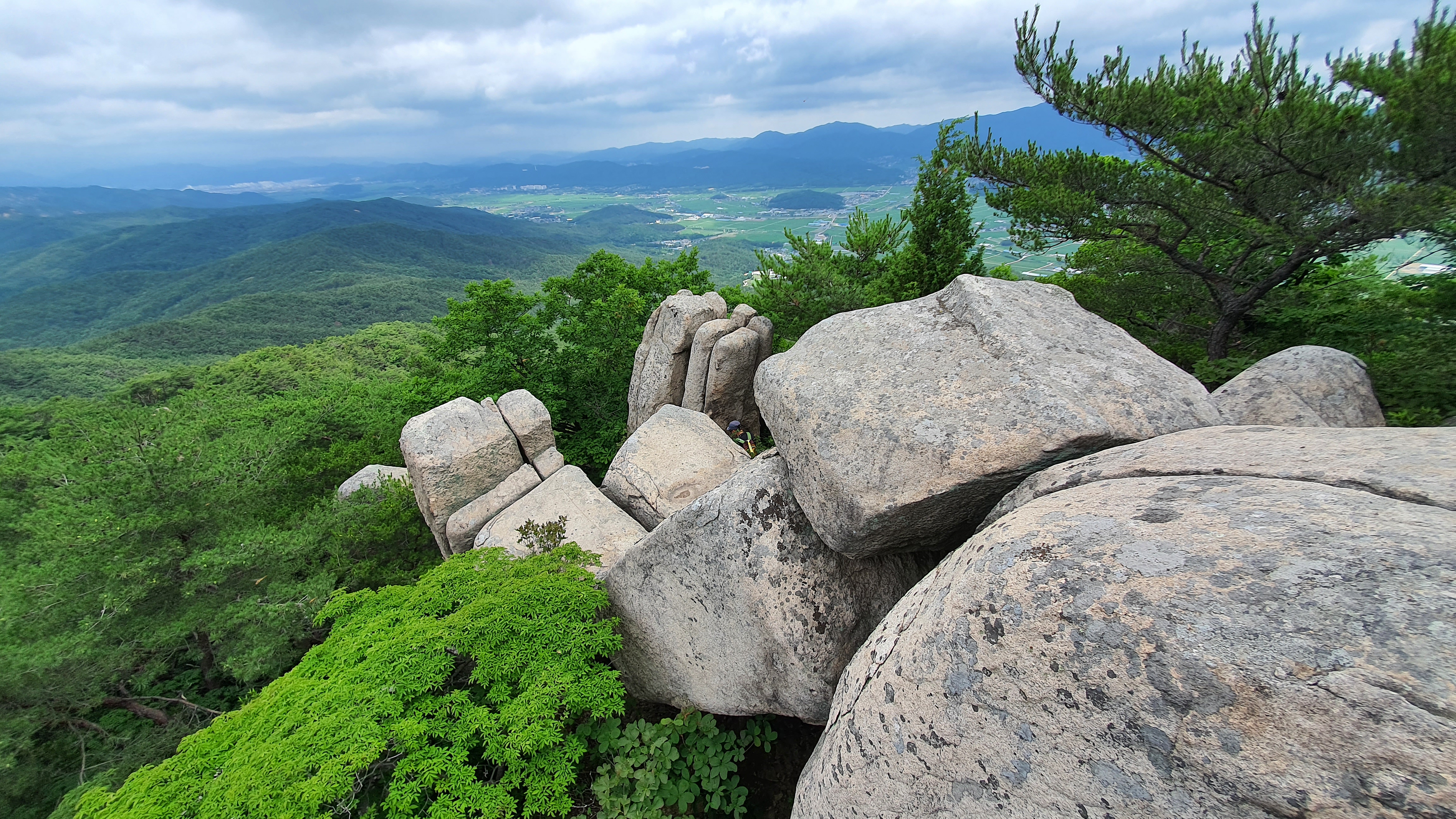 정상에서 동쪽으로 100m 내려가 맷돌바위 도착전에 유두바위 대포바위를 먼저 보고 맷돌바위로 가면된다.