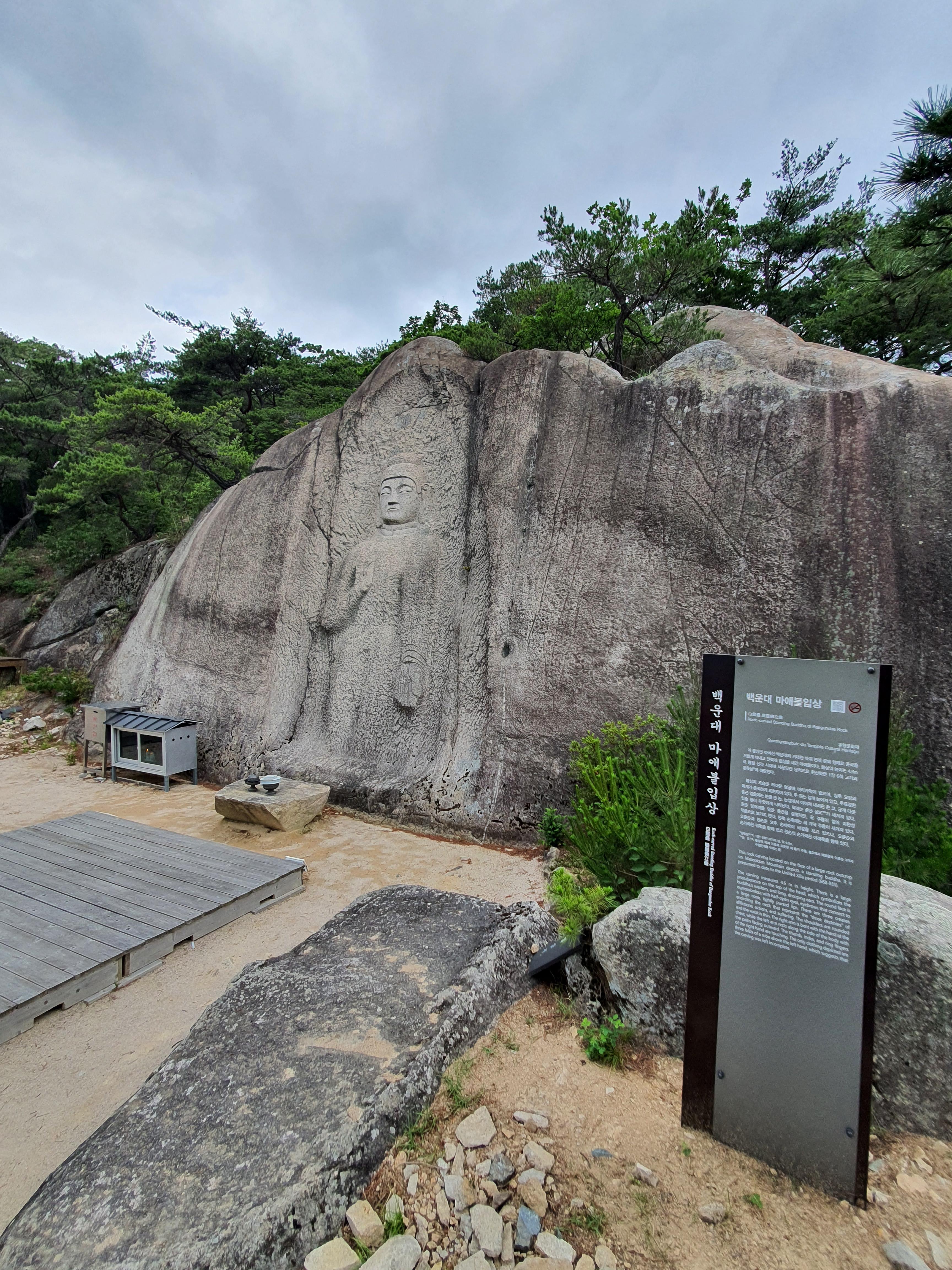 용문사의 옆에는 "백운대"라는 조망이 좋은 너른 바위가 있고 마애불입상이 있다.