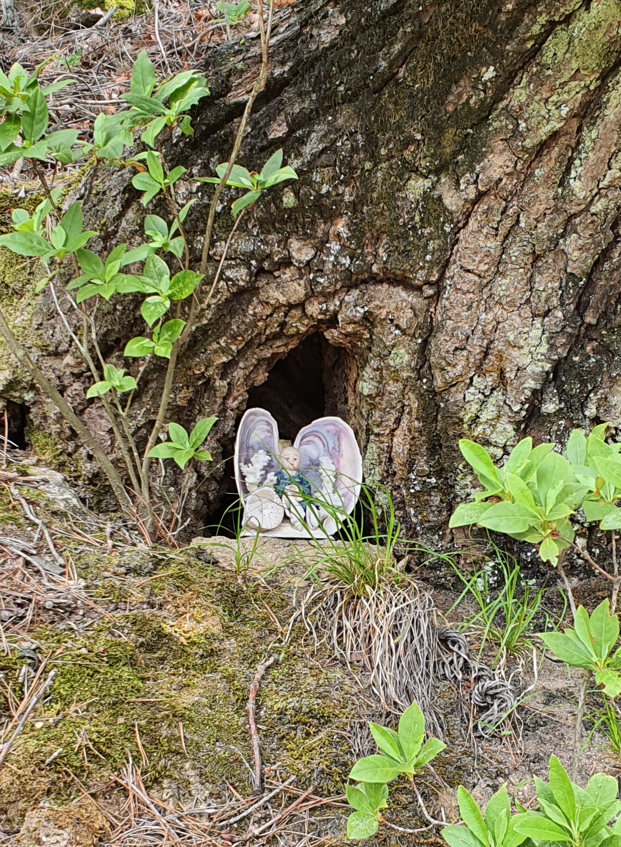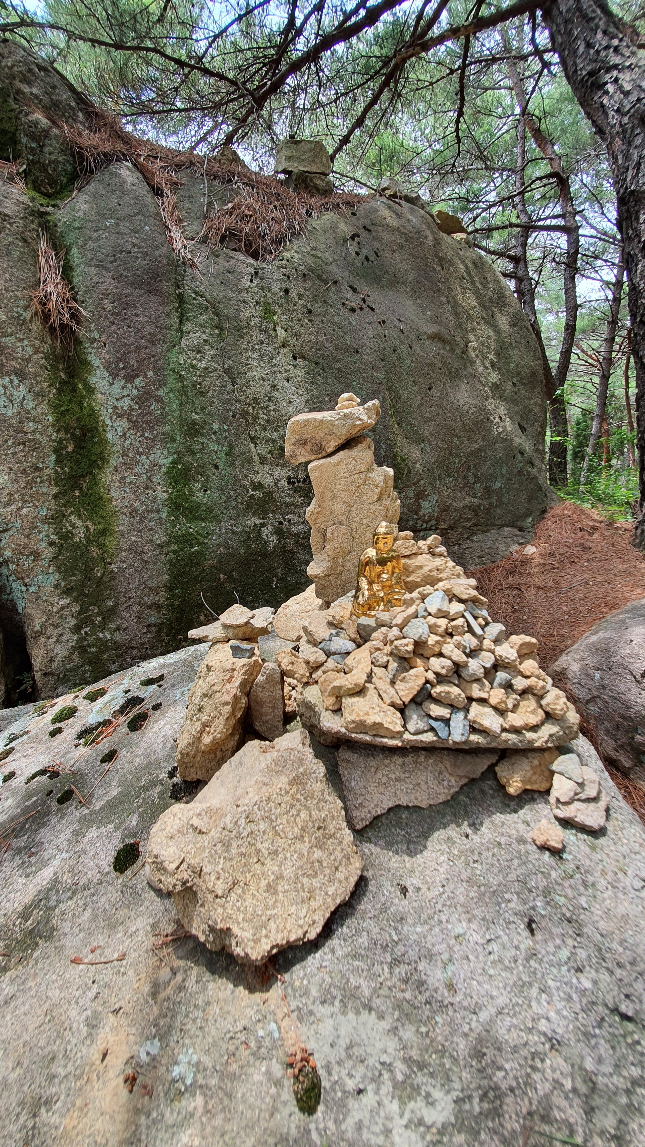 바위틈 사이로 번쩍이는 것이 있어 당겨서 찍어보니 금부처 불상으로 보인다.
