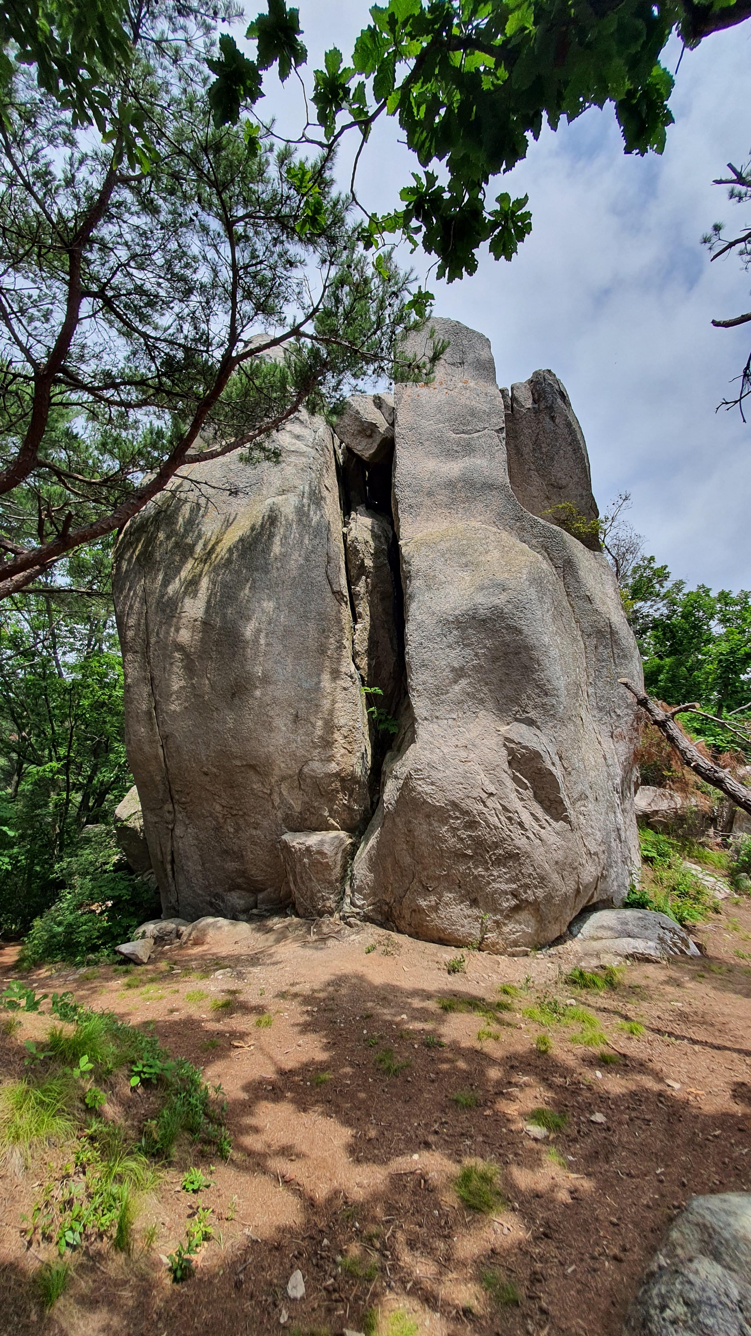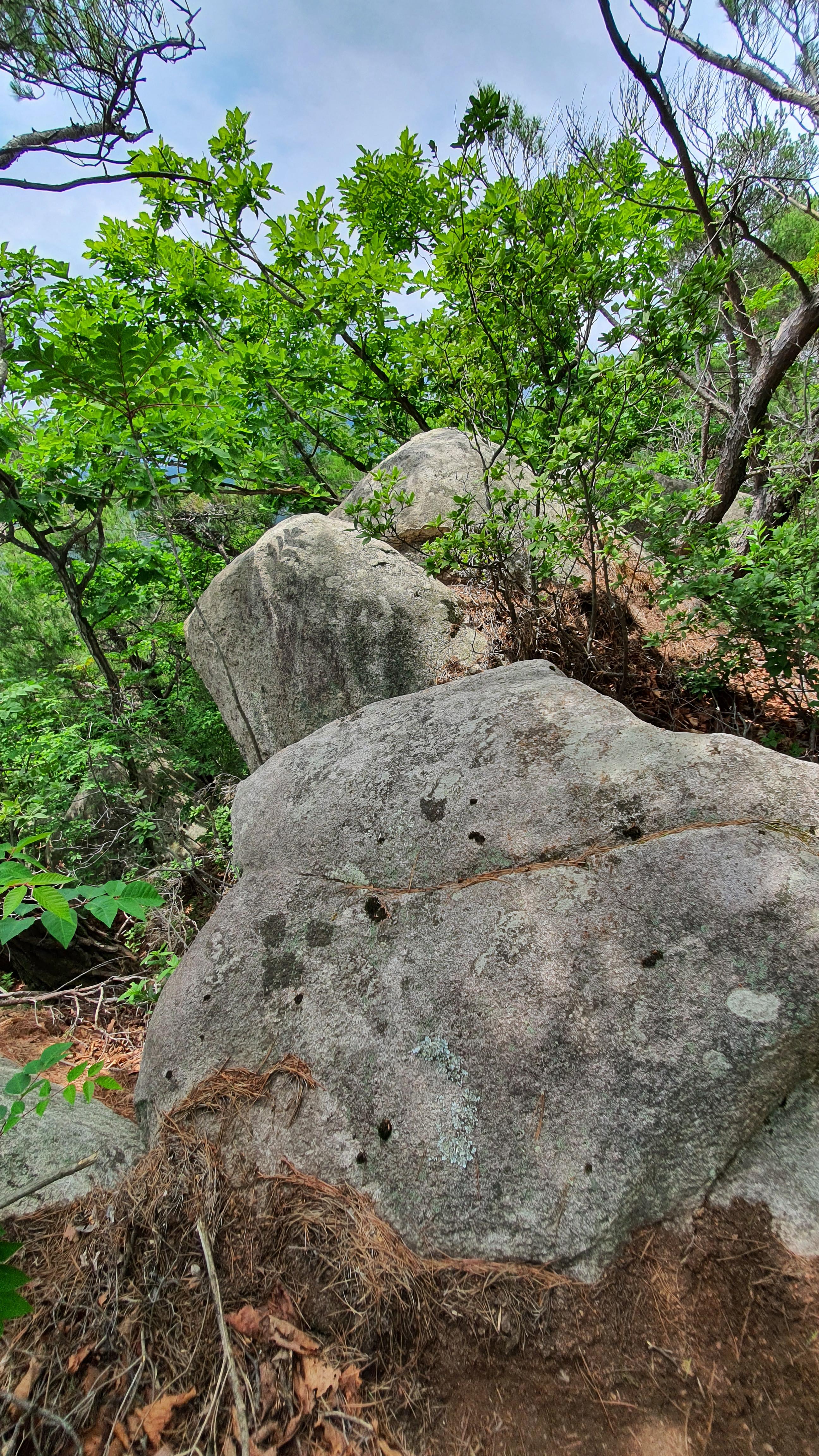 다시 맷돌바위 있는 곳으로 돌아와서 맷돌바위 위에서 아래쪽 전망을 보고 아래쪽으로 50m정도를 내려가면 남근바위가 있다.