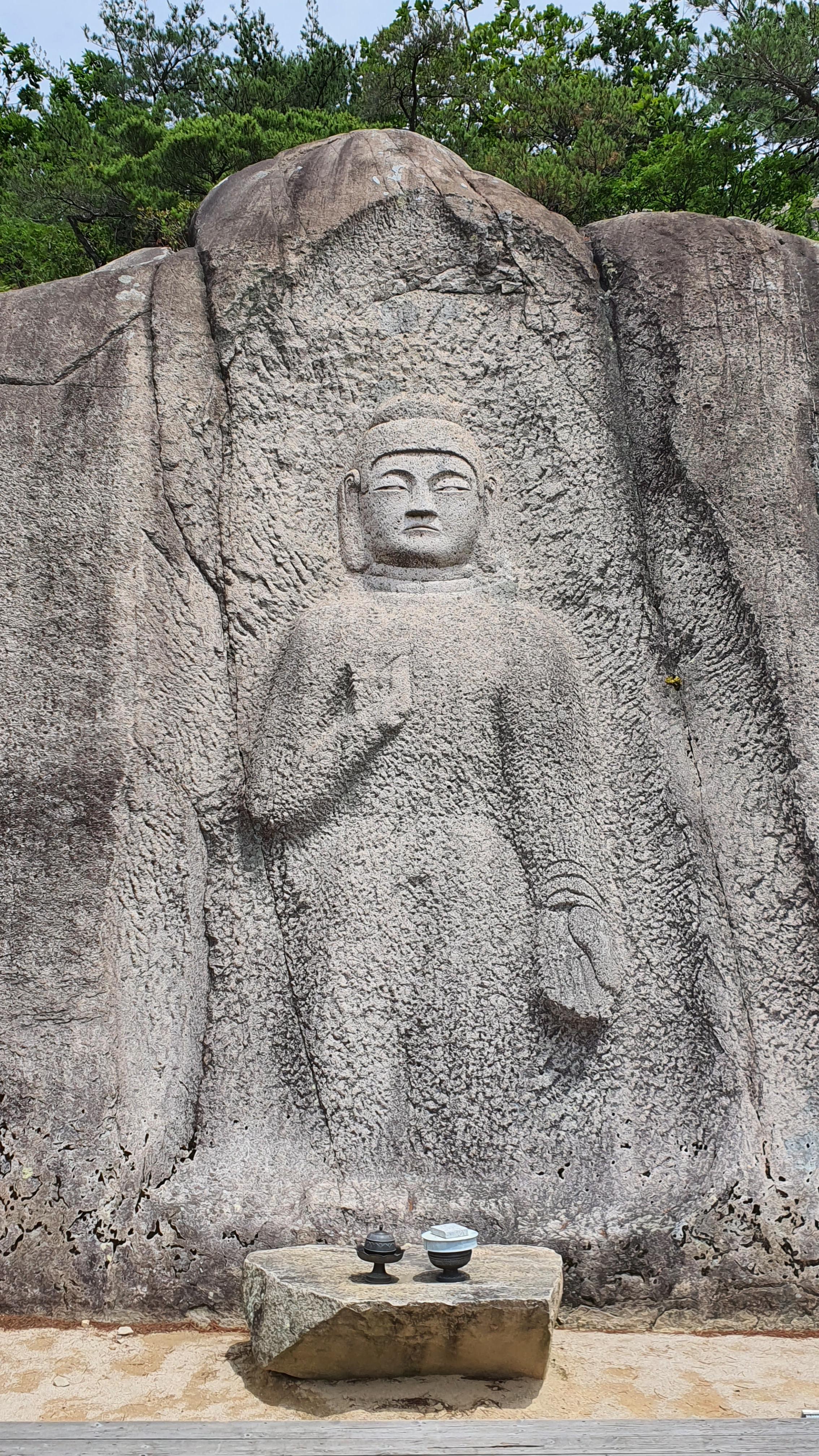 백운대의 바위에는 부처님이 돋을새김 되어 있다.