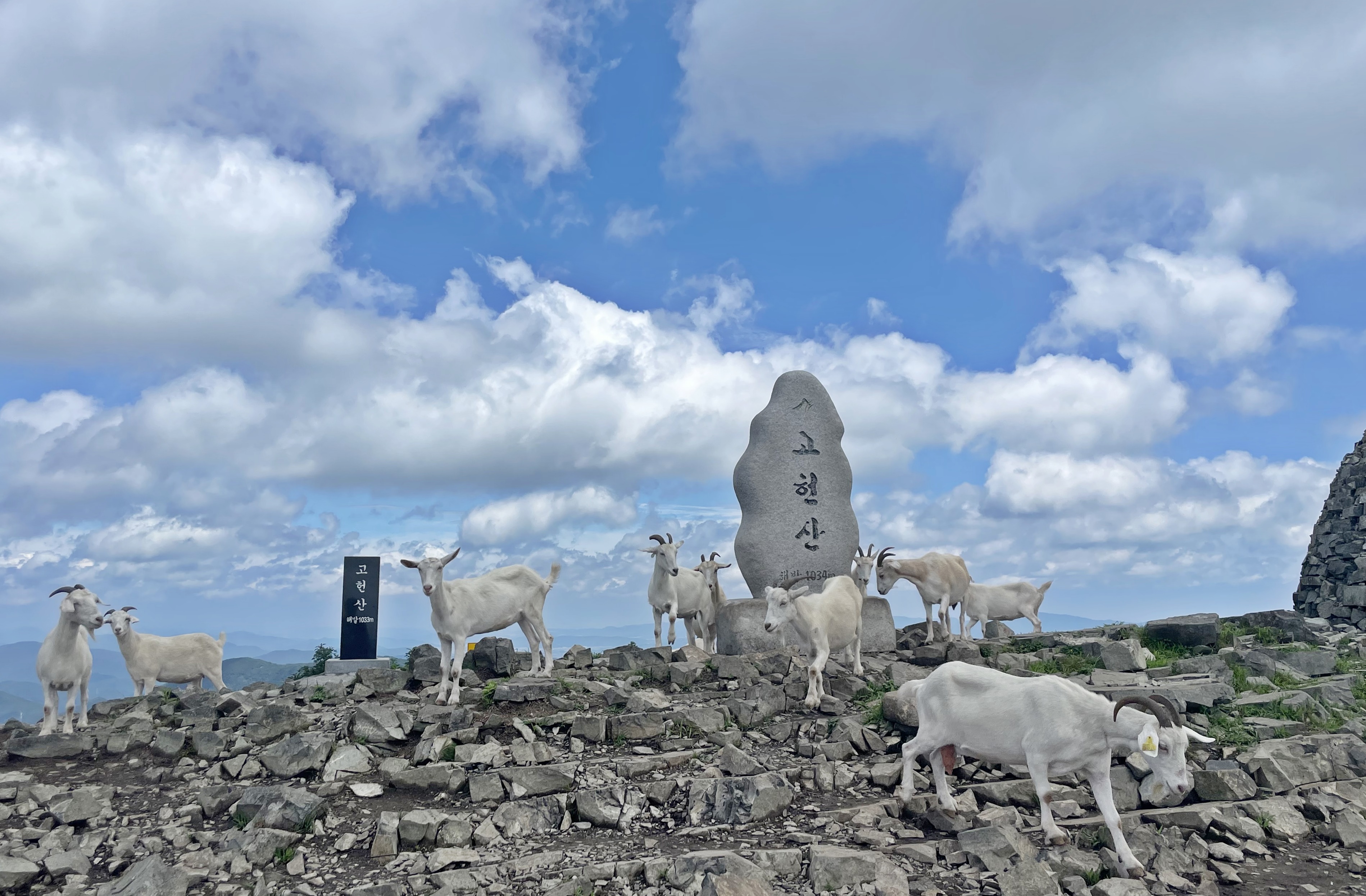 영남알프스 9봉 가운데 하나인 고헌산(1034m) 정상에 야생 상태의 흰 염소들이 무리를 지어 다녀 등산객들의 눈길을 끈다.