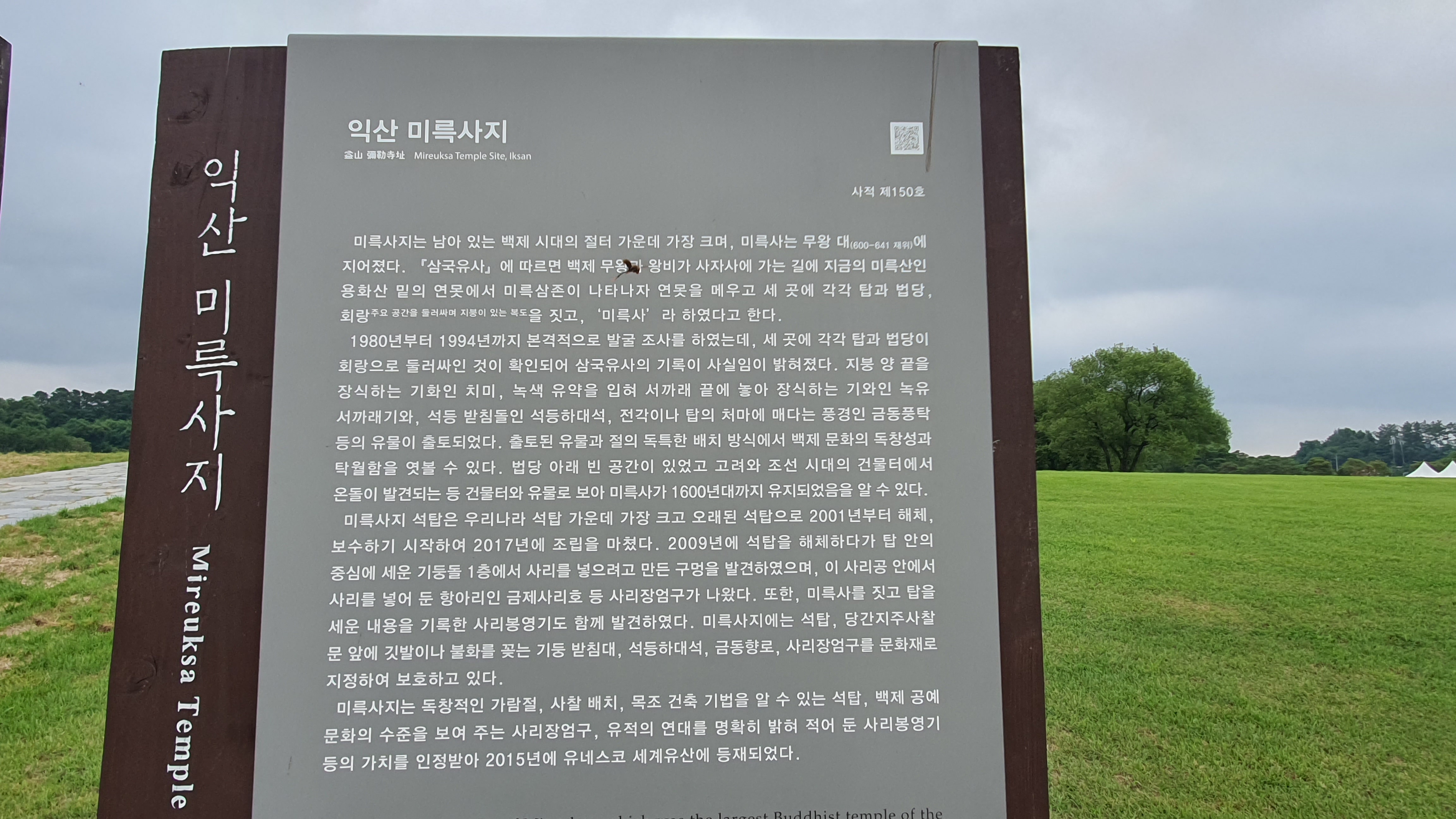 미륵사지는 익산시 금마면 해발고도 430m의 미륵산 아래 넓은 평지에 펼쳐져 있어 동아시아 최대 규모의 사역을 자랑한다. 백제 사찰로는 이례적으로 『삼국유사(三國遺事)』에 미륵사 창건 설화가 전한다.