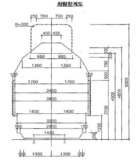 가. 개요 : 차량을 안전하게 운행하기 위하여 선로에 부수되는 건조물 및 시설물과 차량의 사이 에 적당한 여유 간격이 있어야한다 이를 위해 운전하고 있는 차량의 단면적 크기에 일정한 제한을 가하여 이 범위로부터 차량의 일부가 돌출되는 일이 없도록 차량의 크기를 규정한 것을 차량한계라 한다.