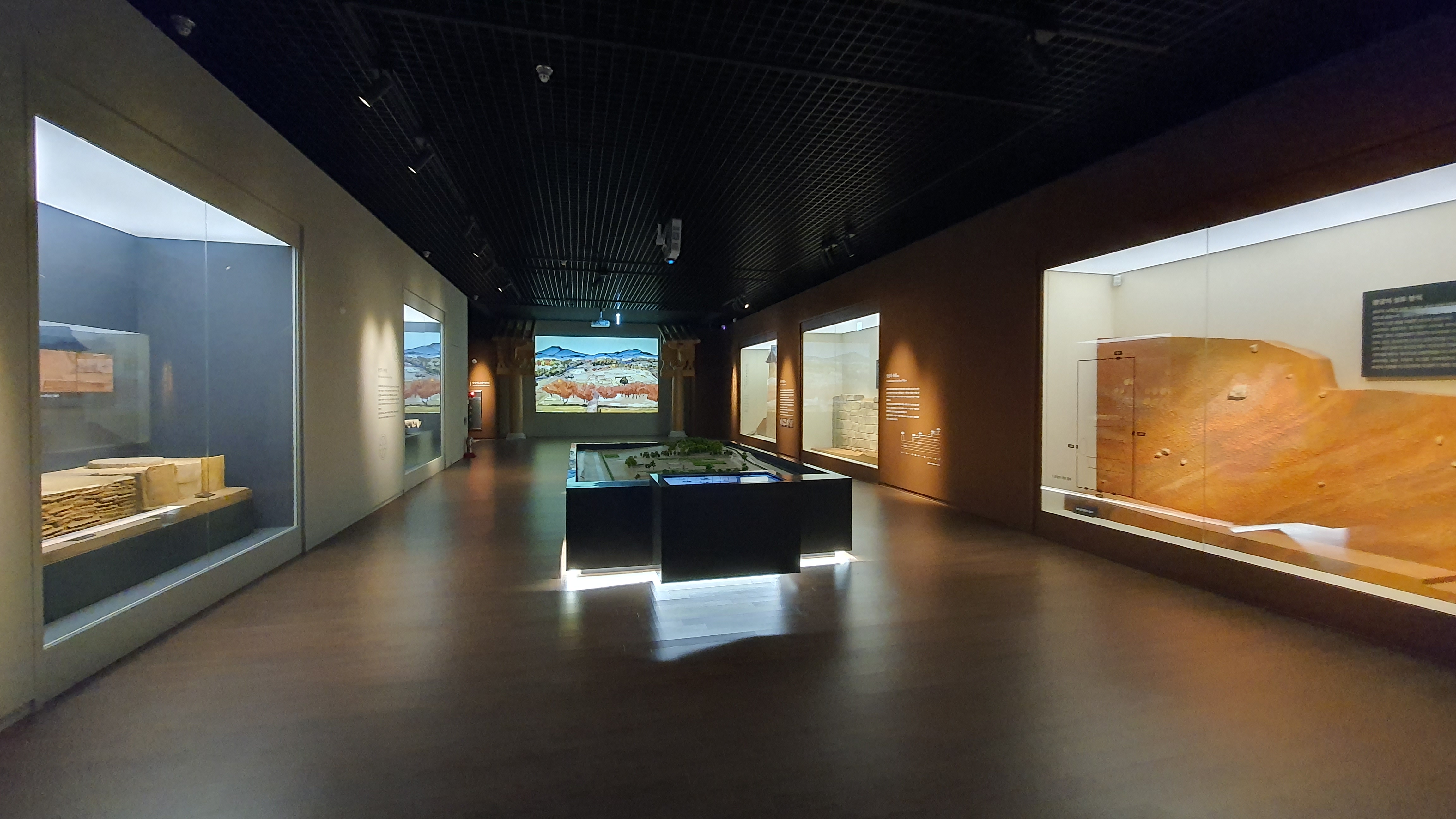 대형건물터는 정면 7칸(31m), 측면 4칸(15m) 크기로, 왕이 정사를 보거나 의례·연회를 행할 때 사용한 정전이 있었을 것으로 추측된다. 후원은 유적 내 북동쪽 구릉에 있었다.