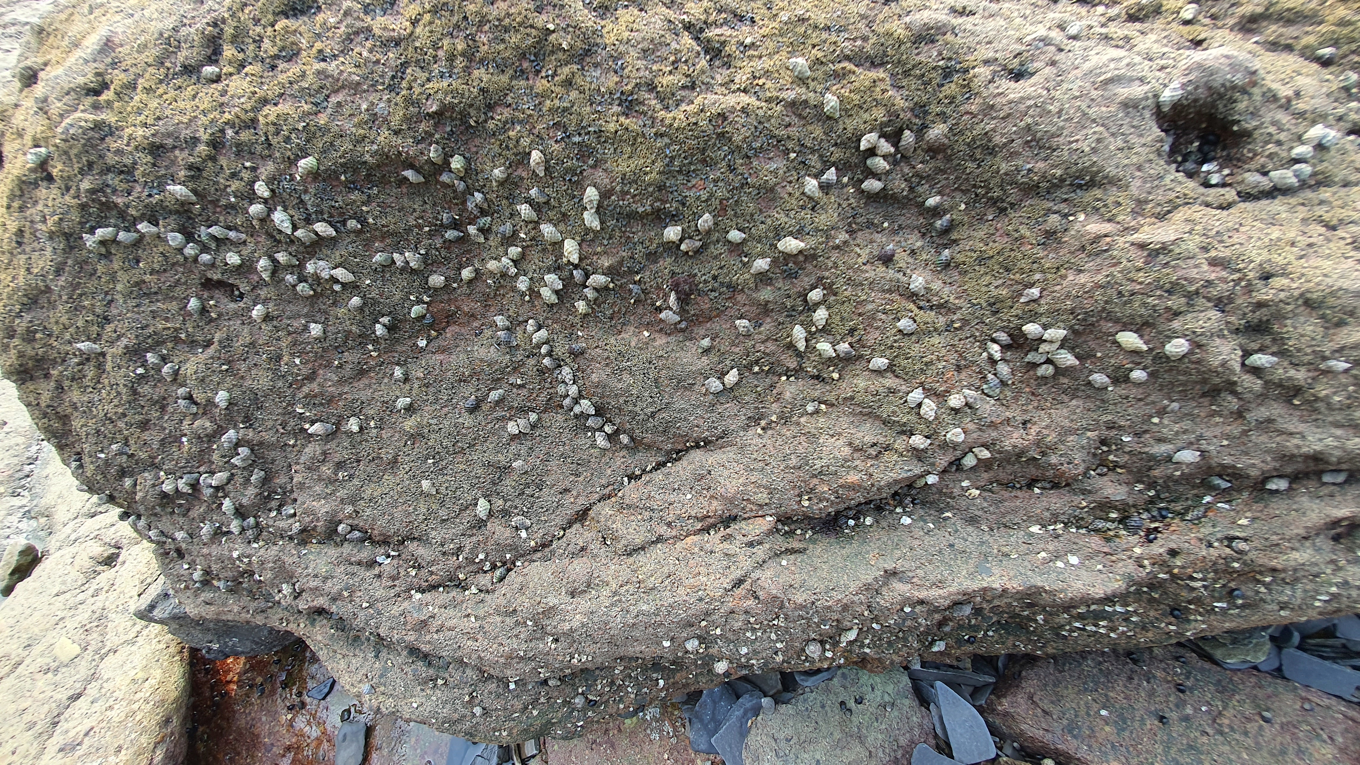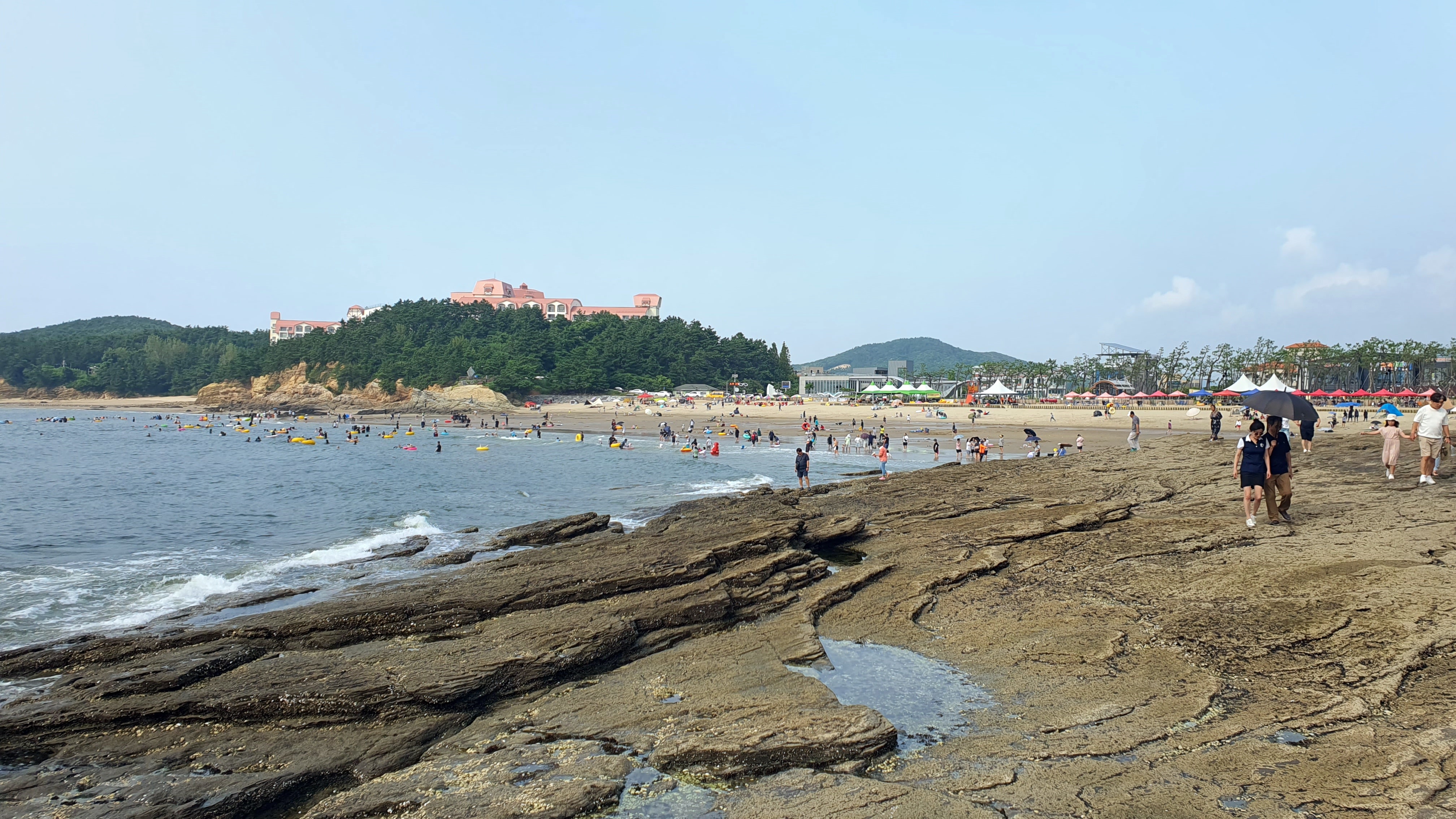 채석강에서 해수욕장 건너 백사장을 따라 북쪽으로 올라가면 붉은 암벽으로 이루어진 적벽강이 있다.