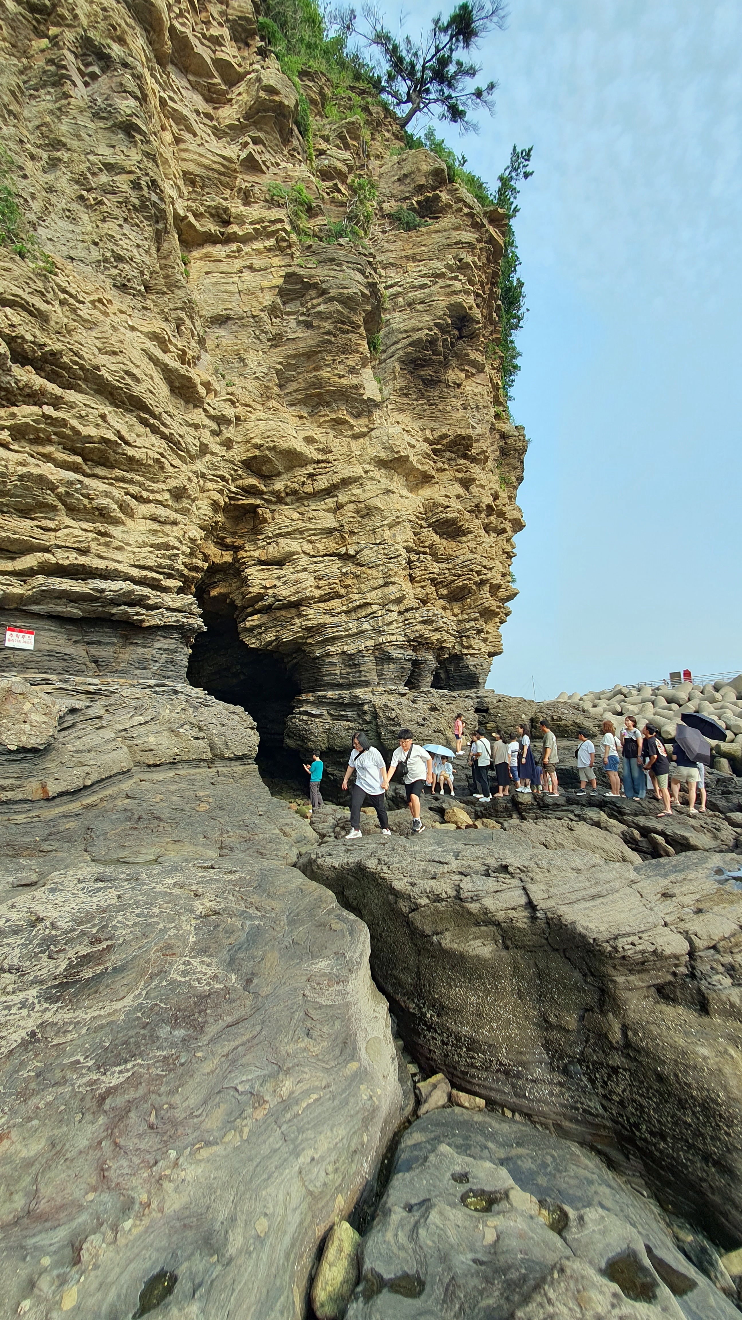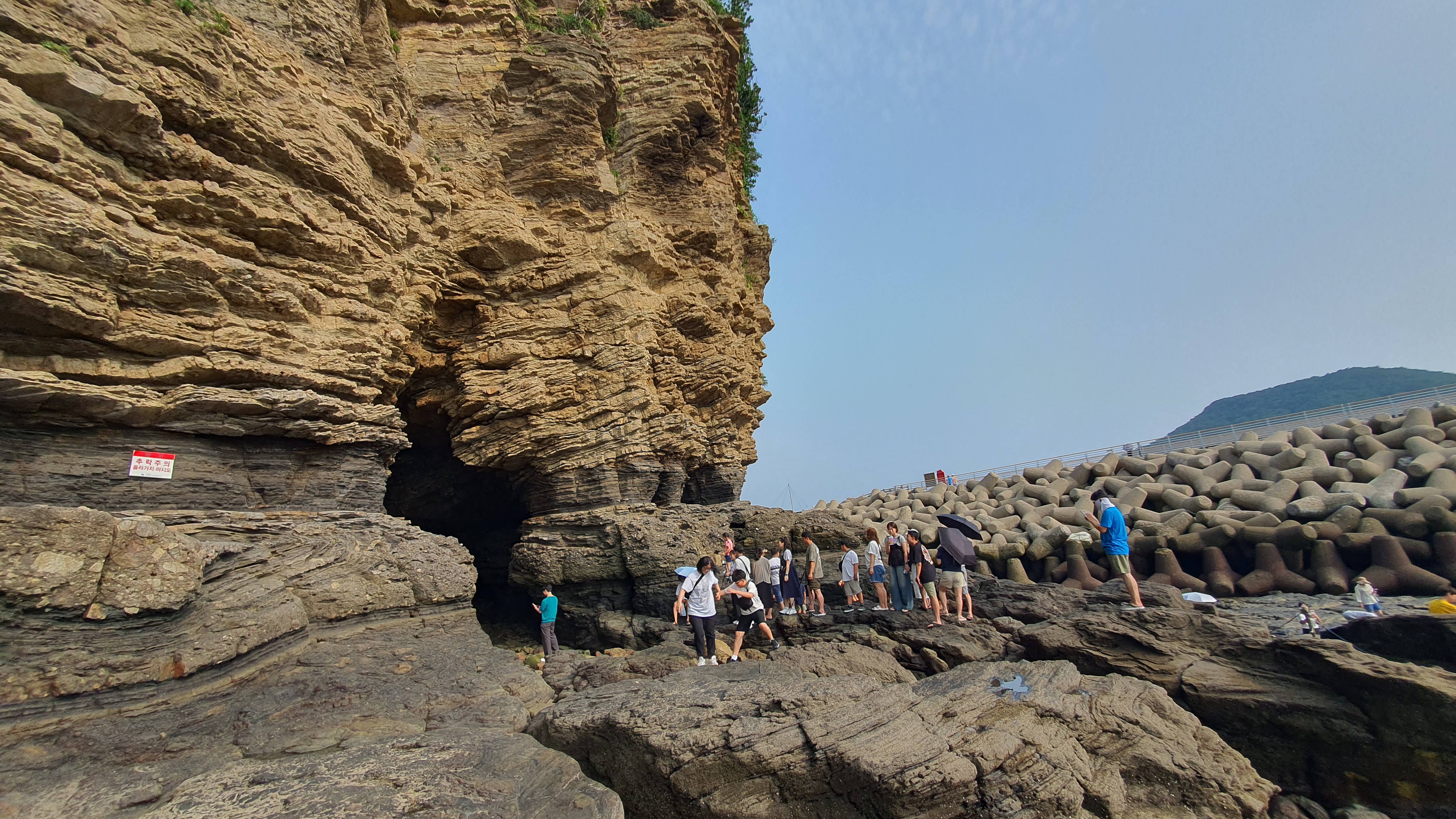 지형은 선캄브리아대의 화강암, 편마암을 기저층으로 한 중생대 백악기의 지층으로 바닷물에 침식되어 퇴적한 절벽이 마치 수만 권의 책을 쌓아놓은 듯하다.