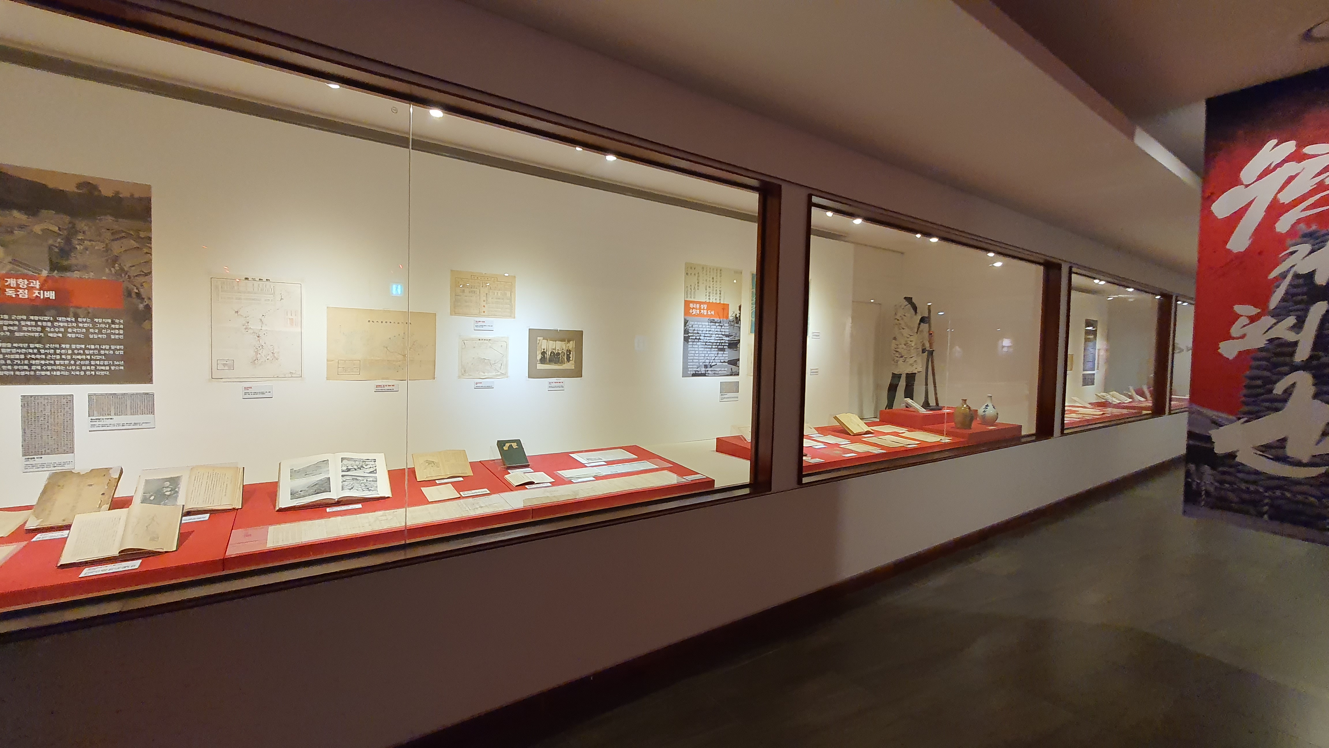 일제강점기 당시 사회상을 엿볼 수 있는 다양한 자료와 지도, 엽서, 사진 등이 전시되고 있다.