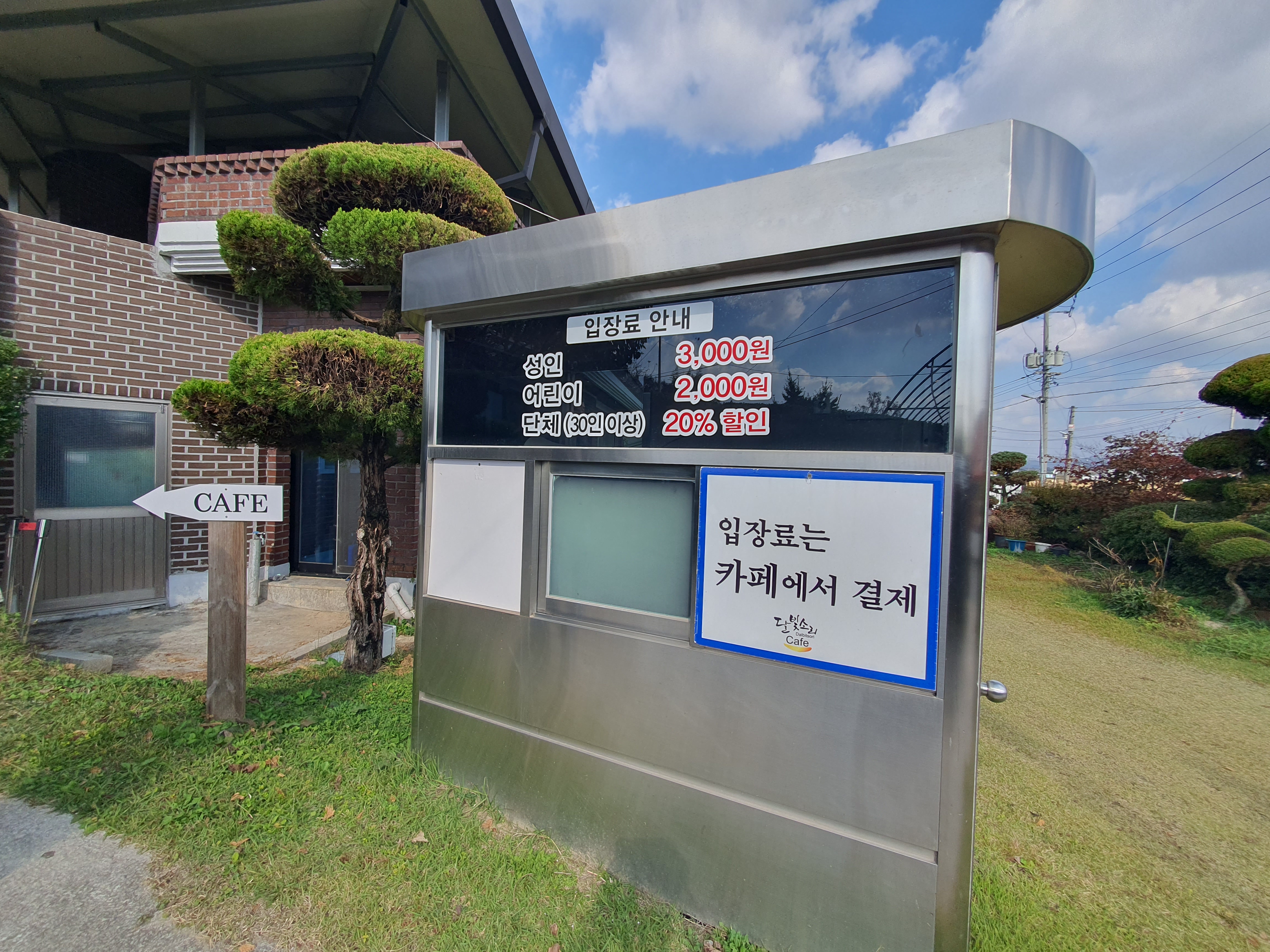 2018년 문을 열었다는 달빛소리 수목원은 개인이 운영하는 수목원으로 내부에 있는 카페에서 음료를 주문하면 입장료는 면제됩니다.