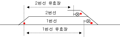 12) 유효장 : 인접 선로의 열차 및 차량 출입에 지장을 주지 아니하고 열차를 유치할 수 있는 당해 선로의 최대길이