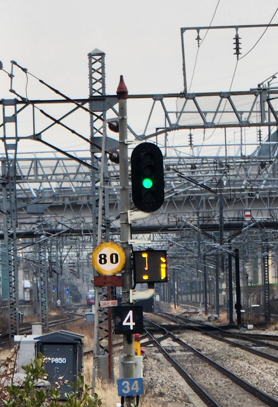 - 장내신호기는 '진로표시기'로 ㄱ, ㅣ,┌의 형태로 좌측, 중앙, 우측 진로 진입을 표시.